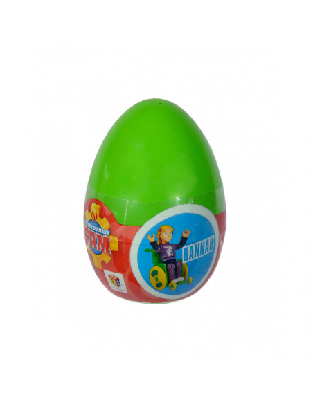 Speelfiguren van de bekende televisieserie Brandweerman Sam. Het ei bevat Sam, Hannah, Lizzie, Helen, Penny of Joe met verschillende accessoires. De hoogte van het speelfiguur is ongeveer 10 centimeter. Geschikt vanaf 3 jaar.