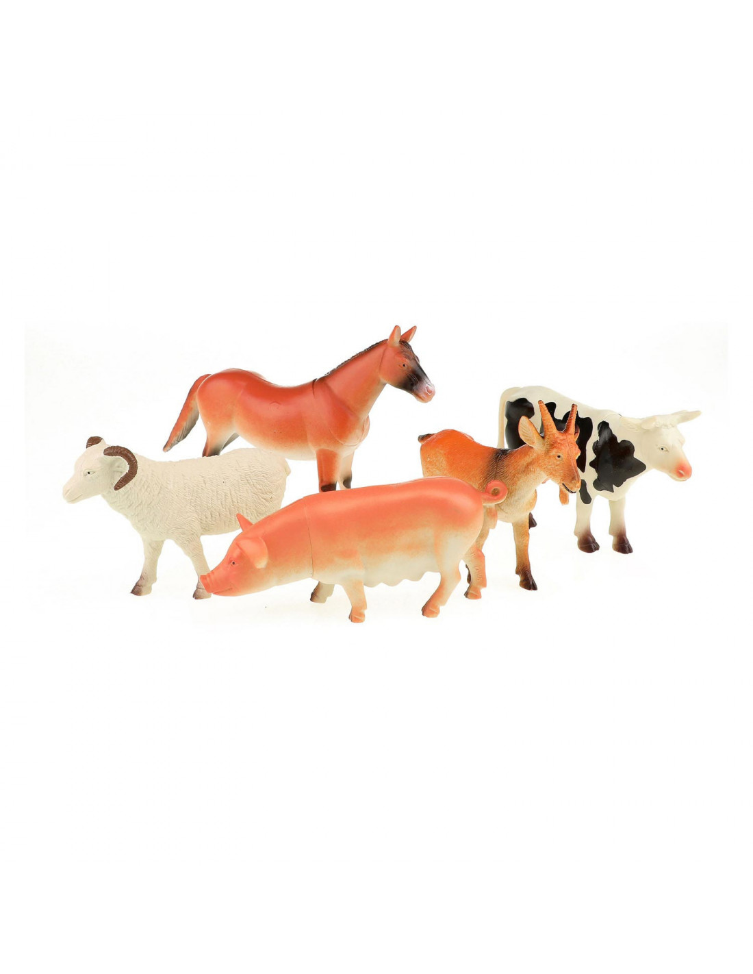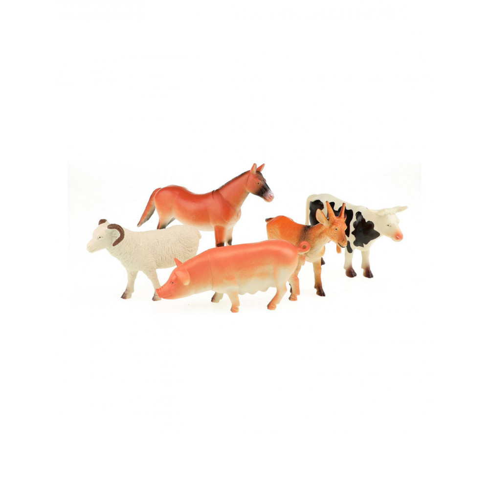 Een set van 5 fraaie natuurgetrouwe plastic boerderijdieren: een varken, schaap, paard, koe en geit.
