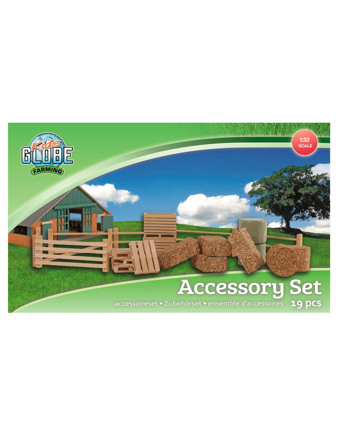 Inhoud: 6 weilandhekjes, 4 rechthoekige balen, 4 houten pallets, 2 ronde balen, 2 ronde gesealde balen en 2 aardappelkisten. Geschikt voor kinderen van 3 tot 6 jaar oud.