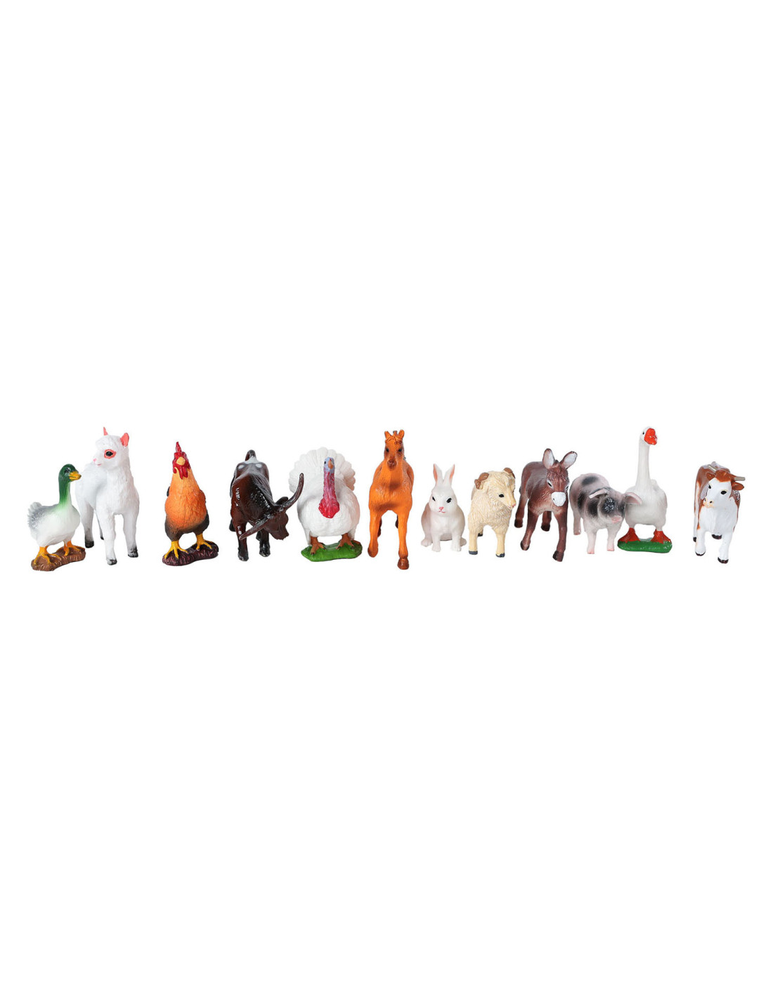 Set van 36 miniatuur boerderijdieren (8 verschillende soorten). De dierenfiguren zijn ca. 8 centimeter groot en geschikt voor kinderen vanaf 3 jaar oud.