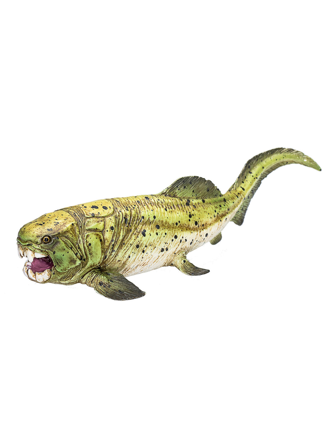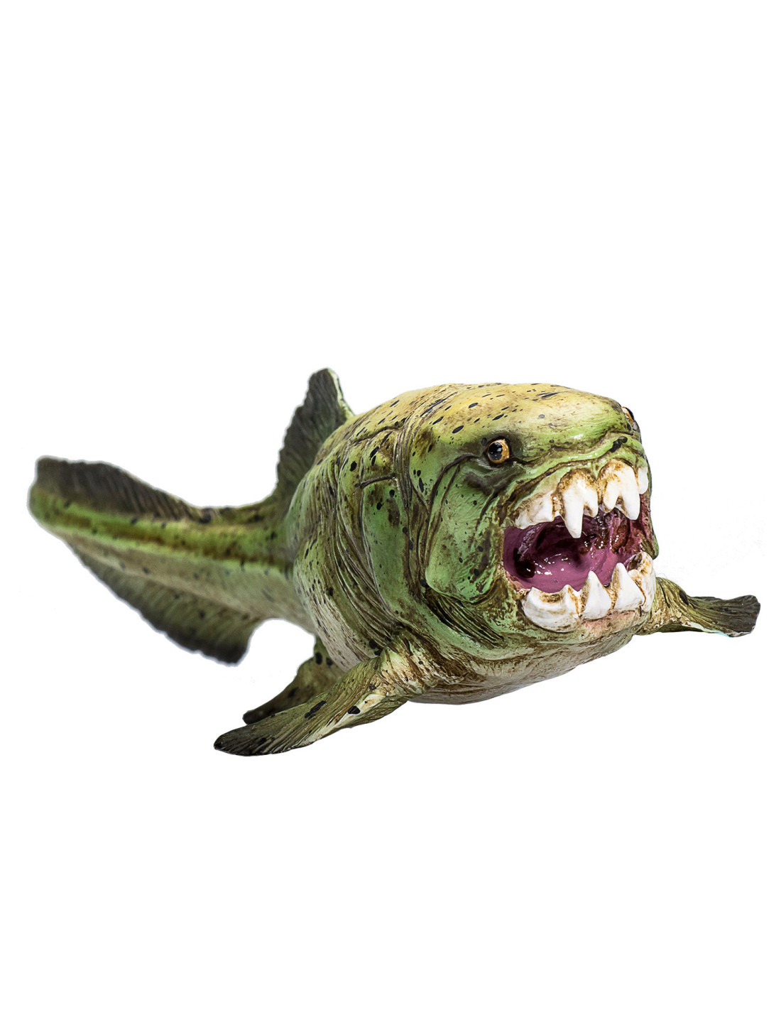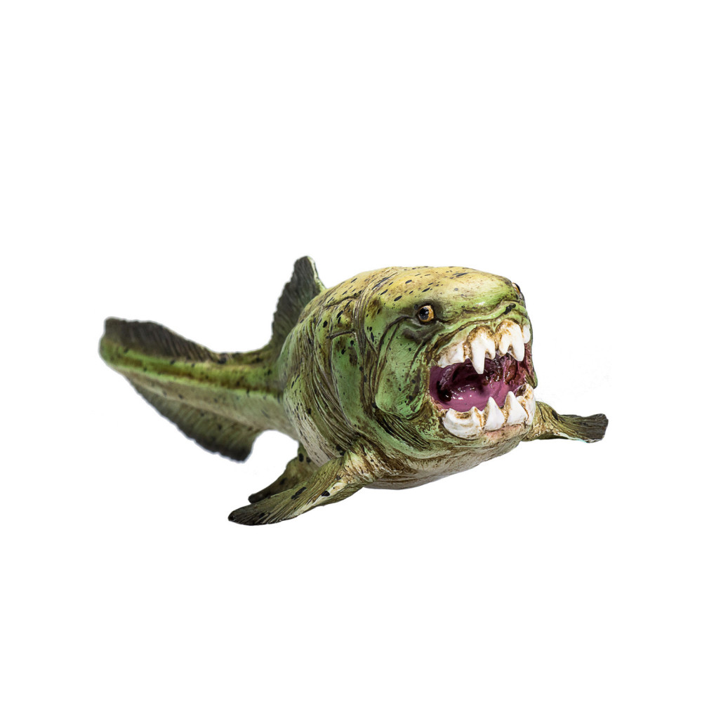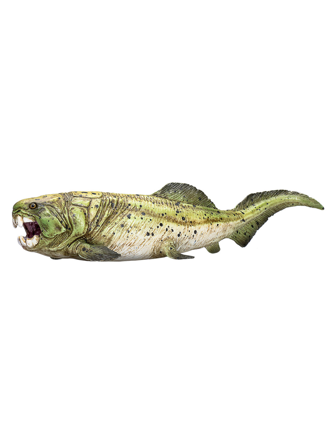 Dunkleosteus, soms beschreven als de Tyrannosaurus van de zeeën, was een van de grootste gepantserde vissen. Het was zo groot als een olifant en een wrede jager in de ondiepe zeeën waarin het leefde.