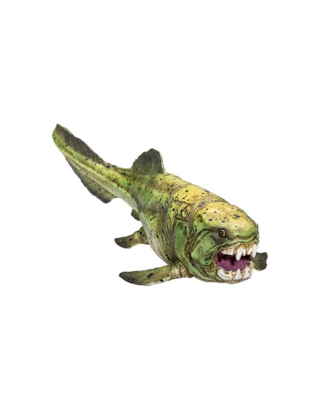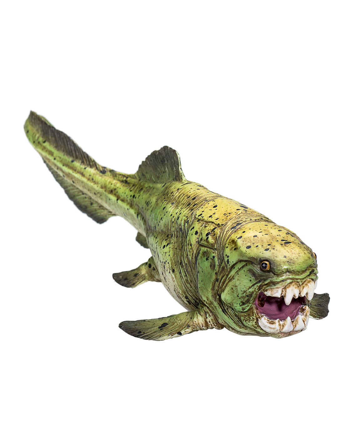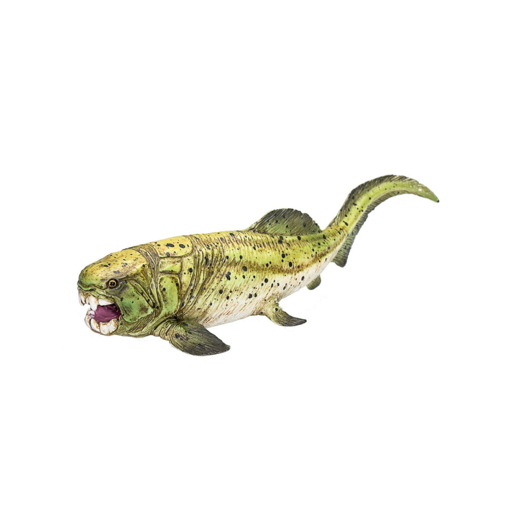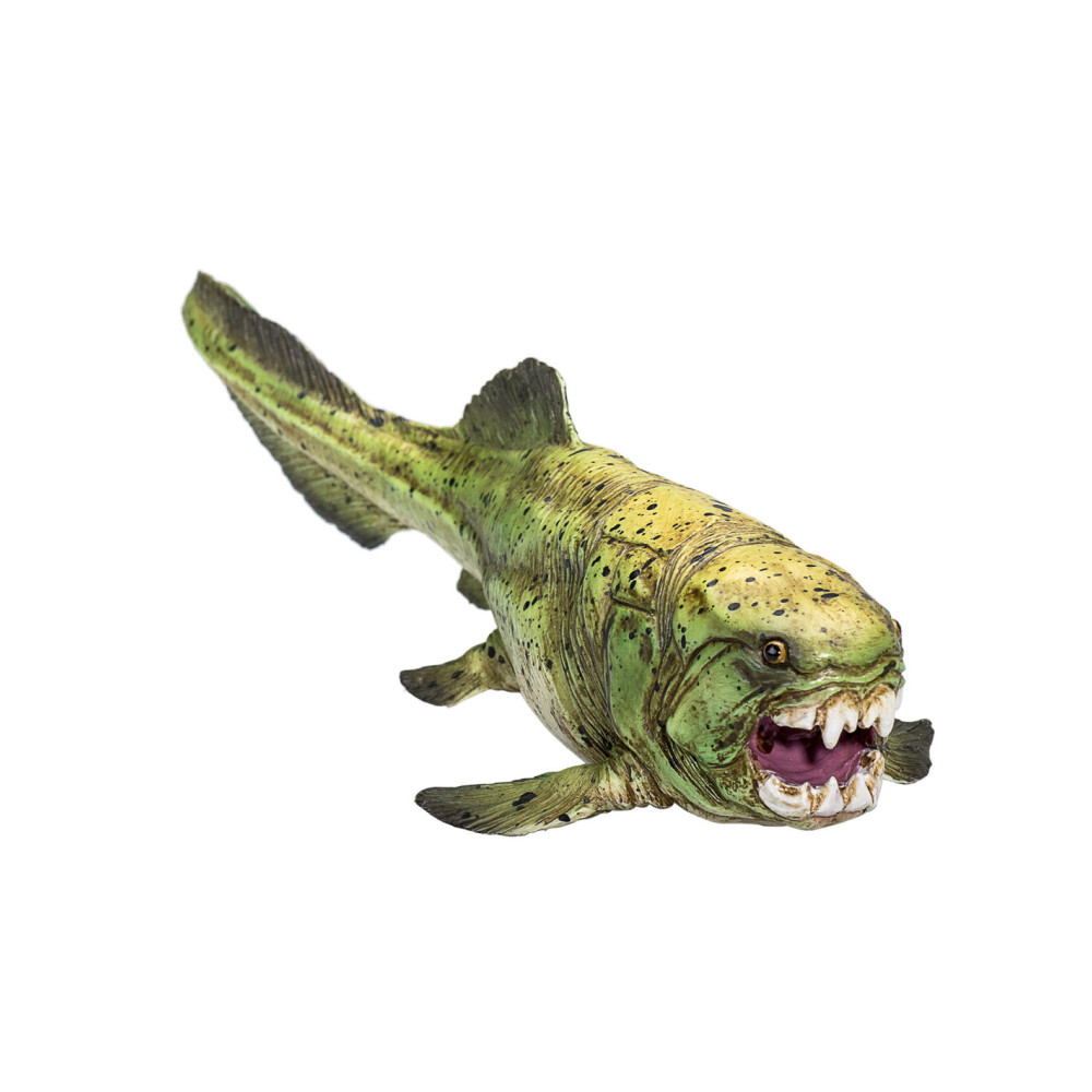 Dunkleosteus, soms beschreven als de Tyrannosaurus van de zeeën, was een van de grootste gepantserde vissen. Het was zo groot als een olifant en een wrede jager in de ondiepe zeeën waarin het leefde.