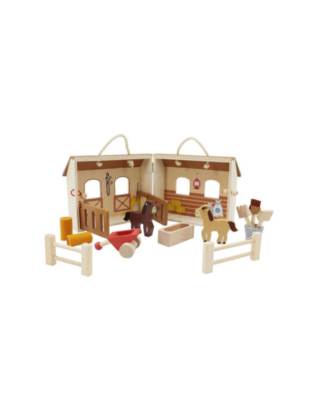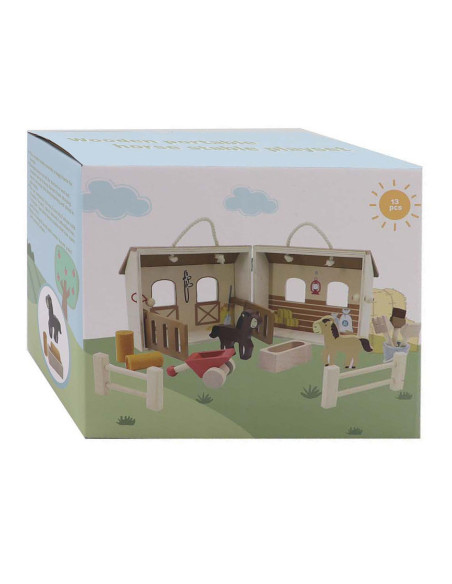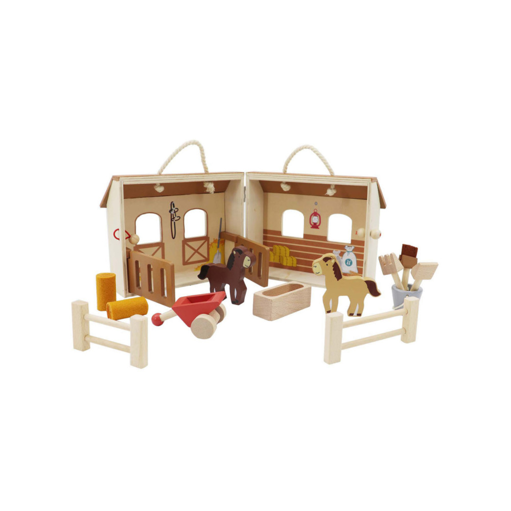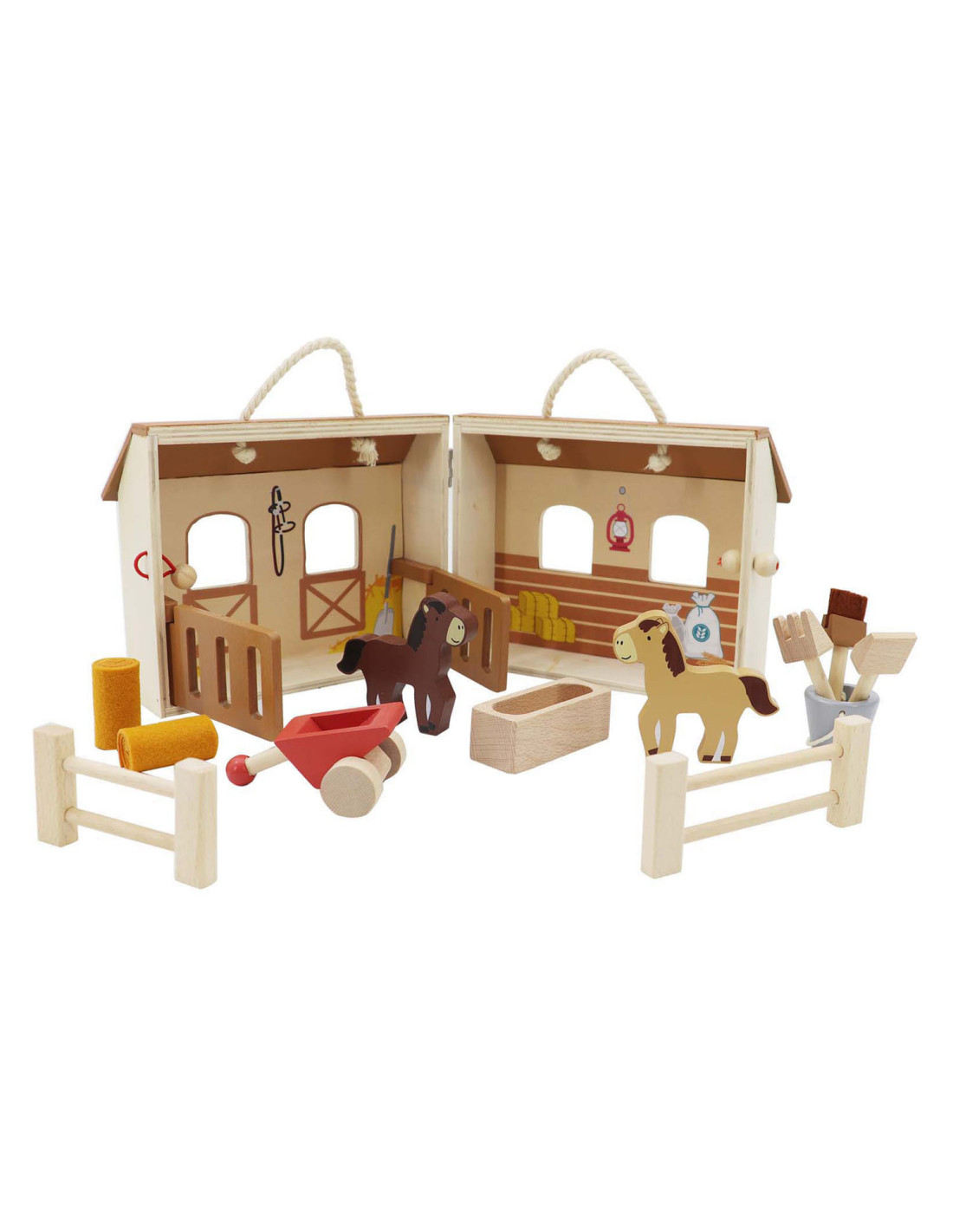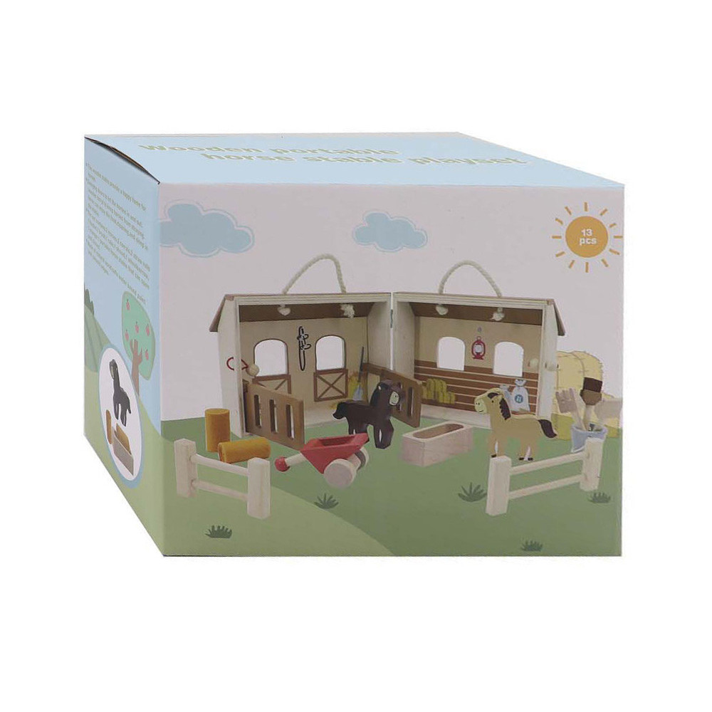 Houten Paardenstal Speelset Draagbaar 13dlg.