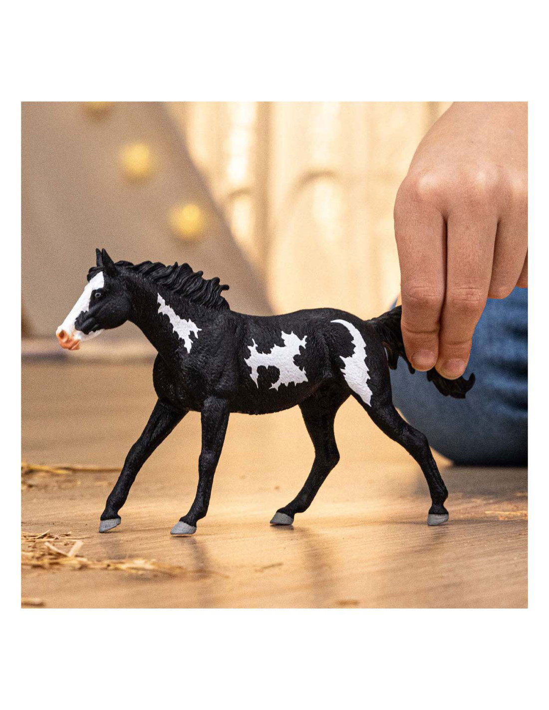 De stevige Paint-ruin ziet er indrukwekkend uit als hij in de wei galoppeert. Hij is diepzwart van de punt van het oor tot aan de hoef. Een paar lichtgekleurde vlekken vallen op in de nek, buik en rug. Zijn gezicht is wit en zijn snuit is roze. Zijn heldere ogen zijn bijzonder indrukwekkend. Ze passen perfect bij zijn anders zo donkere uiterlijk!De zwart-witte bontgekleurde Paint-ruin heeft vandaag zin in avontuur en wil iets doen! Hij galoppeert zo snel door de wei dat zijn zwarte manen en weelderige staart fladderen. Wie wil er met hem meedoen? Western rijden vindt hij erg leuk, maar hij houdt ook van andere disciplines. Het belangrijkste is dat hij gezelschap heeft en iets meemaakt.