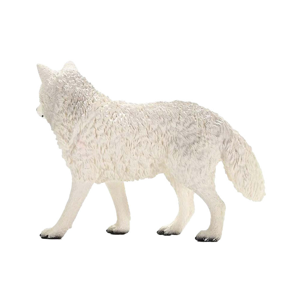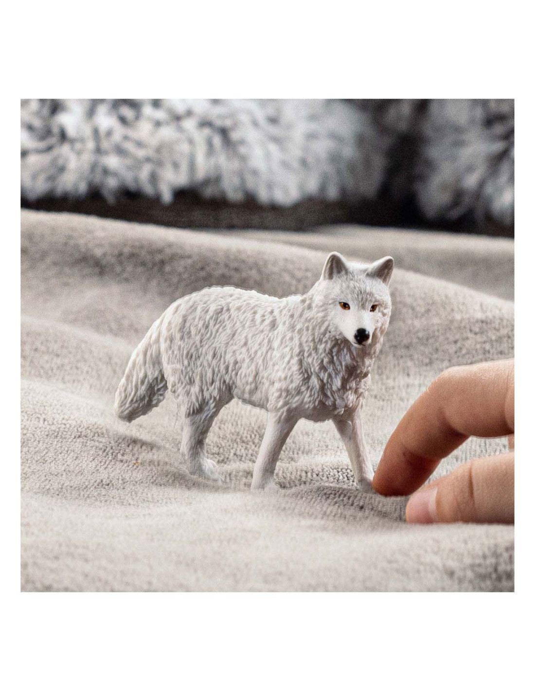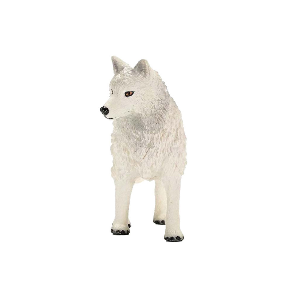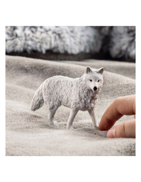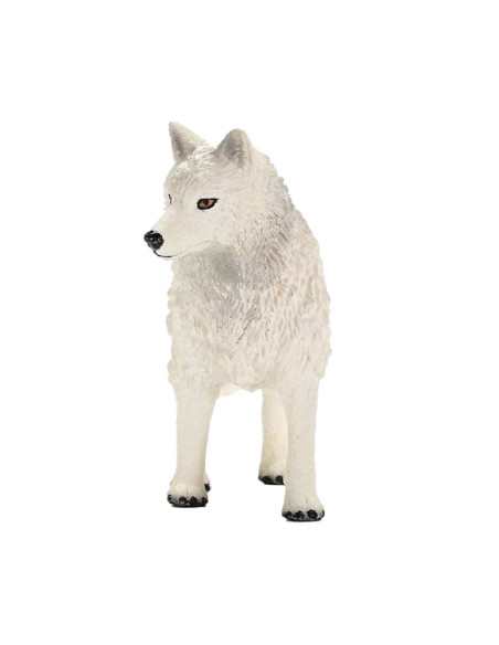 Ondanks zijn dikke vacht kun je zien hoe elegant de Poolwolf gebouwd is. Hij heeft zijn dikke vacht ook nodig, want het kan erg koud worden op de Noordpool, waar hij woont. De witte vacht verwarmt hem zodat hij temperaturen tot -70 °C kan weerstaan. Een echte overlever!De Poolwolf spitst zijn spitse oren en kijkt aandachtig met zijn mooie, amberkleurige ogen om te zien wat er aan de hand is. Maakt zijn roedel zich klaar om te vertrekken? Dat vindt hij prima, want hij heeft honger. Het is tijd voor de jacht. Hij gaat altijd samen met zijn roedel op jacht. Dankzij zijn sneeuwwitte vacht is hij perfect gecamoufleerd in het noordpoolgebied. Hij neemt de schattige Poolwolf Puppy gewoon mee. Daar gaan we!