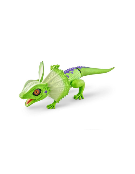 Deze groen met paarse hagedis is niet alleen een fantastische robot om mee te spelen, maar ook ideaal om te leren over dieren in het wild. Leer meer over het gedrag van hagedissen terwijl je deze robuuste vriend onderzoekt en ermee speelt. Met een nek met ruches en een oplichtende bek is deze hagedis klaar om zich te verdedigen tegen rondzwervende roofdieren. Durf jij het aan om hem te temmen?