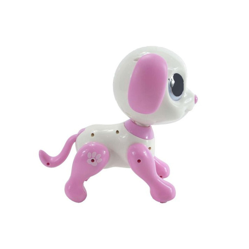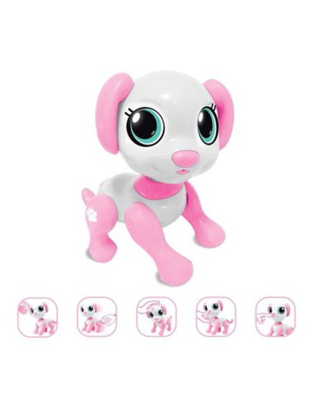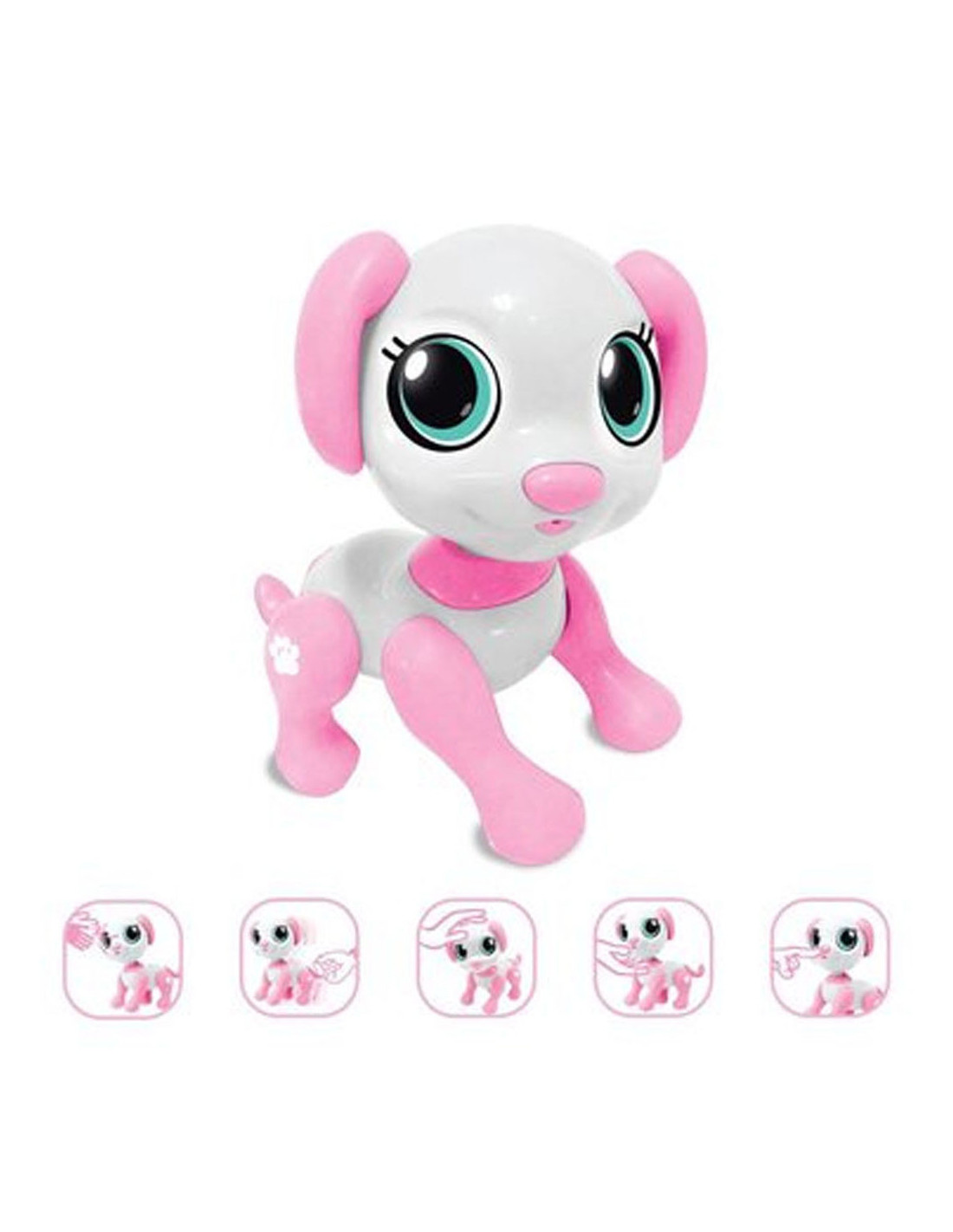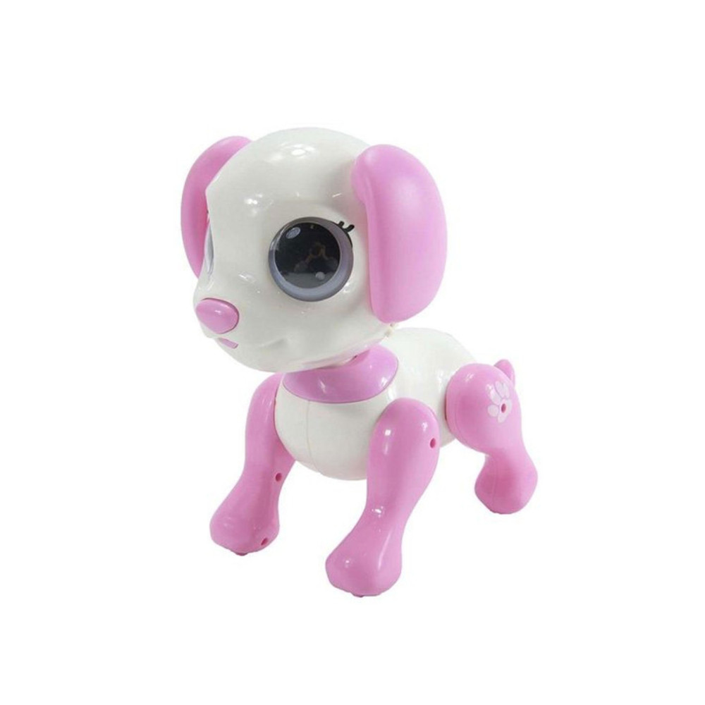 De schattige Robo Smart Puppy Pinkie is een interactieve hond voorzien van led verlichte ogen, verschillende geluiden en sensoren, waardoor Smart Puppy zal reageren op geluid en aanraking. De Smart Puppy met roze accenten en lieve hondenoogjes kan lopen, zitten, opstaan en maakt hondengeluiden. Als ze honger krijgt is ze niet zo blij en moet je haar onder zijn kin blijven aaien tot zij vol zit. Dan is ze weer vrolijk en zal ze voor je gaan dansen! De vrolijke Smart Puppy wil altijd met jou spelen! Afmeting: 22 x 12 x 20 cm (lxbxh). Batterij informatie: 3 x AA batterijen (niet meegeleverd). Leeftijdsindicatie: 5 jaar+.