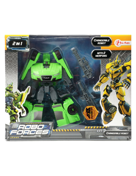 Deze ROBOFORCES robot zier er heel cool uit, klaar voor het gevecht. Maar hij heeft een extra verrassing. Met een paar handelingen verander je hem zomaar in een sportauto. Met zo'n vermomming is er niemand die hem kan bijhouden!