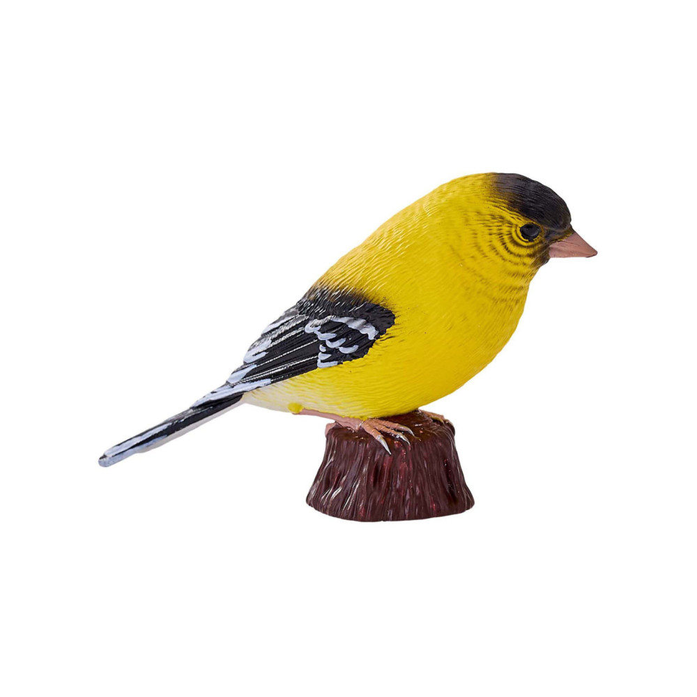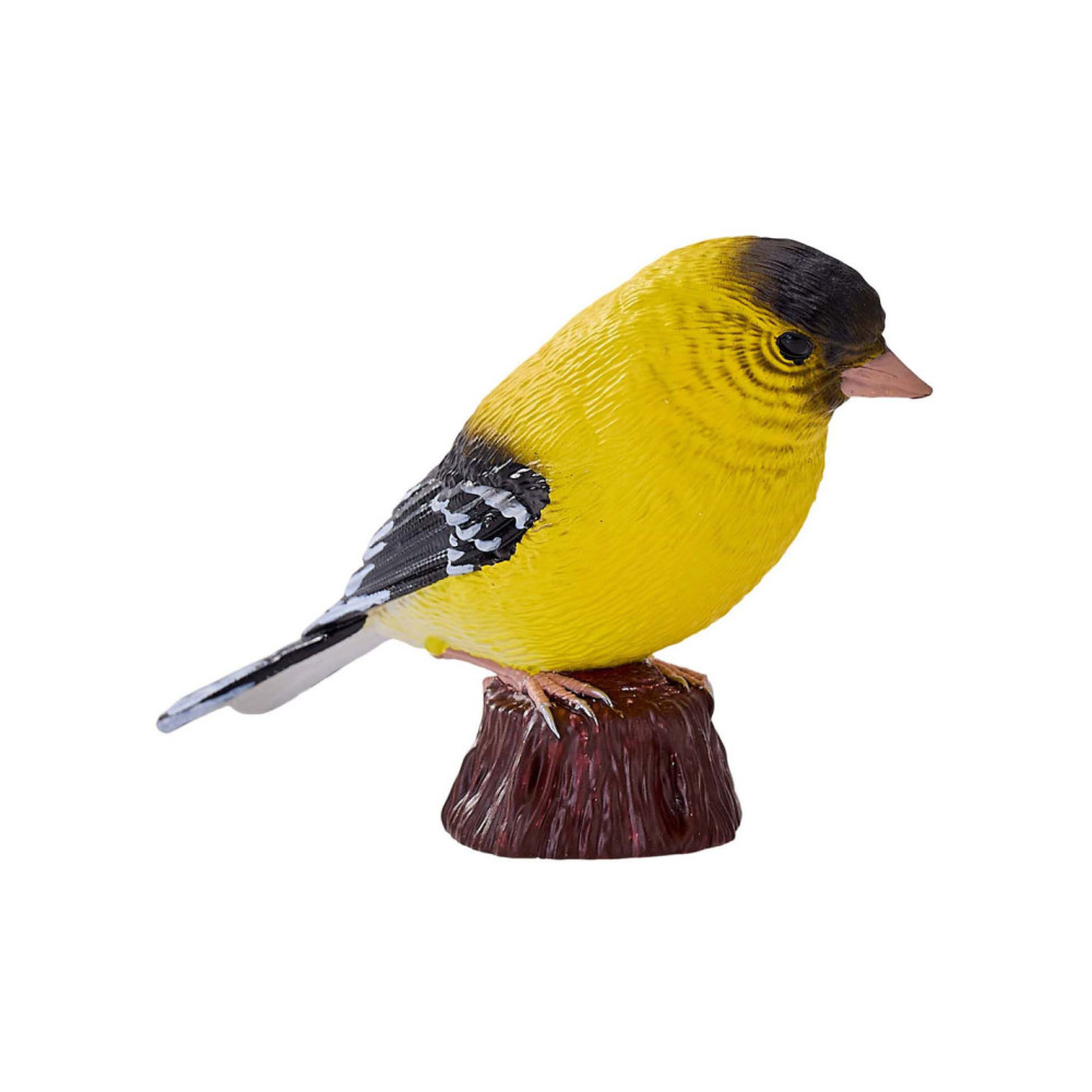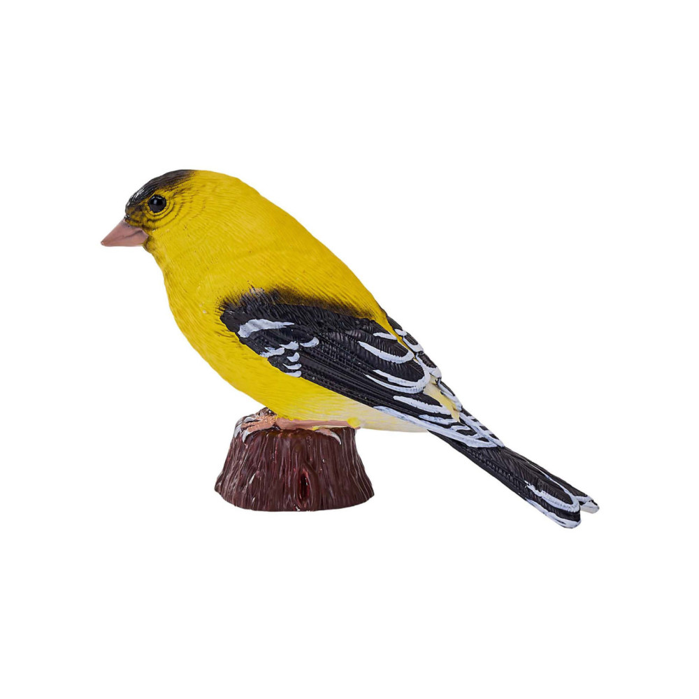 Mojo American Goldfinch/ Amerikaanse Goudvink. De American Goldfinch is 7,3 x 2,5 x 5 cm groot.