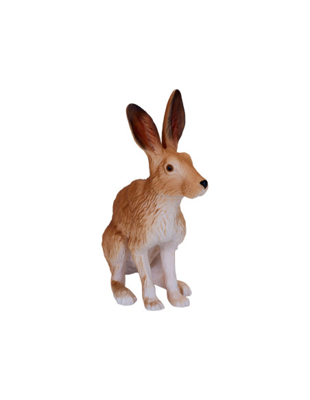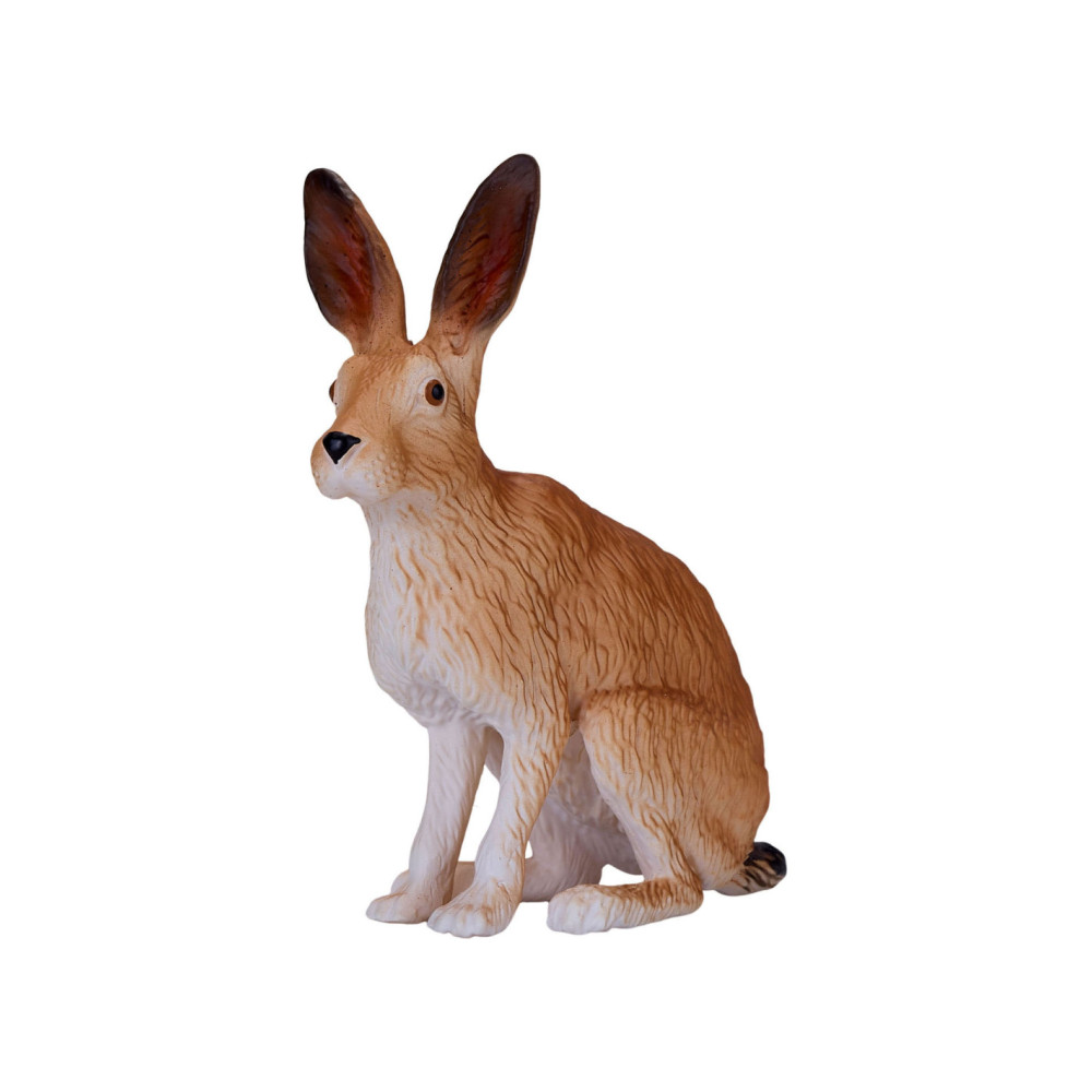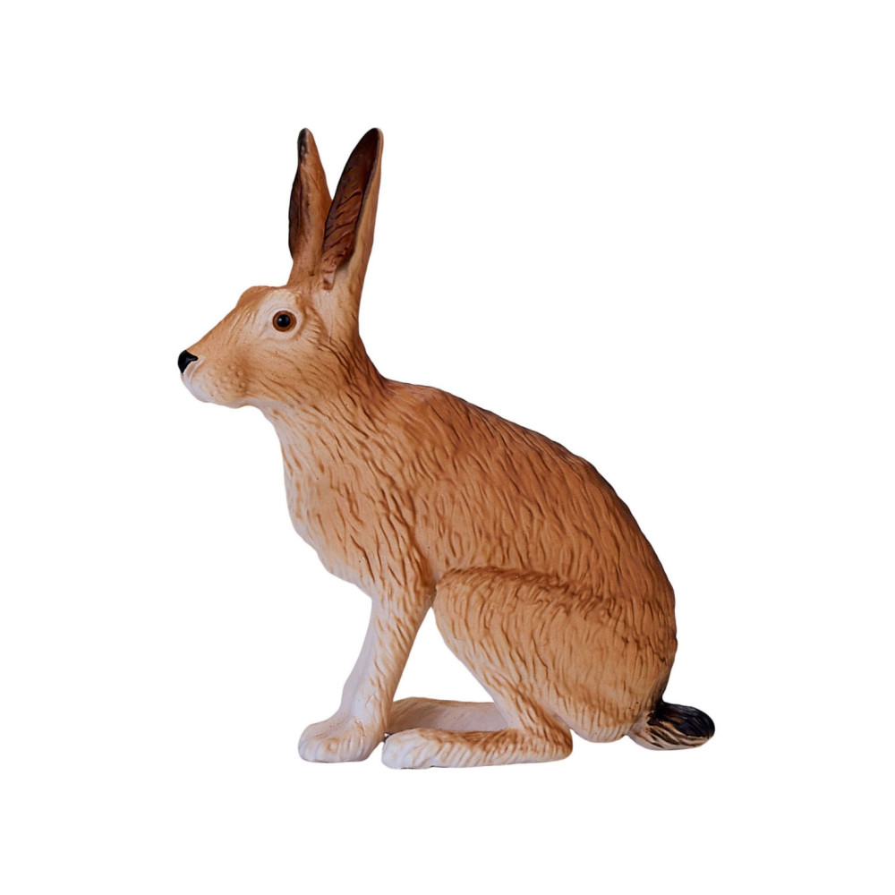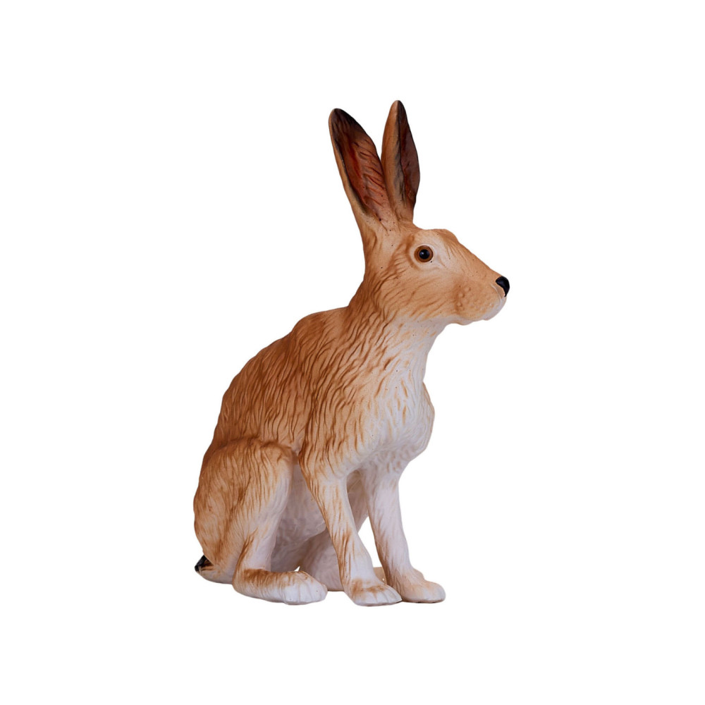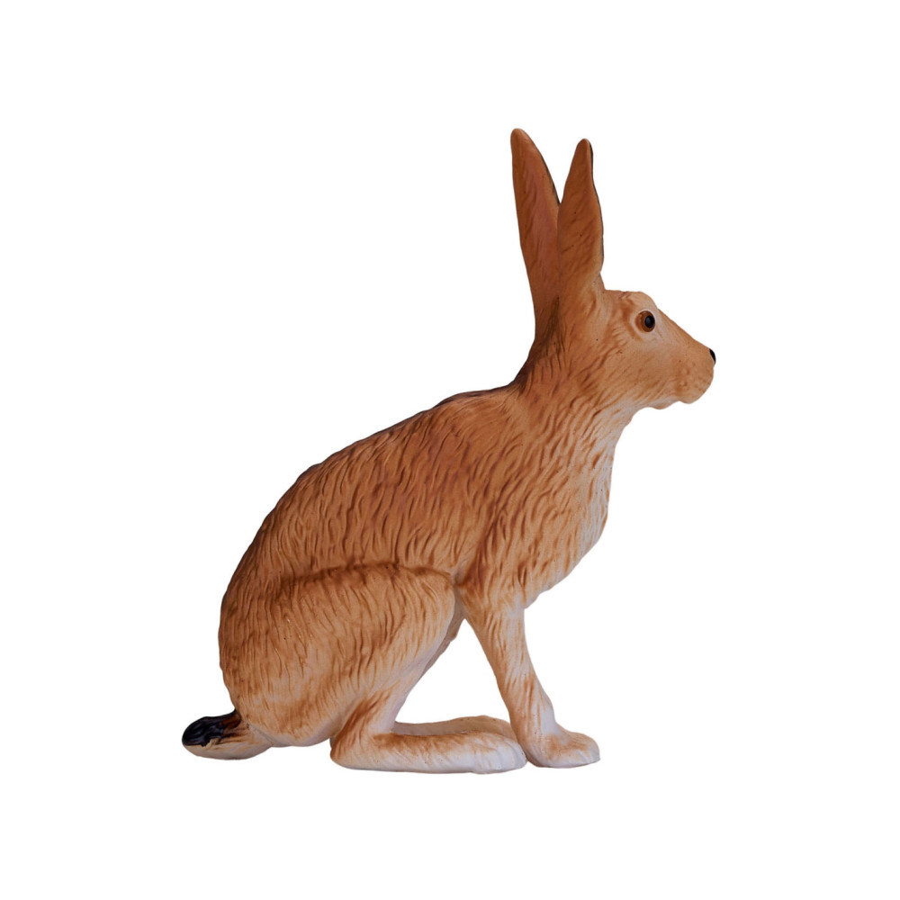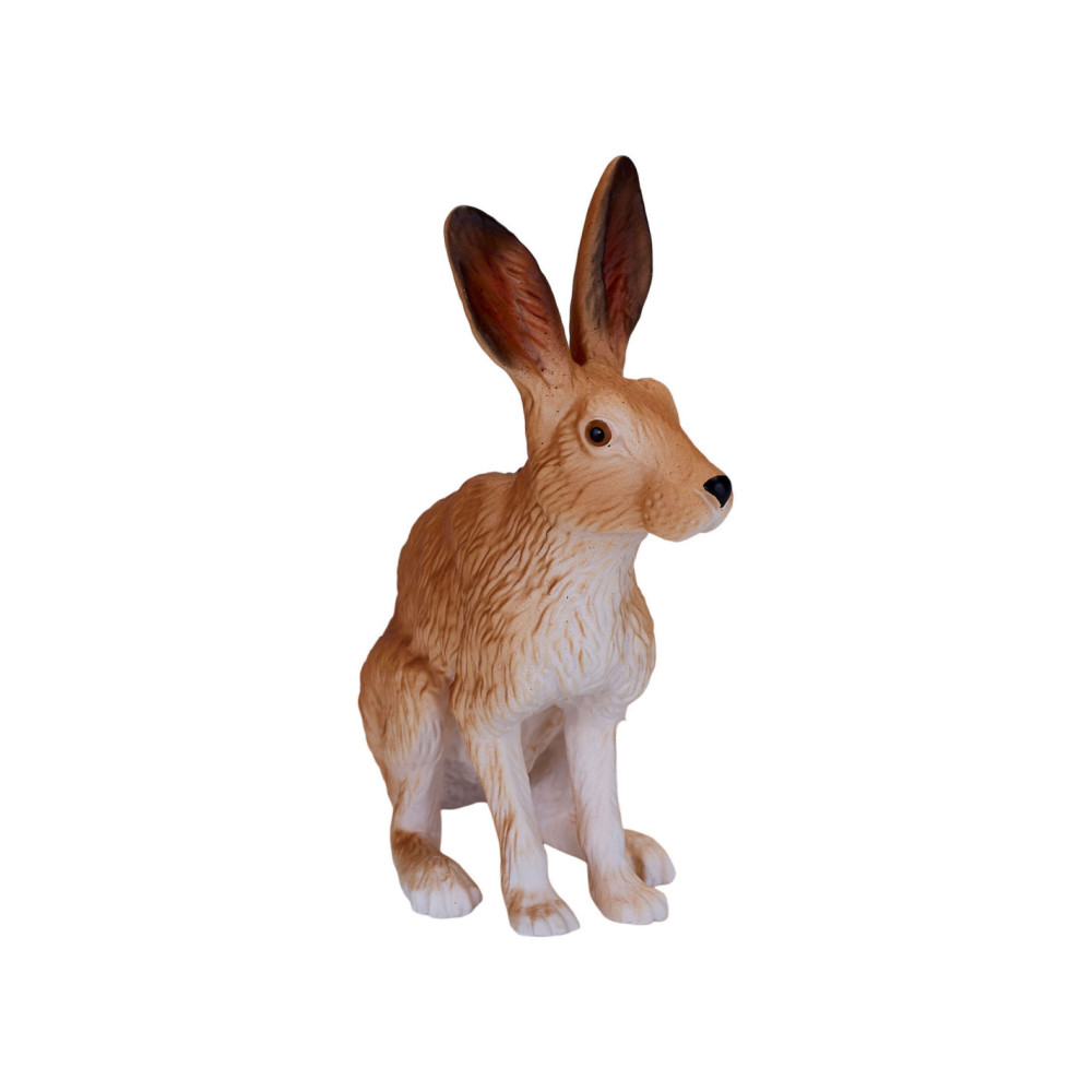 Het Hare-model uit de collectie van Mojo is een merkwaardig konijnenbeeldje, gebeeldhouwd in een zittende positie. Zijn lichaam is bruin geverfd met een witte onderkant en harige details over het hele lichaam. Dit haasbeeldje heeft ook grote oren, waardoor dit kleine mannetje perfect is voor jouw denkbeeldige bosavontuur.