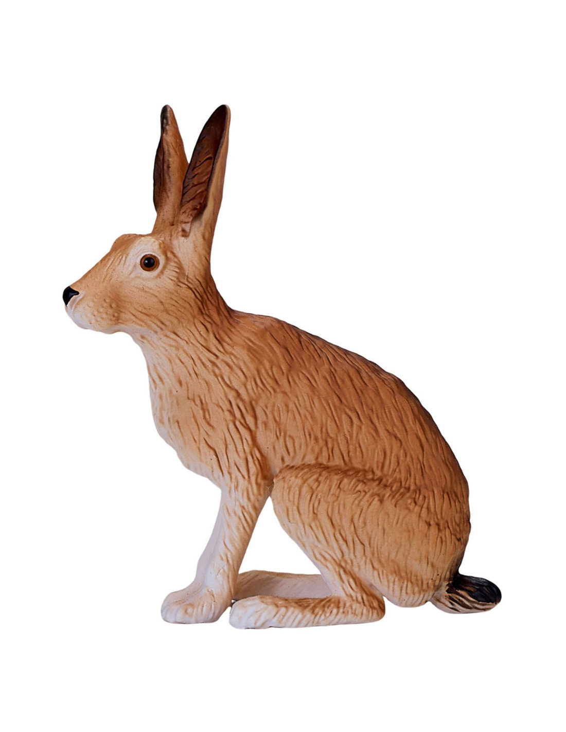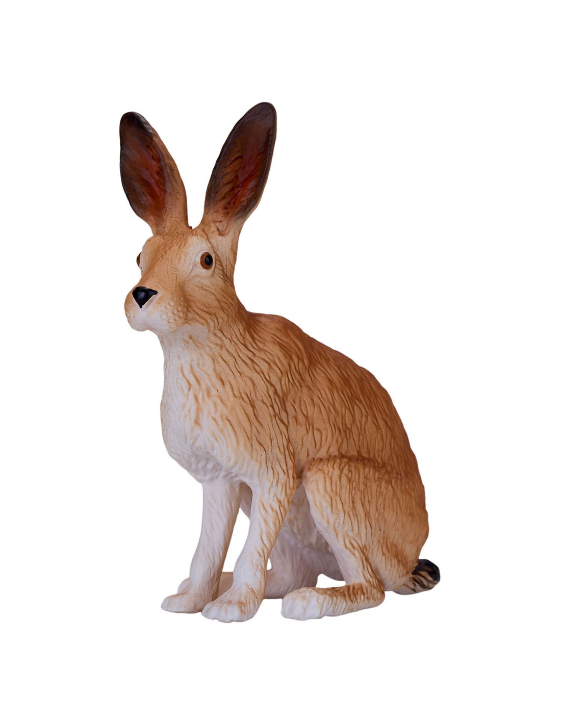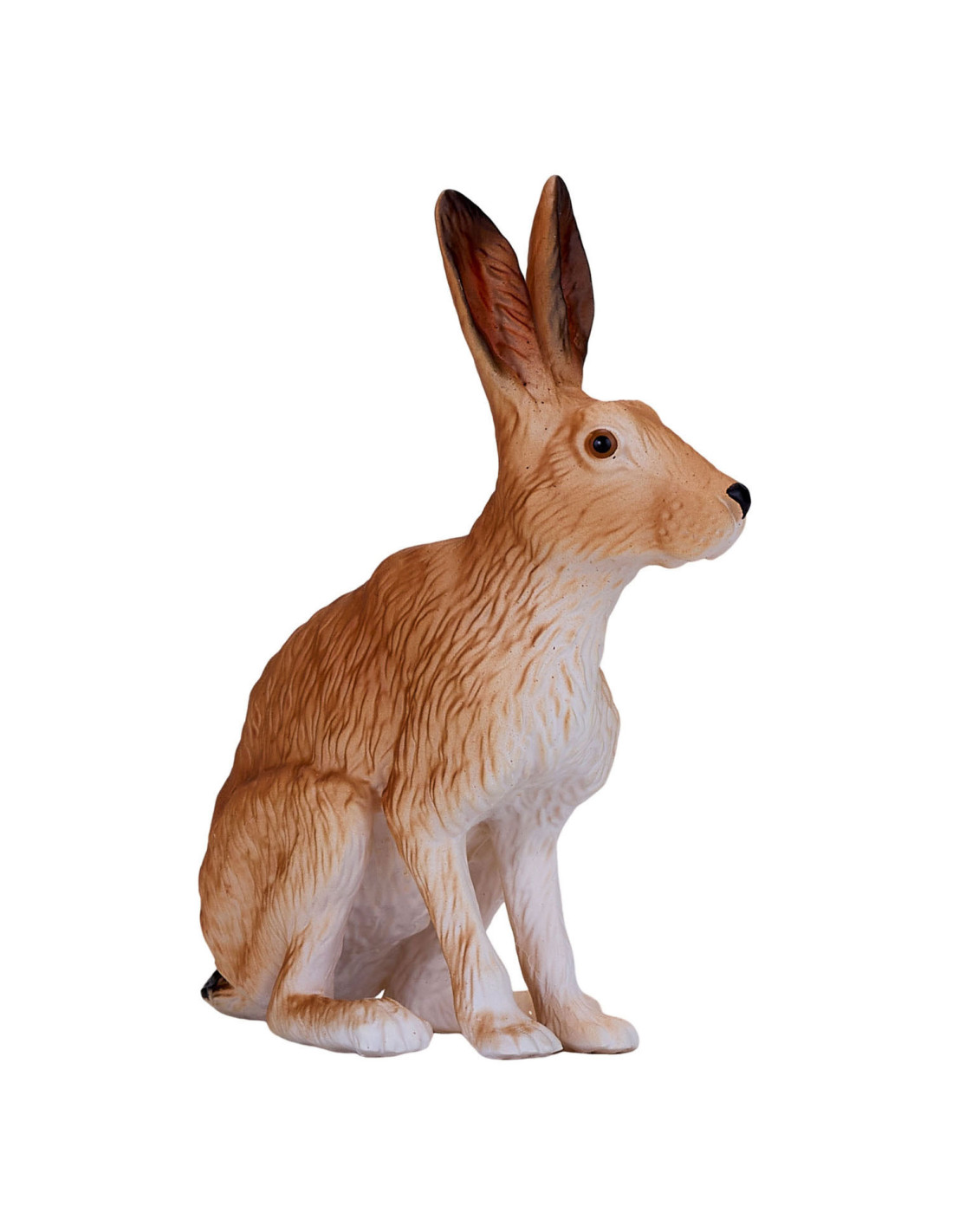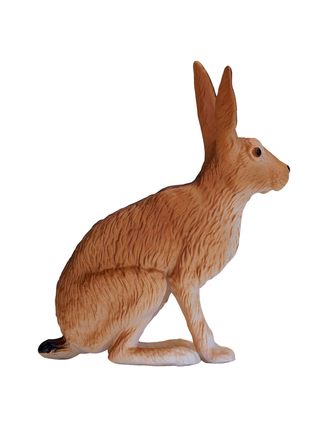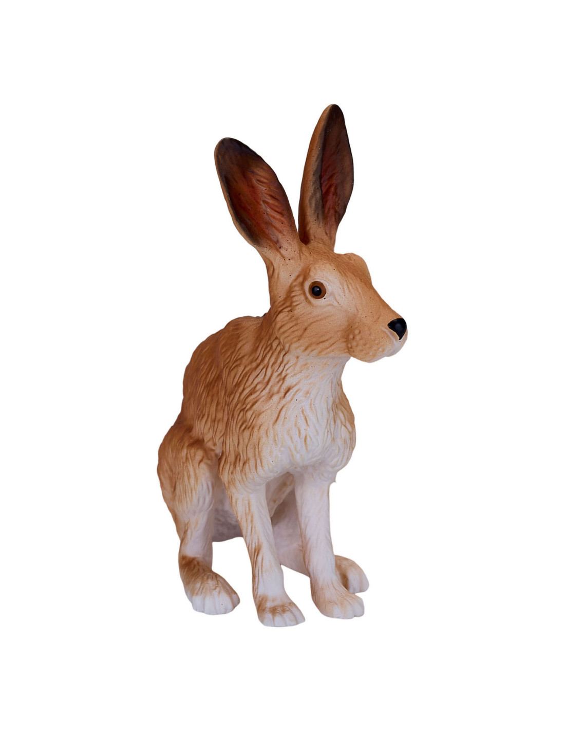Het Hare-model uit de collectie van Mojo is een merkwaardig konijnenbeeldje, gebeeldhouwd in een zittende positie. Zijn lichaam is bruin geverfd met een witte onderkant en harige details over het hele lichaam. Dit haasbeeldje heeft ook grote oren, waardoor dit kleine mannetje perfect is voor jouw denkbeeldige bosavontuur.