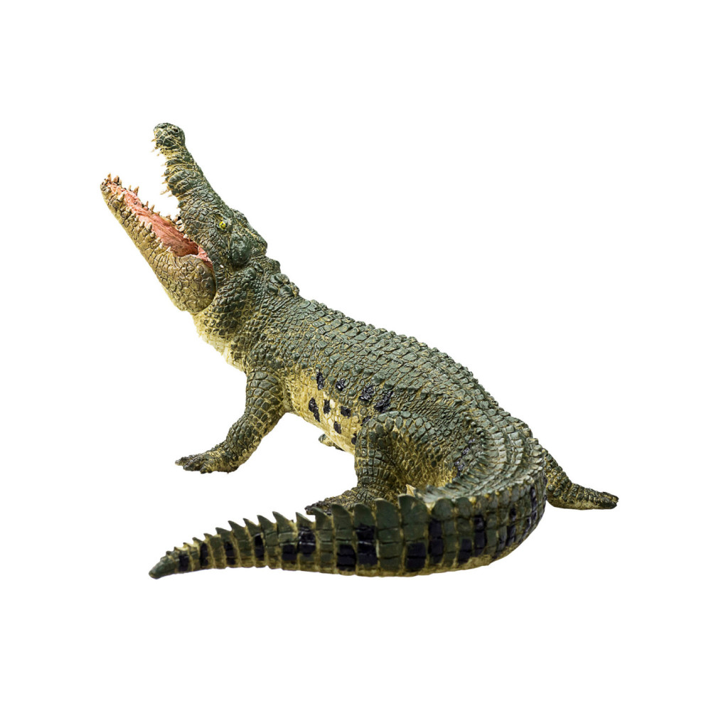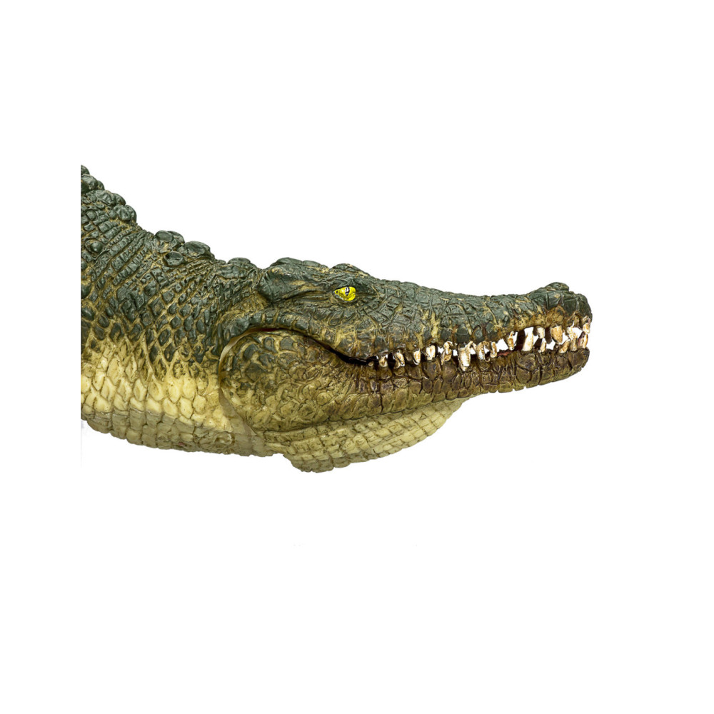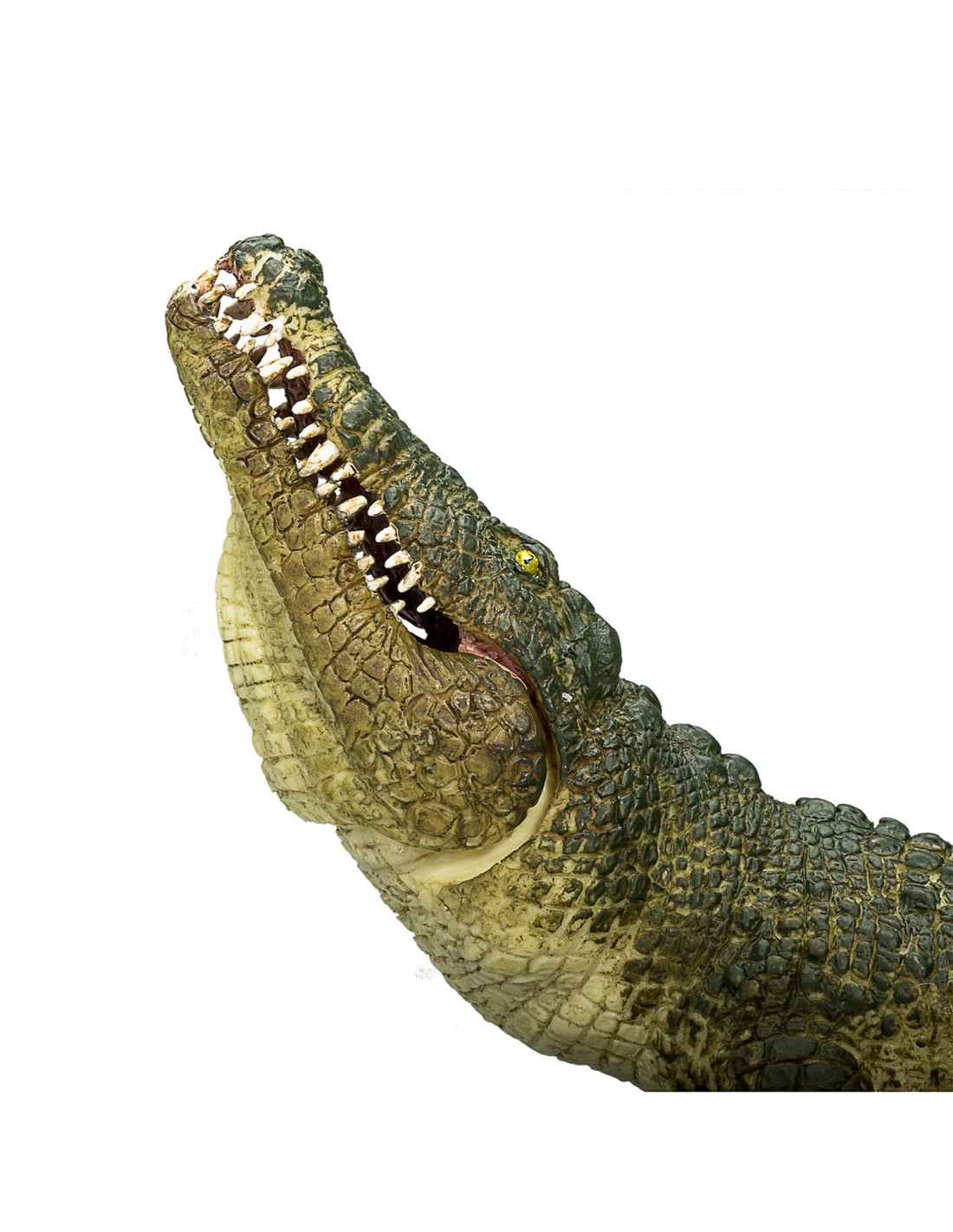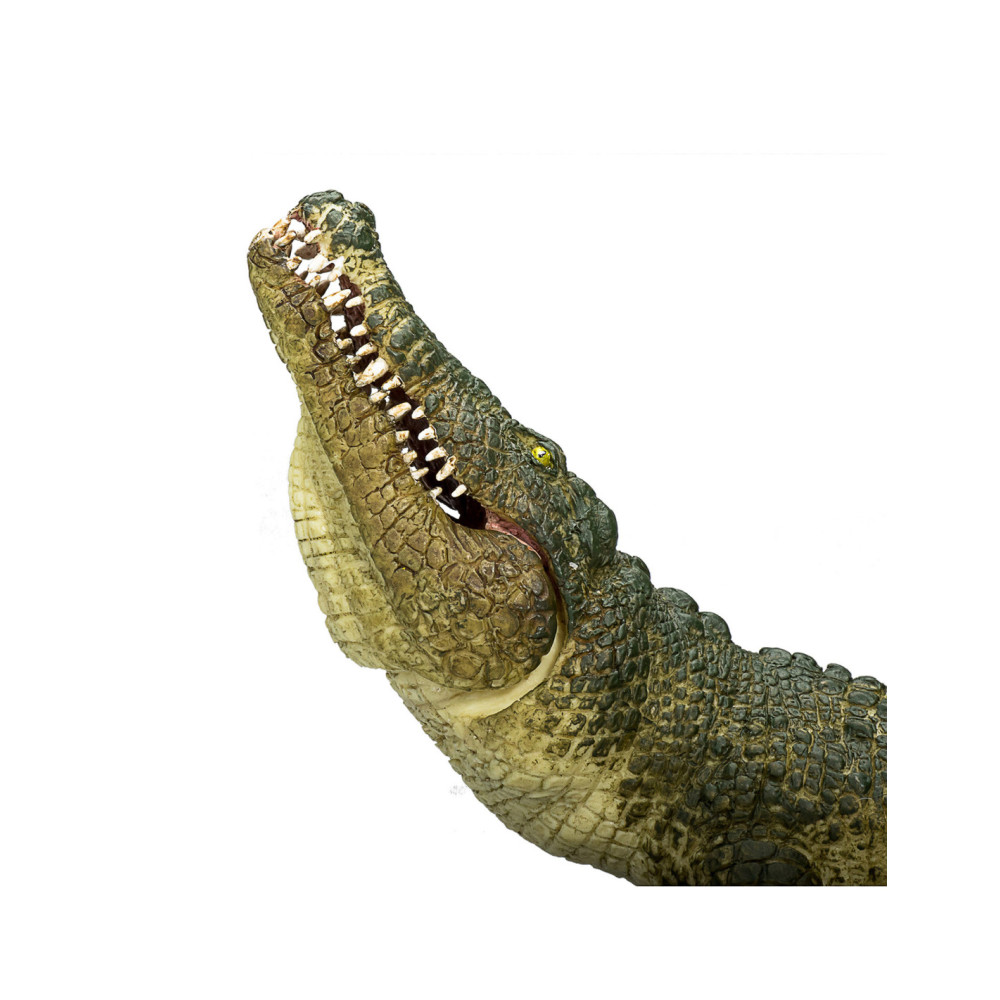 Afmetingen: 15 x 13 x 8 centimeter. De bek van de krokodil kan openen en sluiten.