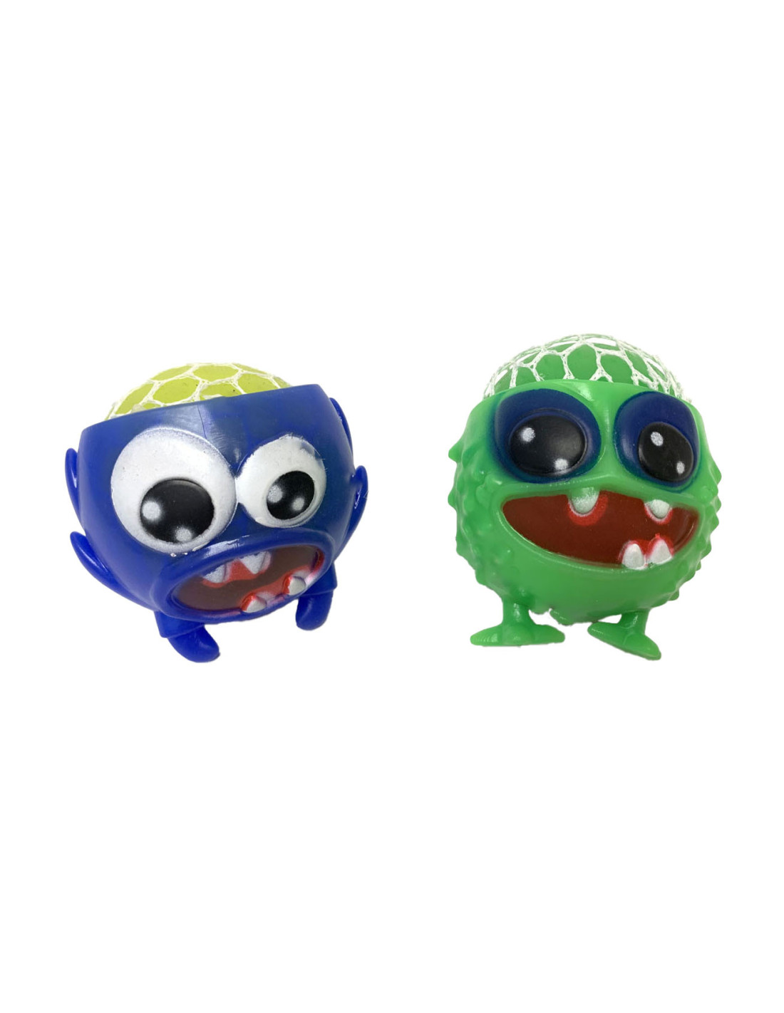 Knijpbal in de vorm van een monstertje met voetjes. Diameter 7 cm. Geschikt vanaf 3 jaar.