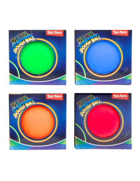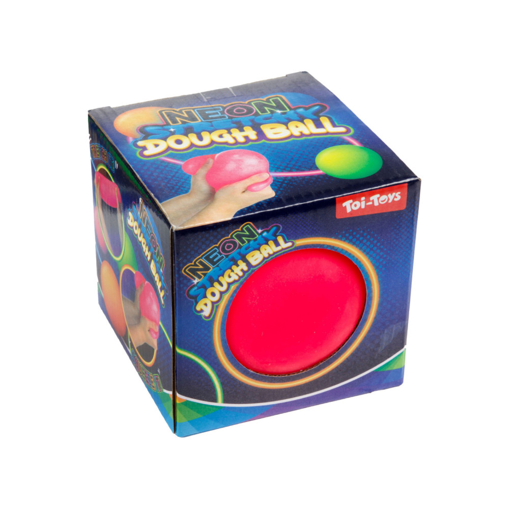Neonkleurige stretch kneedbal van 10 centimeter groot. Verkrijgbaar in de kleuren rood, oranje, blauw en groen. Geschikt voor kinderen vanaf 3 jaar oud.