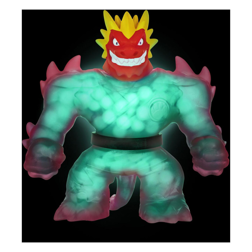 Blazagon, Tyro en Bengal zijn terug en hebben alle hulp nodig die ze kunnen krijgen als ze het opnemen tegen Scorpius en zijn boosaardige vriend Ultra zeldzame Gigatusk die een "Water Blast Attack" heeft. Er zijn 6 Goo Jit Zu Glow Shifters om te verzamelen. Elke met een unieke gloeivulling! Je kunt de helden platdrukken en uitrekken tot drie keer hun grootte. Knijp, trek, rek en verzamel ze allemaal!"
