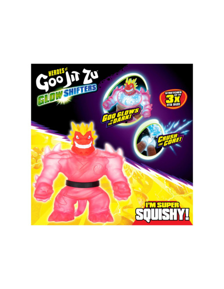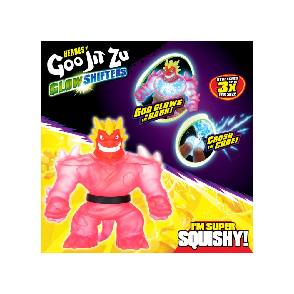Zet je schrap voor Glow-in-the-Dark-actie! De Goo Jit Zu Glow Shifters zijn hier! Ieders favoriete super rekbare, squishy helden zijn teruggekeerd en zijn klaar om de strijd aan te gaan! Crush the core van de Goo Jit Zu om zijn gloeiende goo van kleur te veranderen!