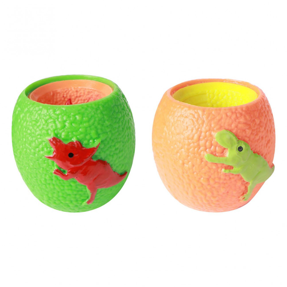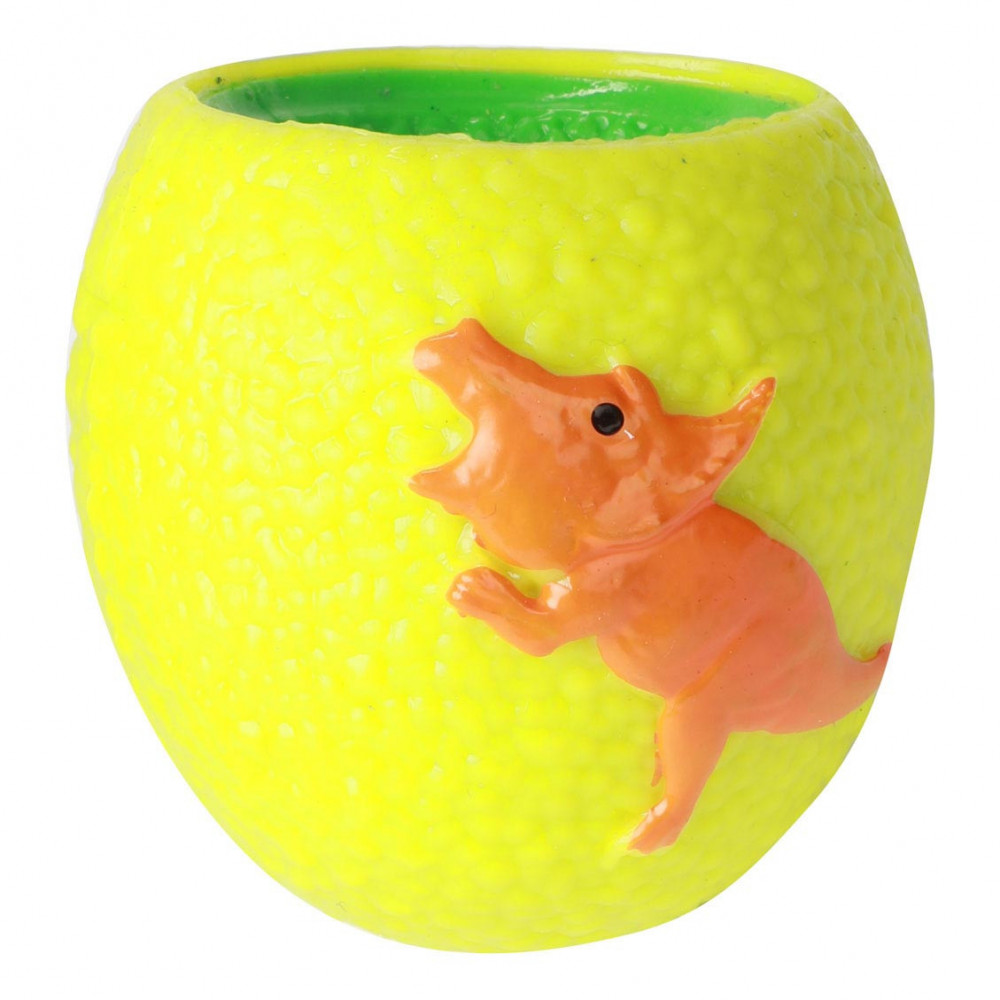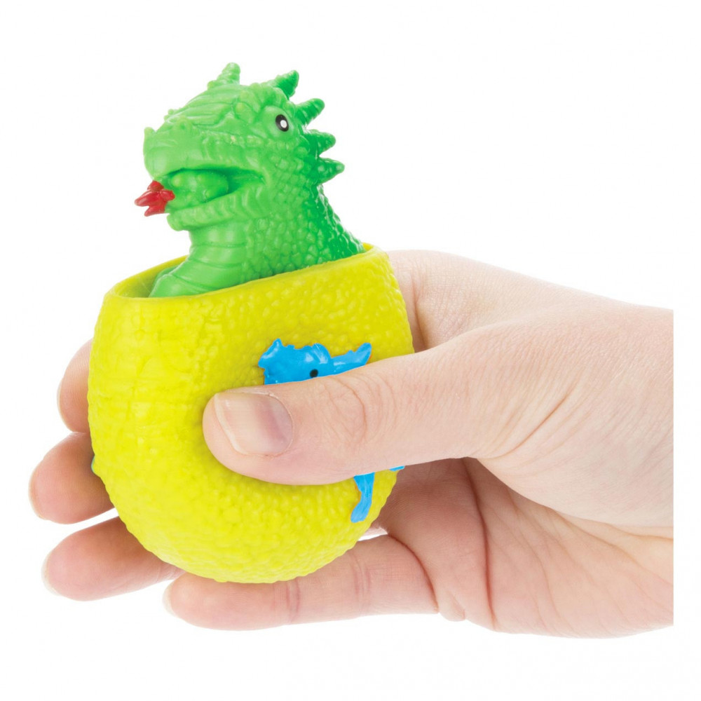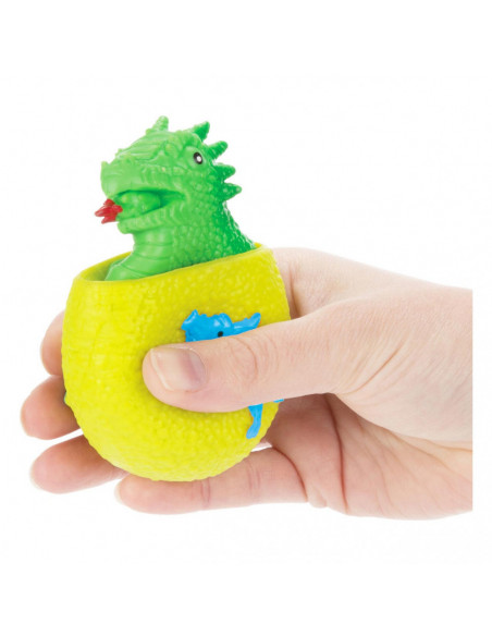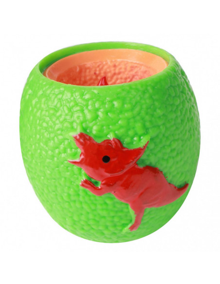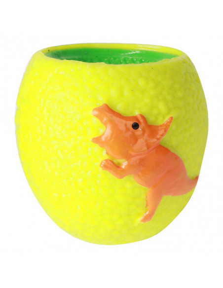 Een zacht synthetisch rubberen ei waar je niet alleen in knijpt omdat het zo lekker rustgevend is maar ook omdat er dan, heel verrassend, een dinosaurus tevoorschijn komt. Er zijn 3 verschillende soorten.