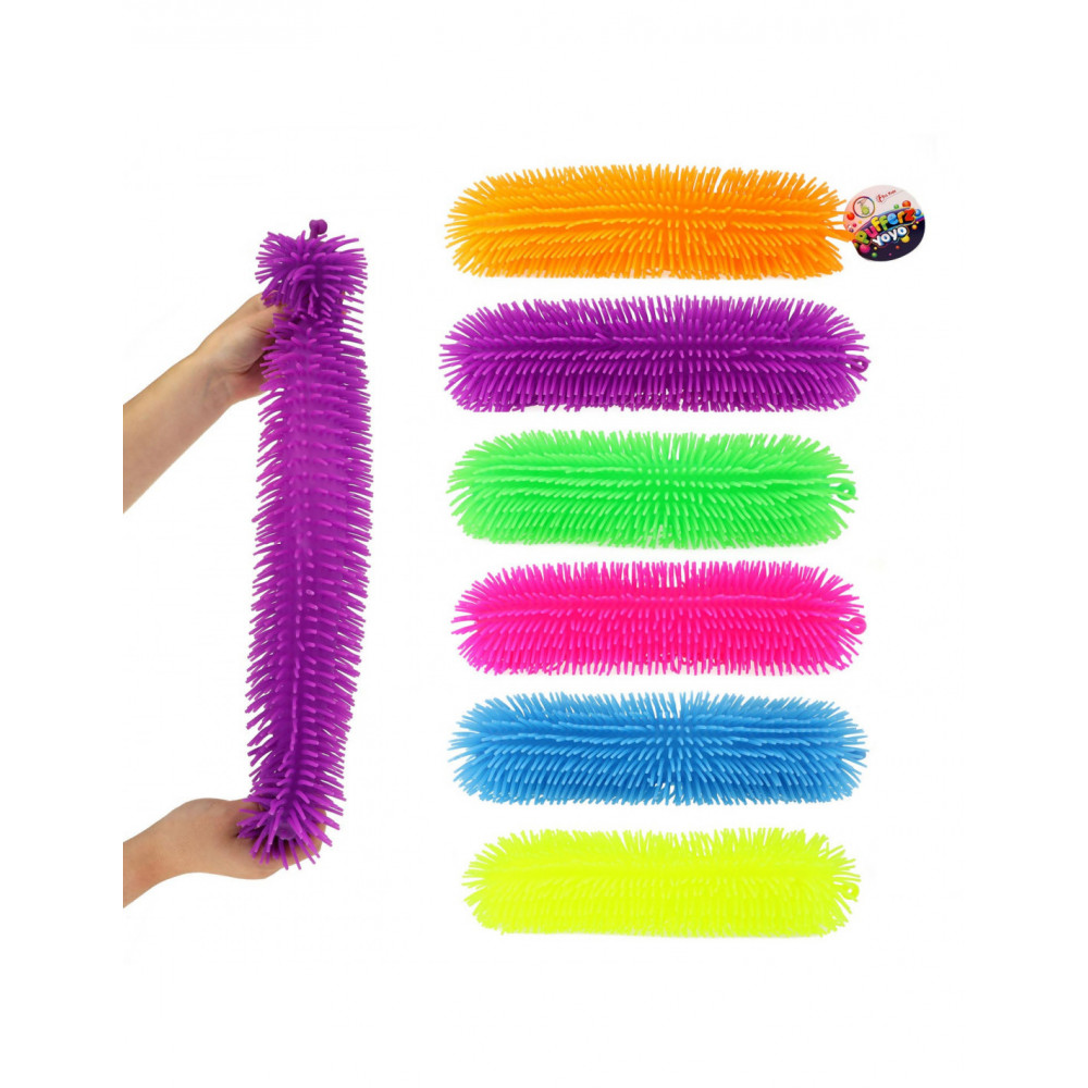 Wat een gekke pufferrups! Of is het een duizendpoot? In ieder geval is hij lekker lang voor veel uren knijpplezier.
