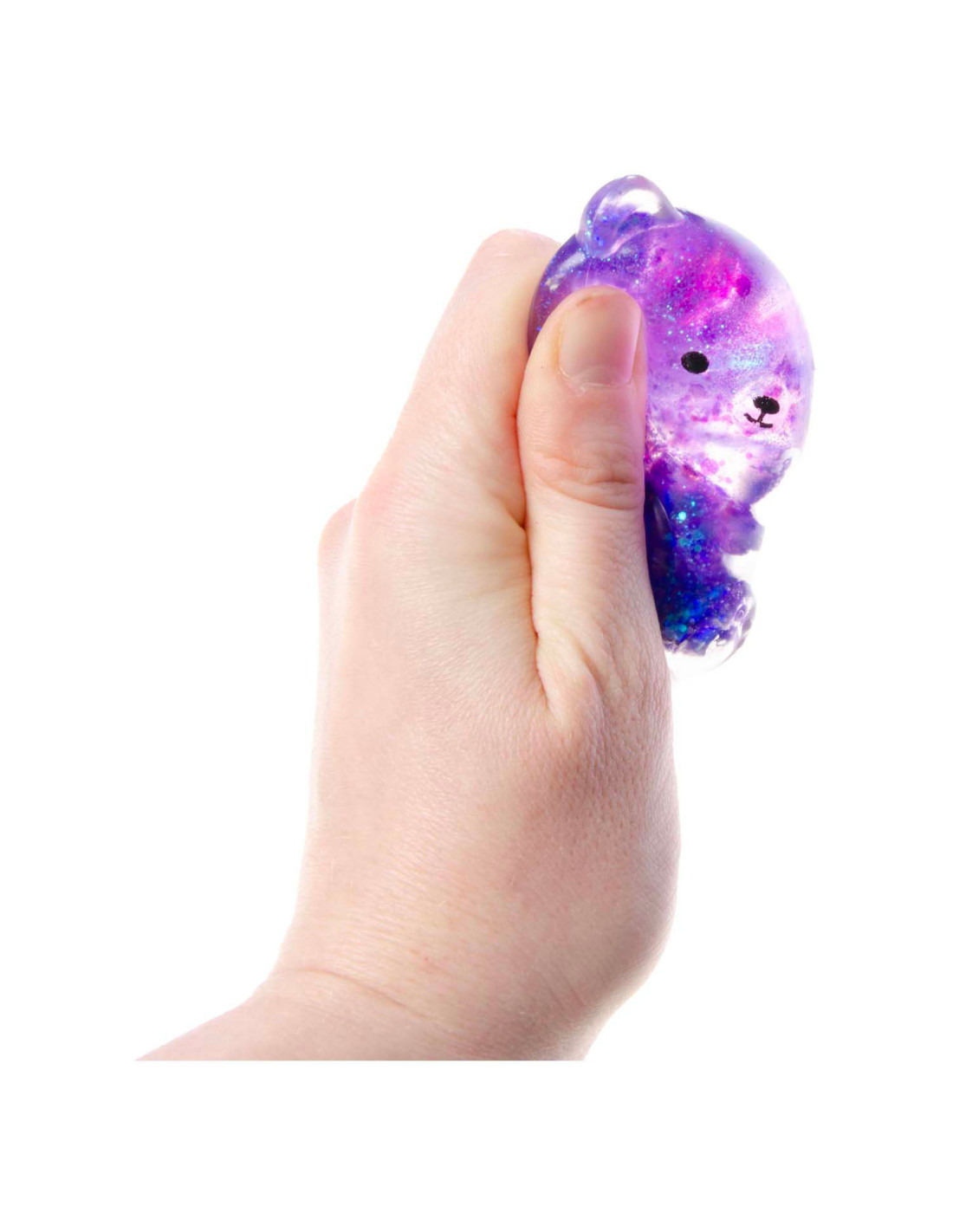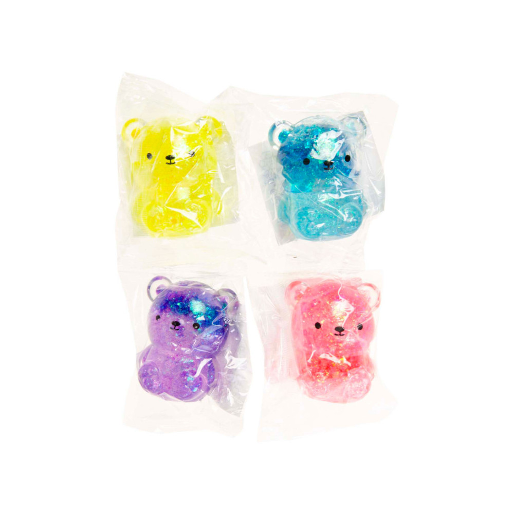 Knijpbare glitter beertje. Afmeting: 4,5 x 6 cm. Geschikt voor kinderen vanaf 3 jaar.