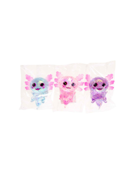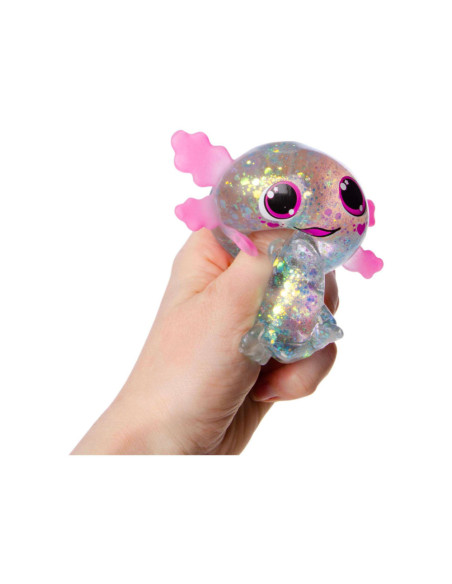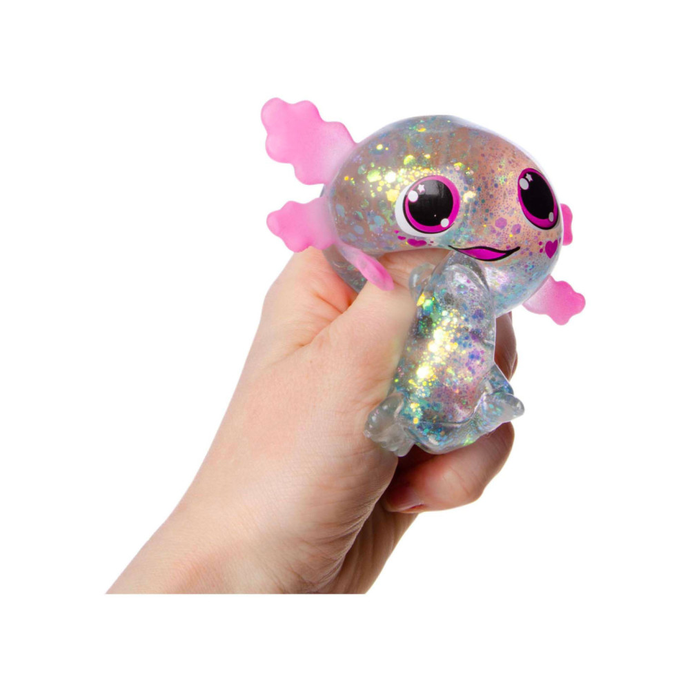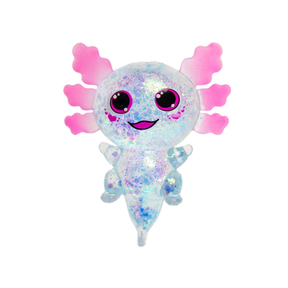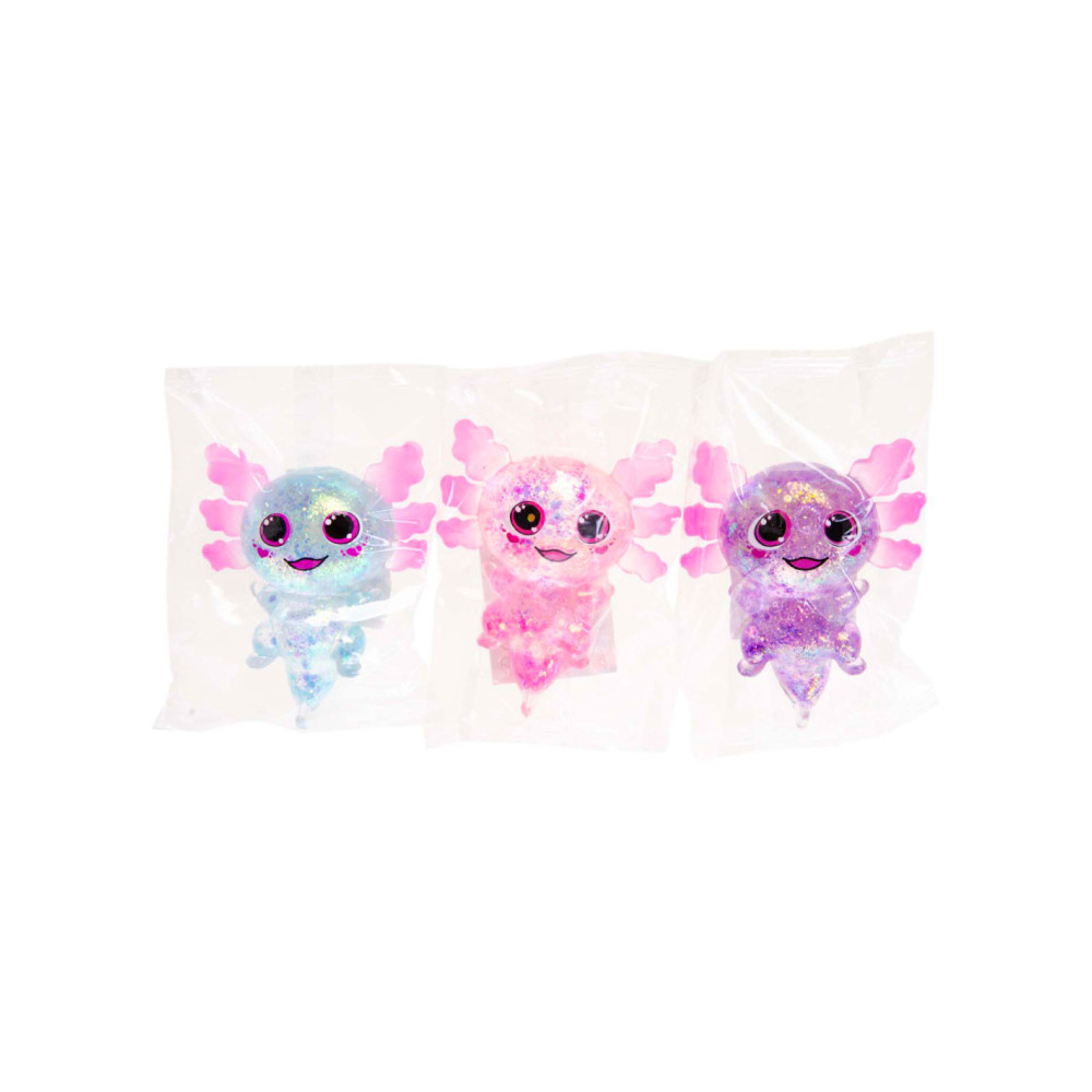 Squeeze Axolotl Transparant, gevuld met glitter.