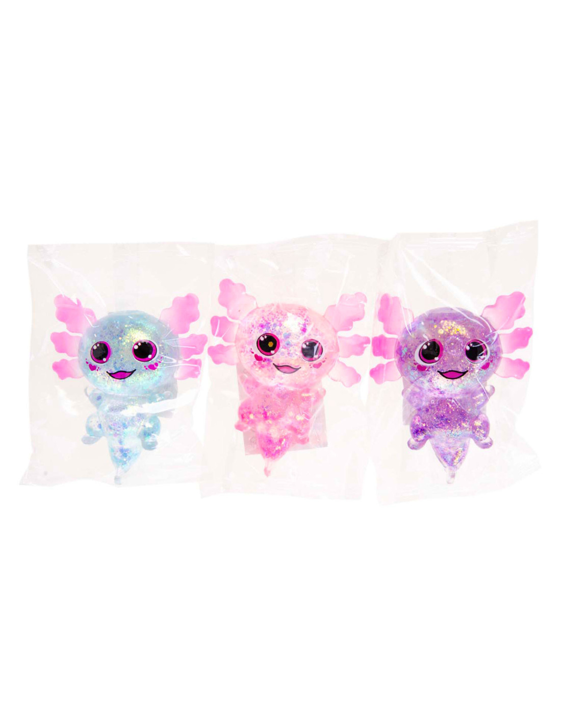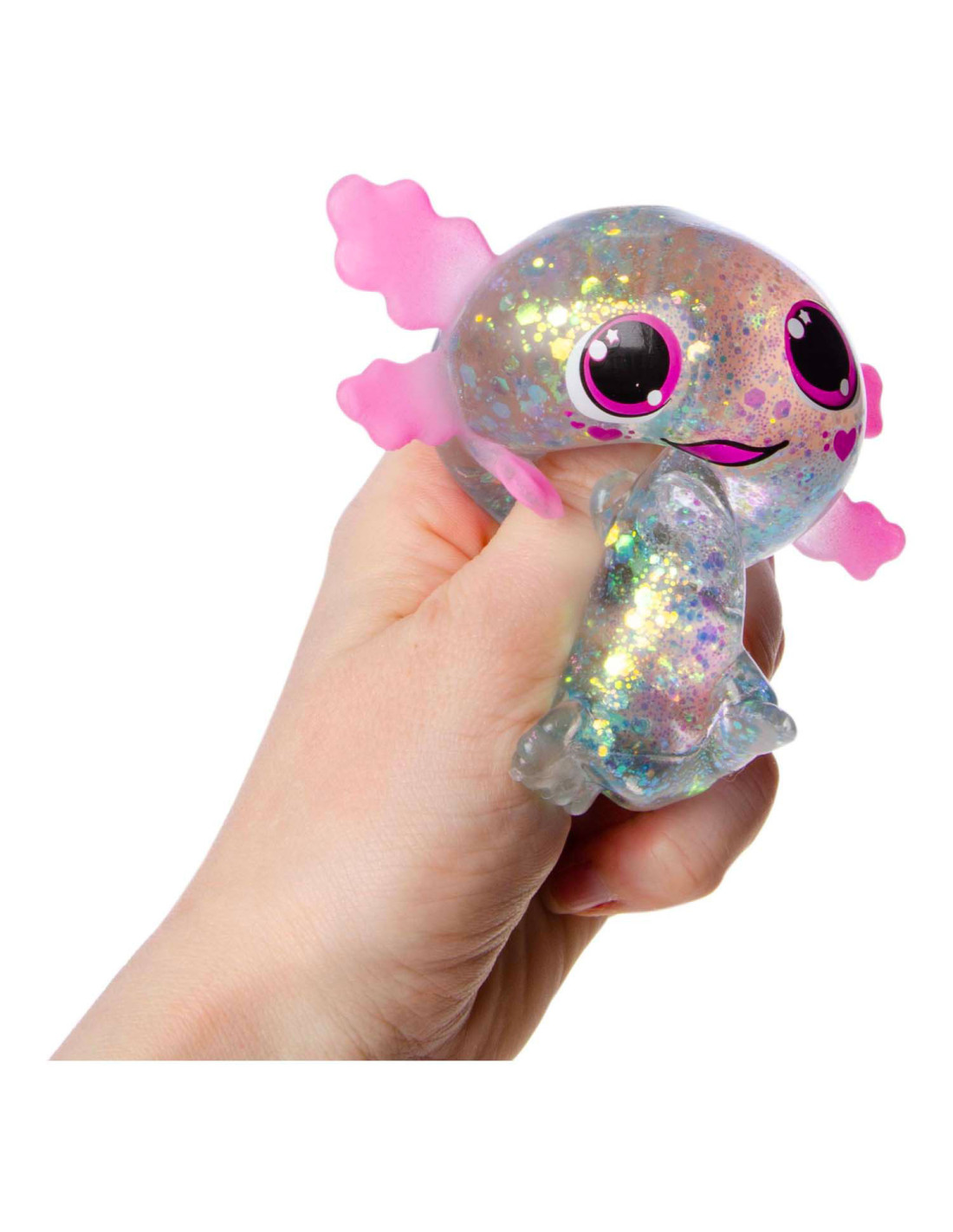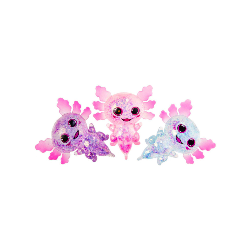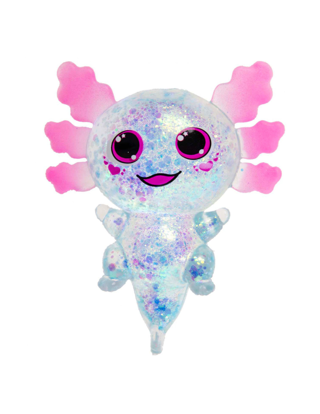 Squeeze Axolotl Transparant, gevuld met glitter.