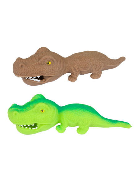 WORLD OF DINOSAURS Rekbare Kneeddino. Afmetingen: 5 x 21 x 6,5 centimeter. Geschikt voor kinderen van 3 jaar en ouder.