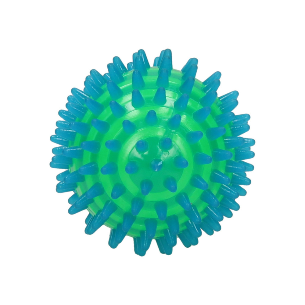 Grote stuiterbal van 10 centimeter groot met spikes en licht. Geschikt vanaf 3 jaar.