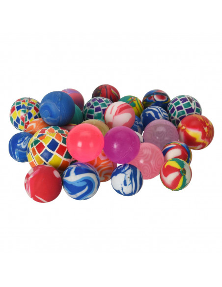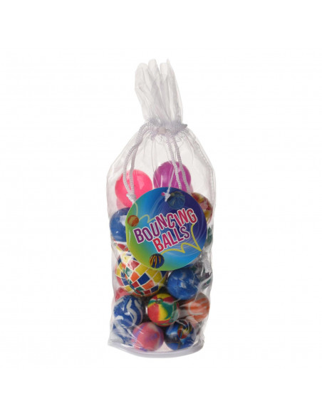 Met deze dertig stuiterballen zit er altijd wel een bal bij die jouw kind leuk vindt. De ballen hebben verschillende diameters en zijn voorzien van leuke patronen. Laat jouw kind ze gooien, stuiteren en vangen voor veel speelplezier. Ook zijn deze stuiterballen leuk om te gebruiken in verschillende spellen, zoals het stuiteren van de bal in een doel.
