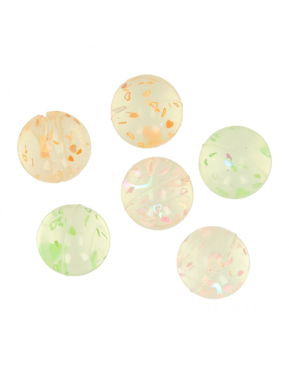 Stuiter de liefde tegemoet met deze betoverende set van 6 transparante stuiterballen, elk gevuld met schattige hartjesspikkels! Deze stuiterballen zijn niet alleen een bron van eindeloos plezier, maar ook een visueel feest met hun sprankelende en kleurrijke hartvormige decoraties.
