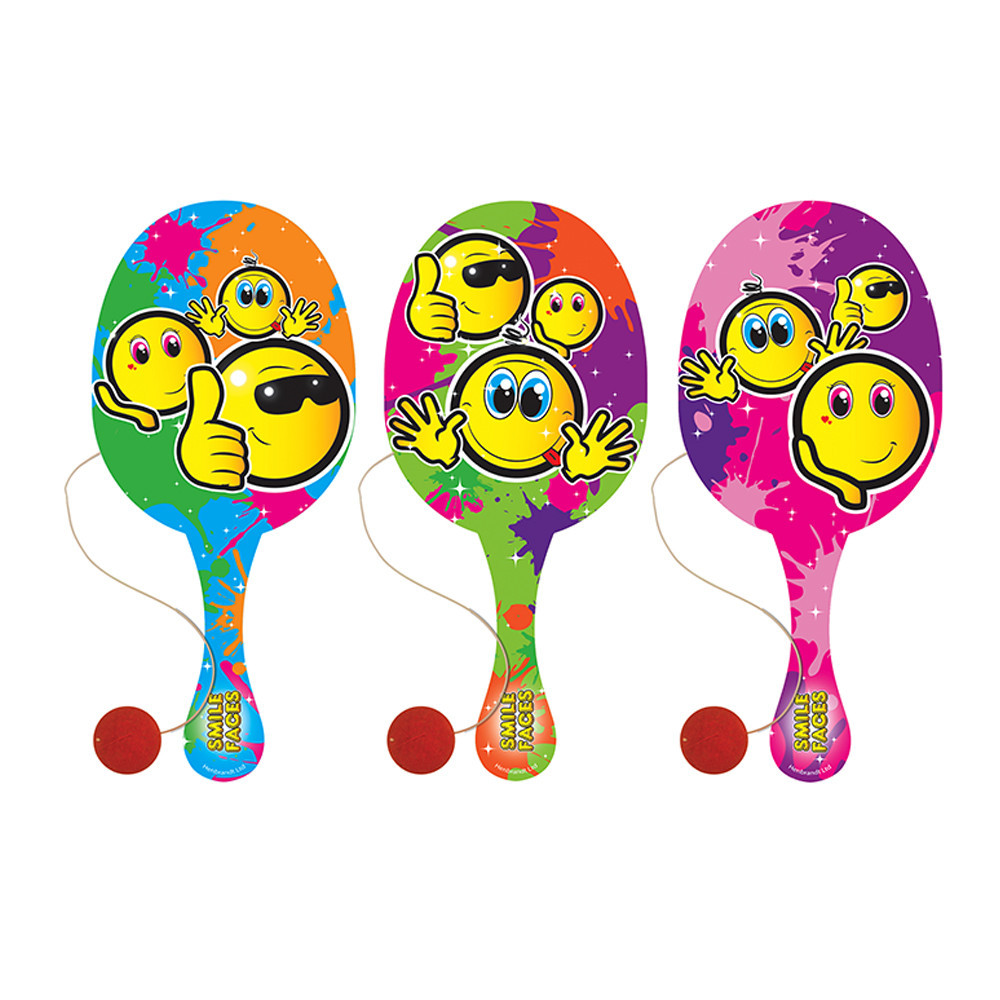Op zoek naar een leuk uitdeelcadeautje dat gegarandeerd een glimlach op ieders gezicht tovert? Dan is het Houten Racket met Bal aan Koord Lachgezicht Emoji bundel van 12 stuks precies wat je zoekt! Dit vrolijke speeltje is perfect voor kinderfeestjes, traktaties op school of andere feestelijke gelegenheden.