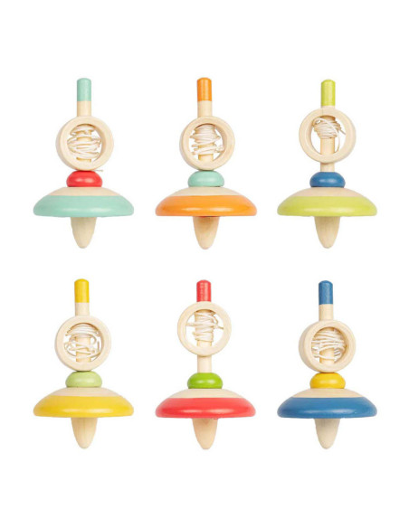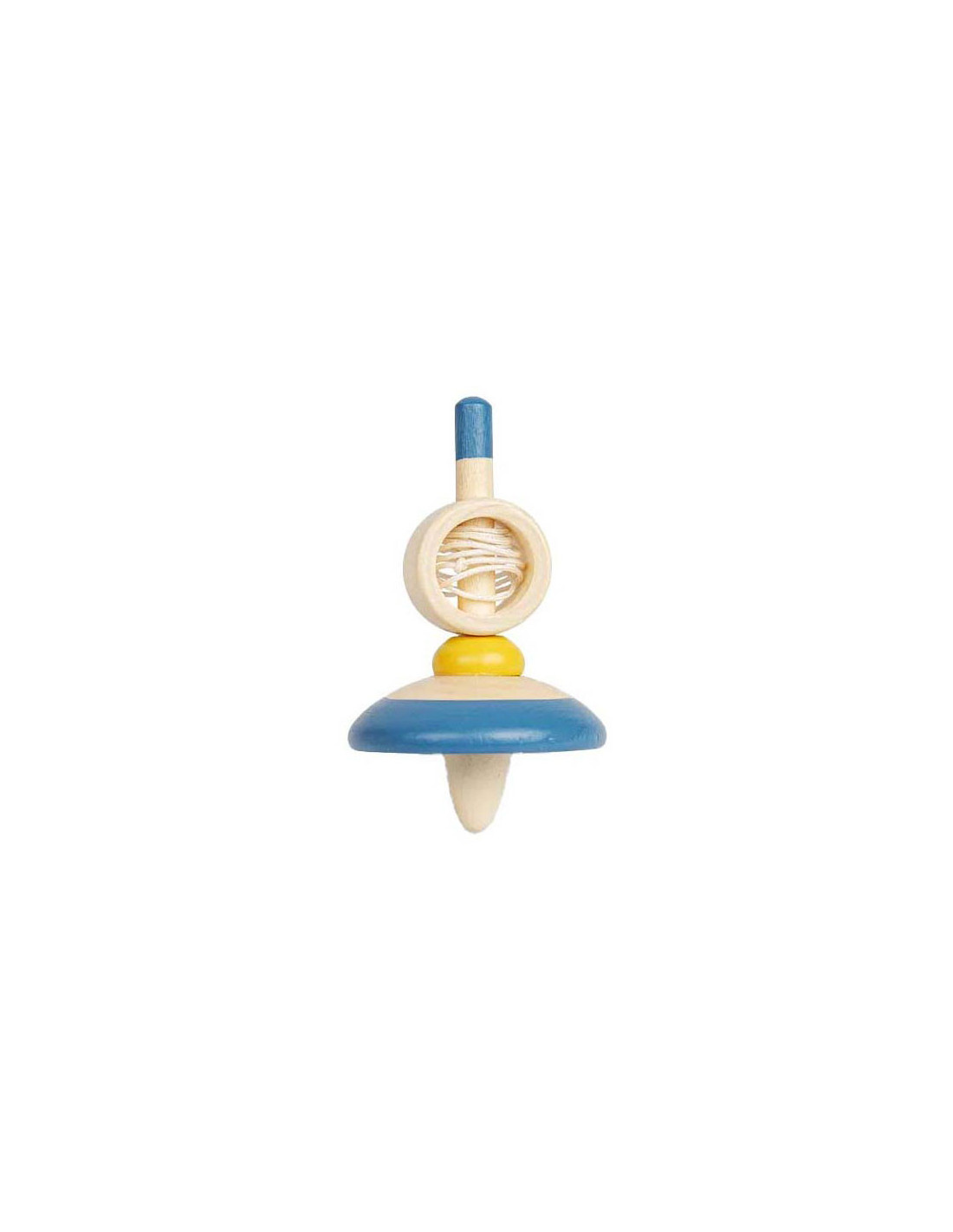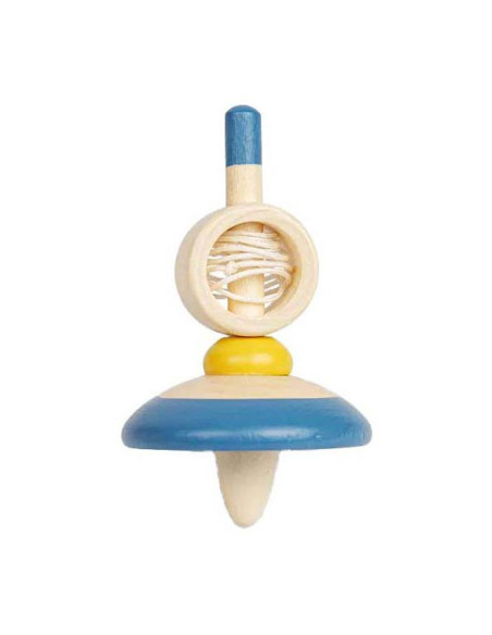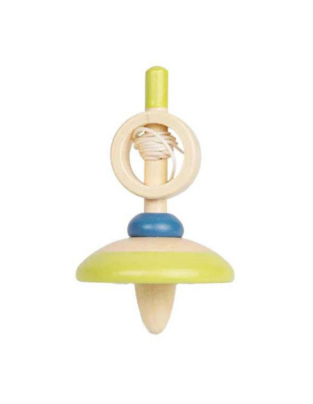 Houten tol met trekkoord. Geschikt voor kinderen vanaf 3 jaar.