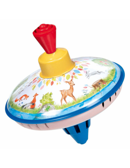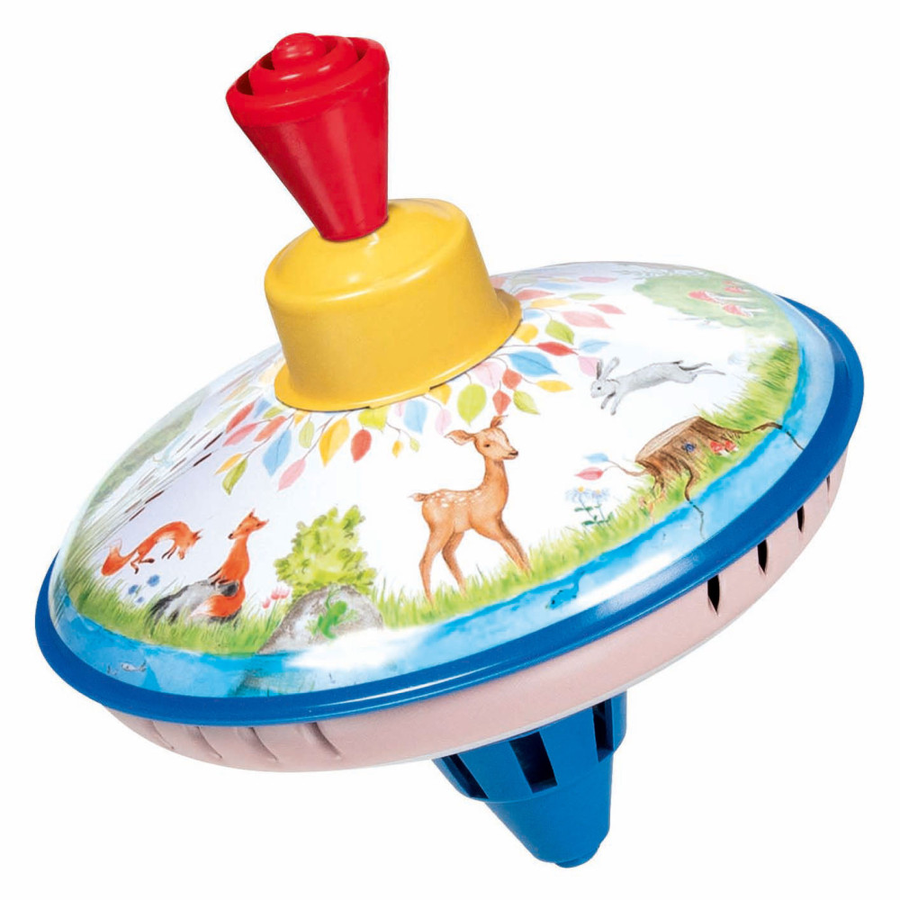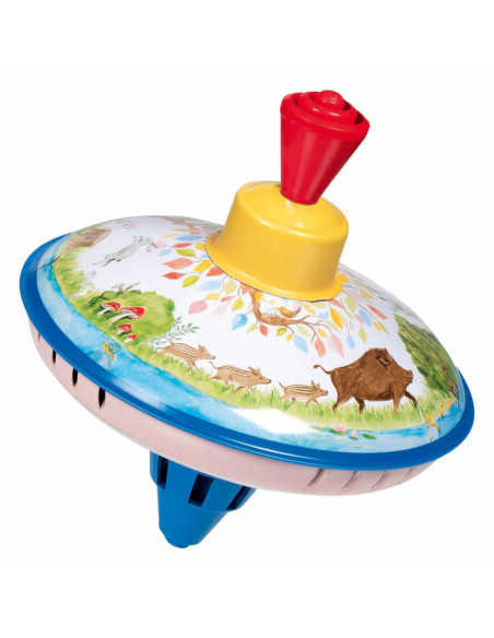 Deze bromtol maakt indruk met zijn prachtige, handgetekende ontwerp met schattige bosdiertjes. Laat de tol draaien en luister naar het geluid! Kenmerken • Aanbevolen leeftijd: 1+ • Materiaal: metaal, kunststof • Artikelgrootte: 14,5 cm