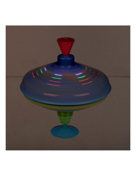 Een klassiek metalen, zoemend topje. Maar deze Goki-tol komt duidelijk uit de toekomst of op zijn minst uit een verre uithoek van het oneindige heelal. Wanneer de draaiende top in beweging wordt gezet, hoor je het klassieke zoemende topgeluid. Maar dat is nog niet alles! De ingebouwde LED-verlichting zorgen voor een buitenaards lichtspektakel. Natuurlijk, het effect is het meest indrukwekkend in het donker. De prikkel om te spelen is enorm en de motoriek wordt ook nog eens op een zeer intensieve en speelse manier getraind. Dat is hoe een speelgoed zou moeten zijn.