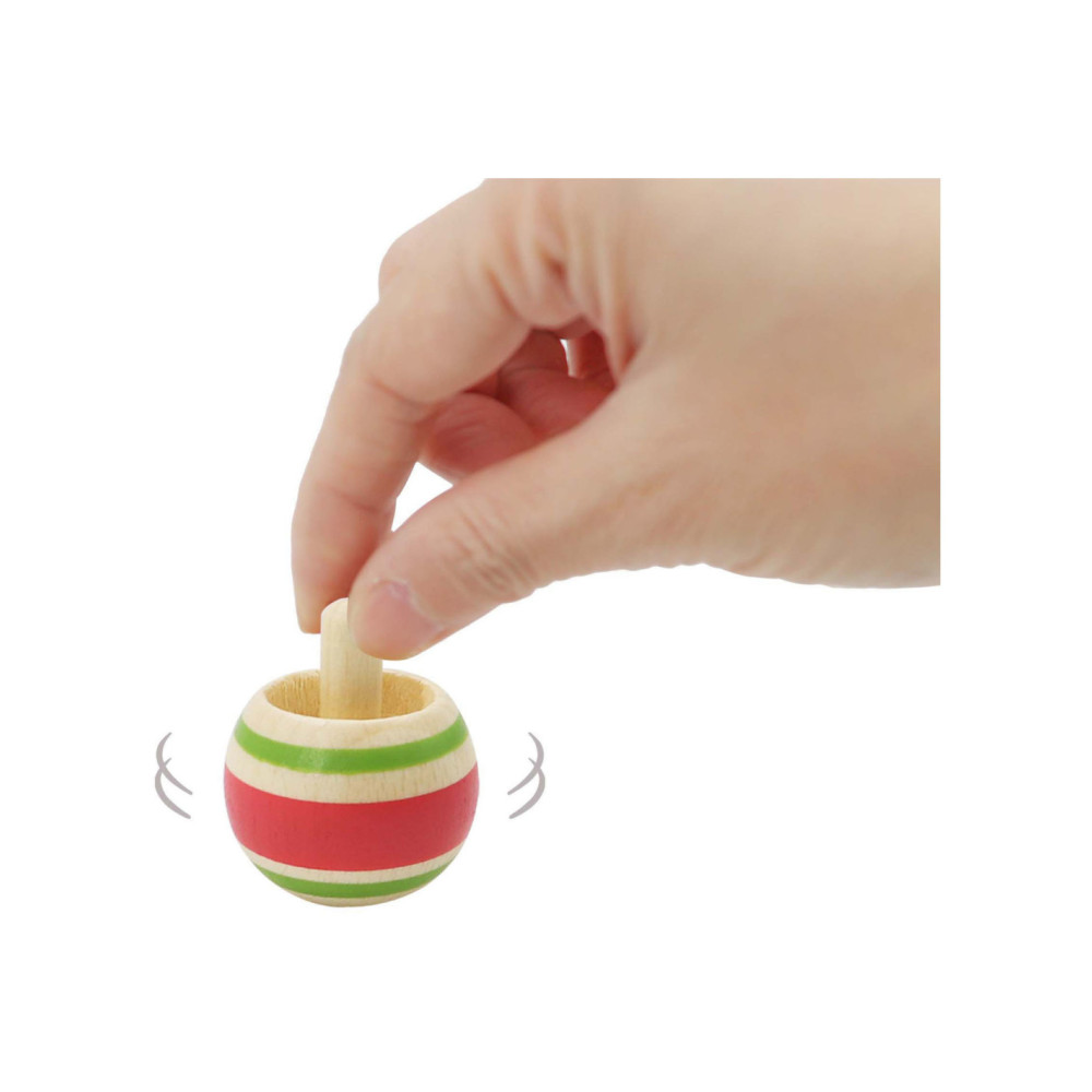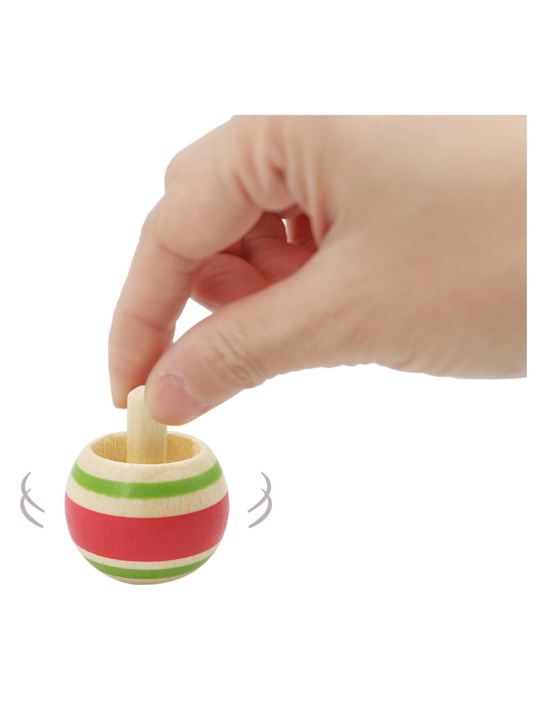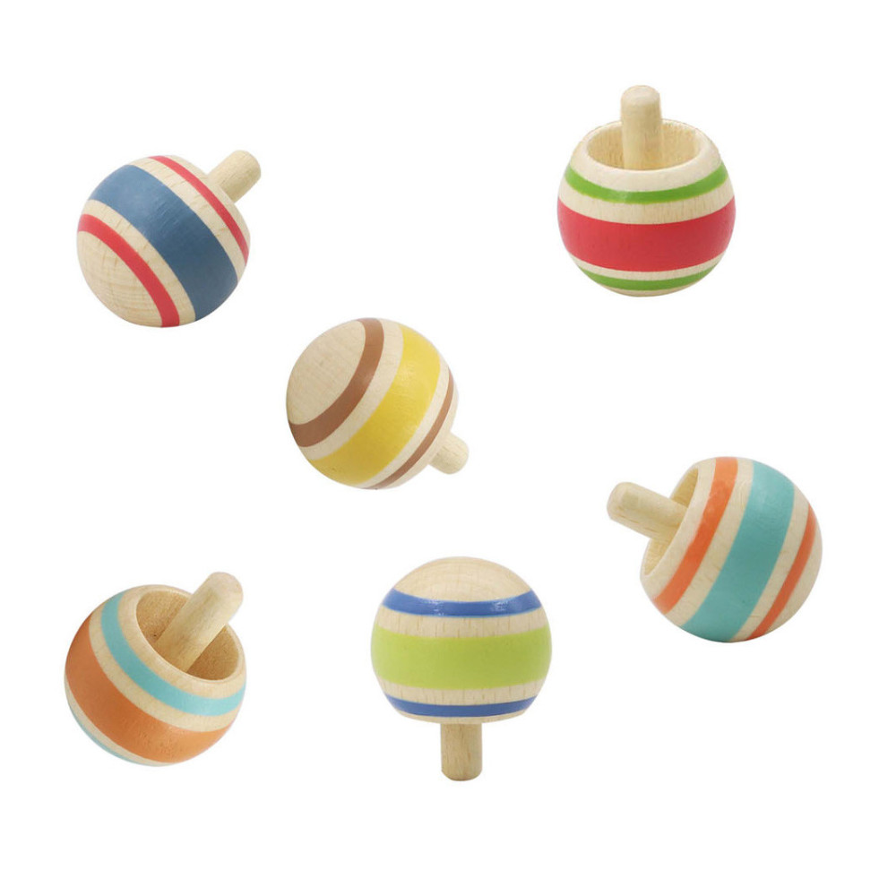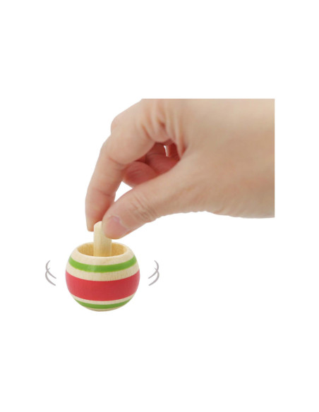 Houten tol met vrolijke kleurtjes. Geschikt voor kinderen vanaf 3 jaar.