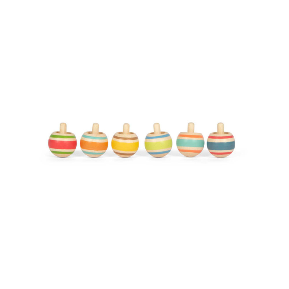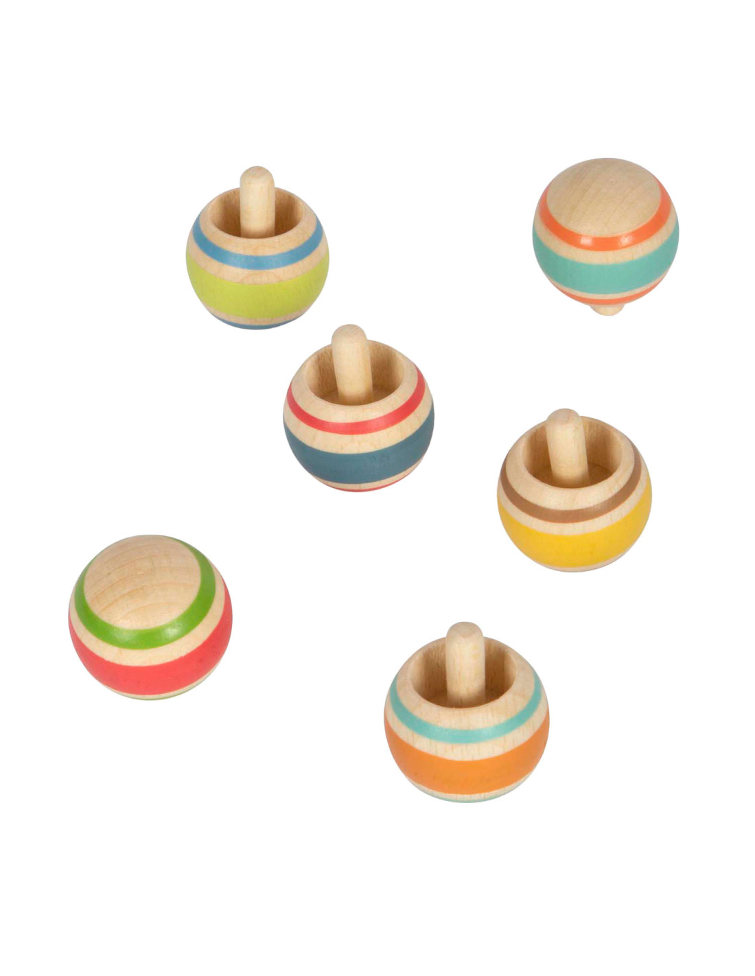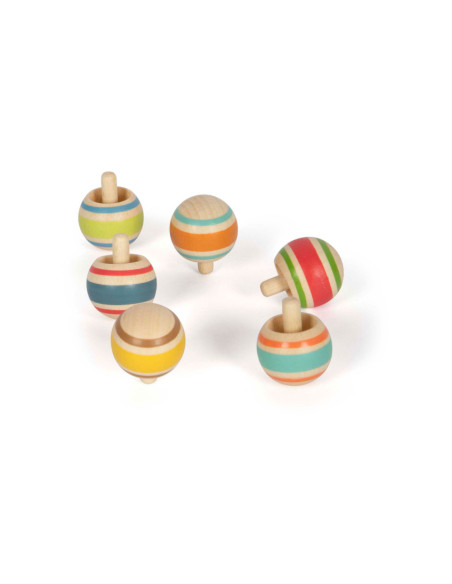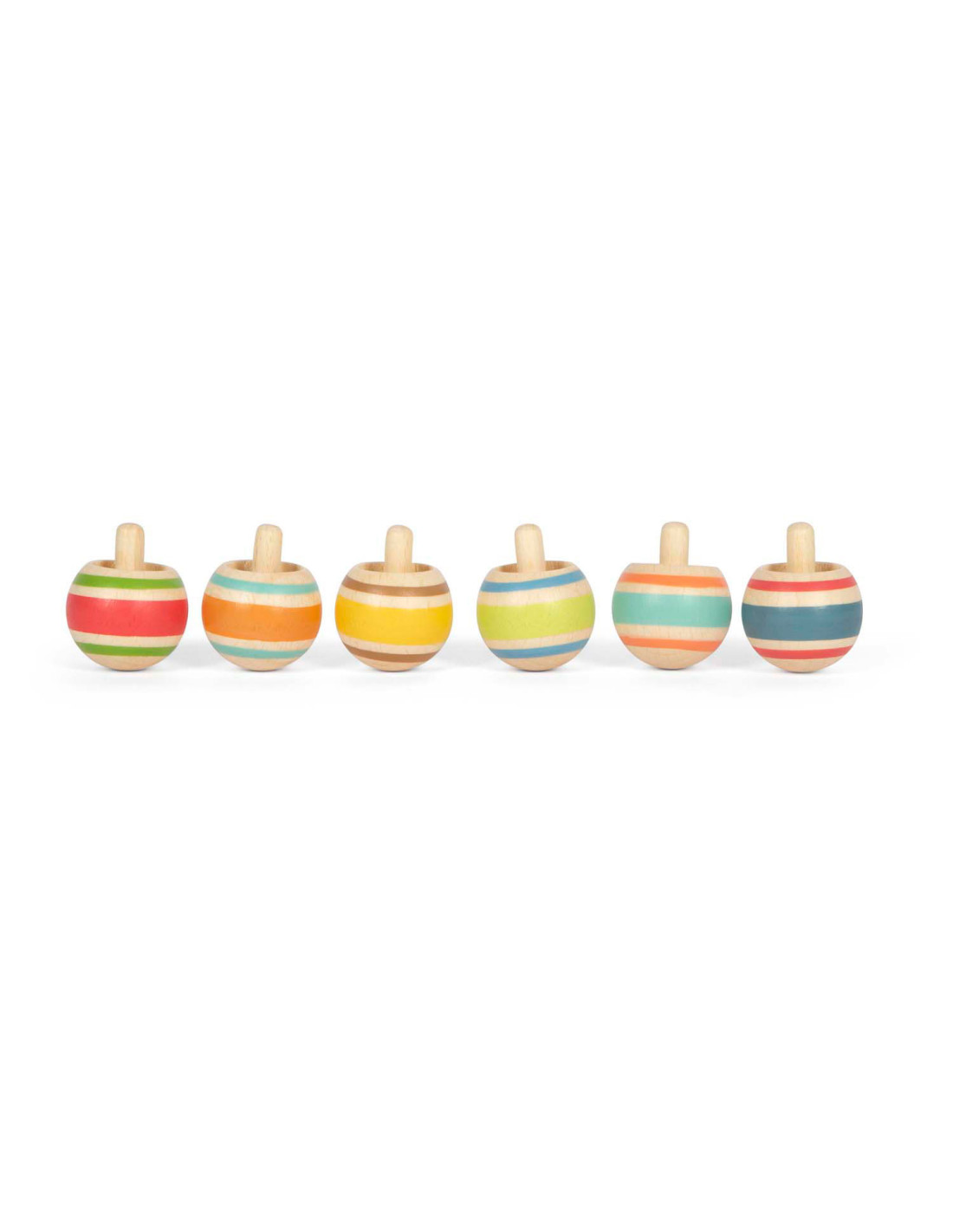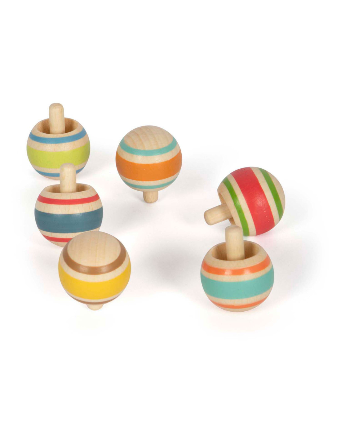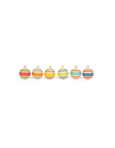 Houten tollen set. In de set zitten 6 tollen om mee te spelen. Geschikt voor kinderen vanaf 3 jaar.