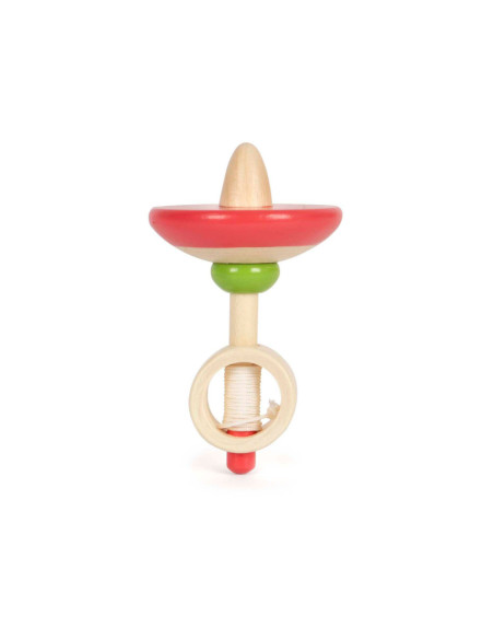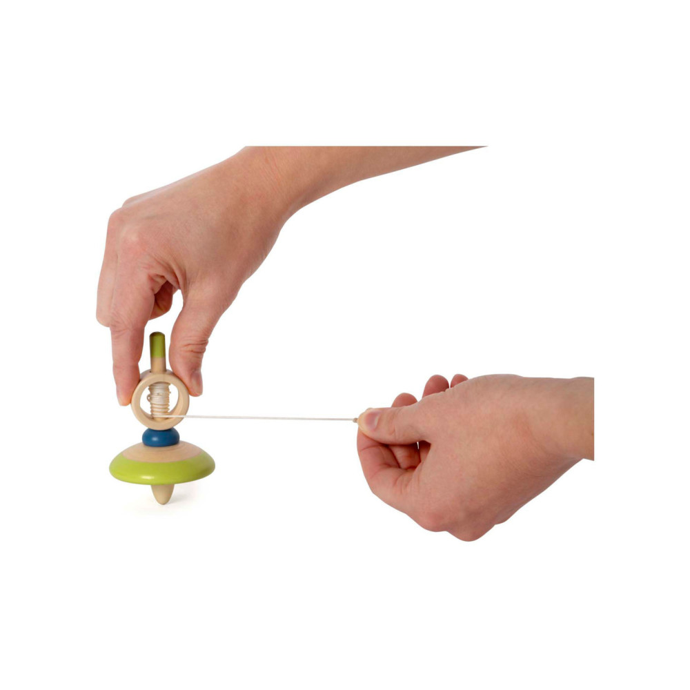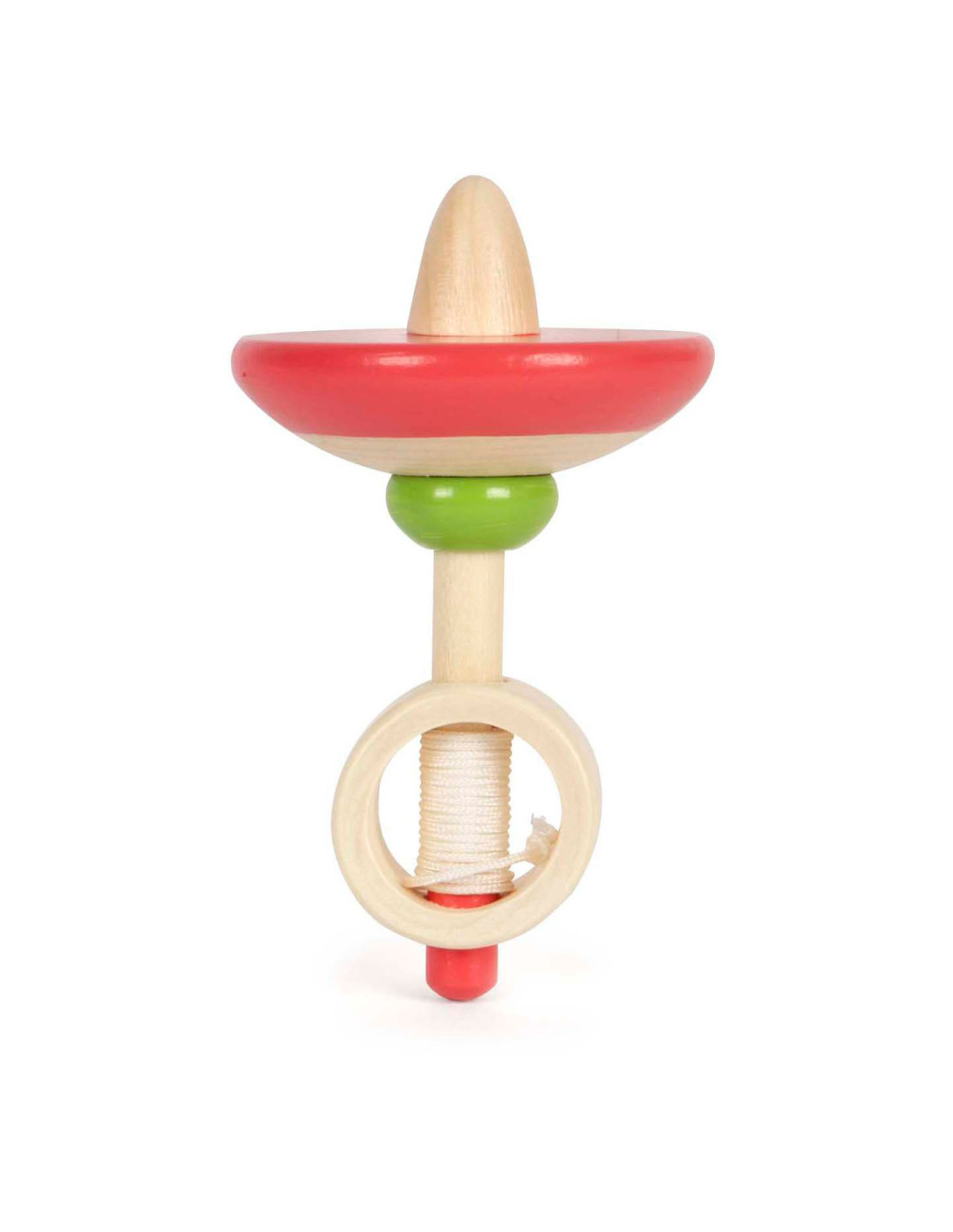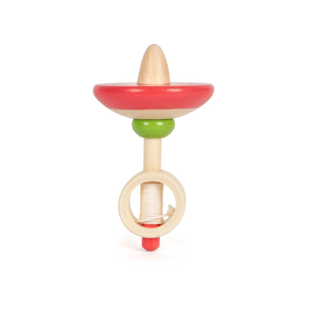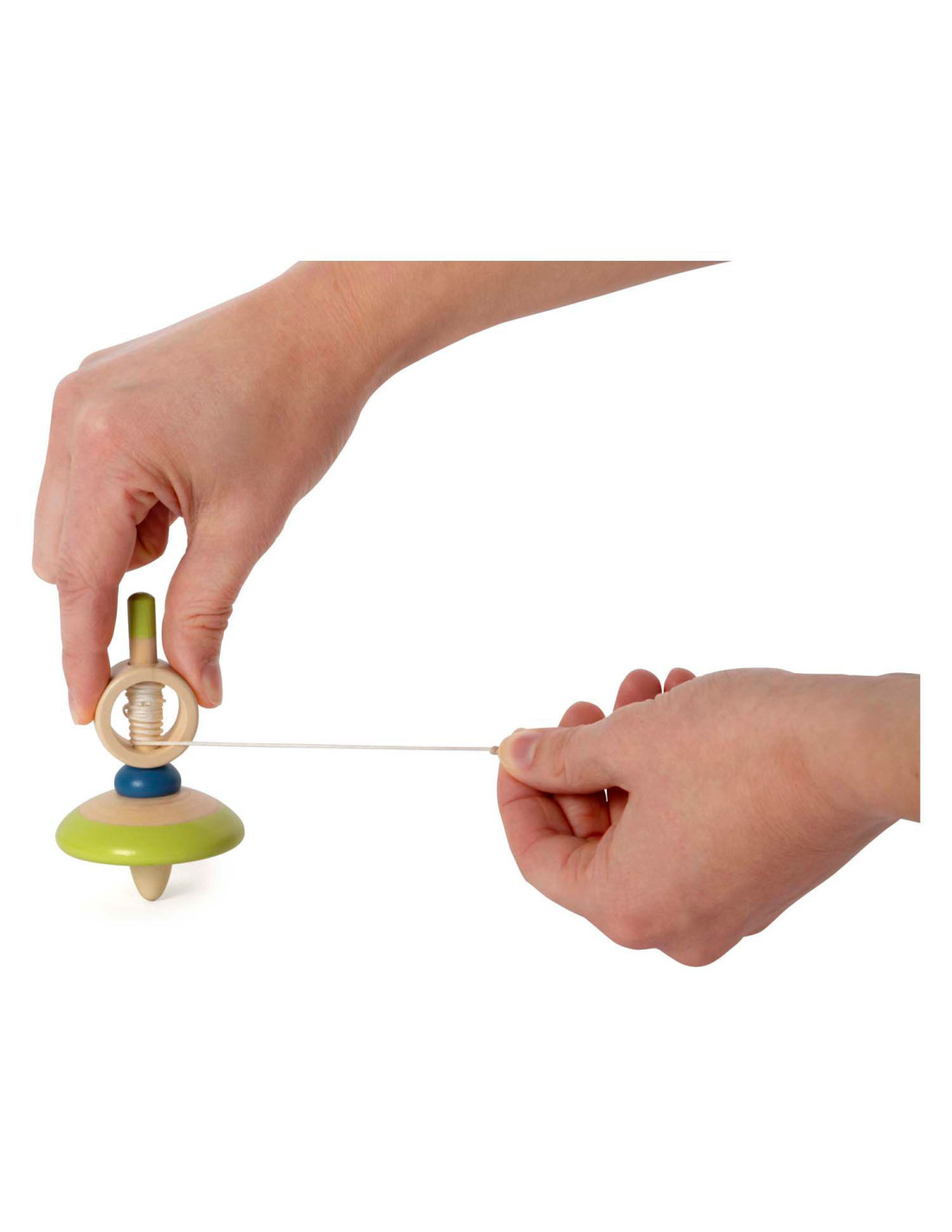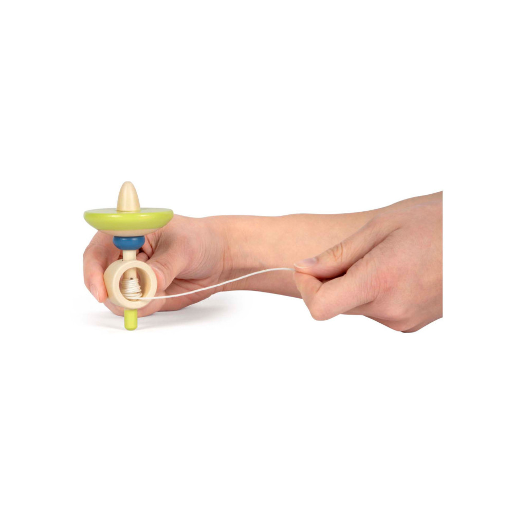 Houten tol met opwindfunctie. In de set zitten 6 tollen. De tollen zijn geschikt voor kinderen vanaf 3 jaar. De tol is circa 5,5 x 5,5 x 9 cm groot.