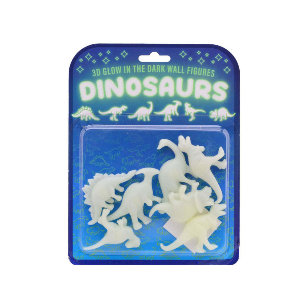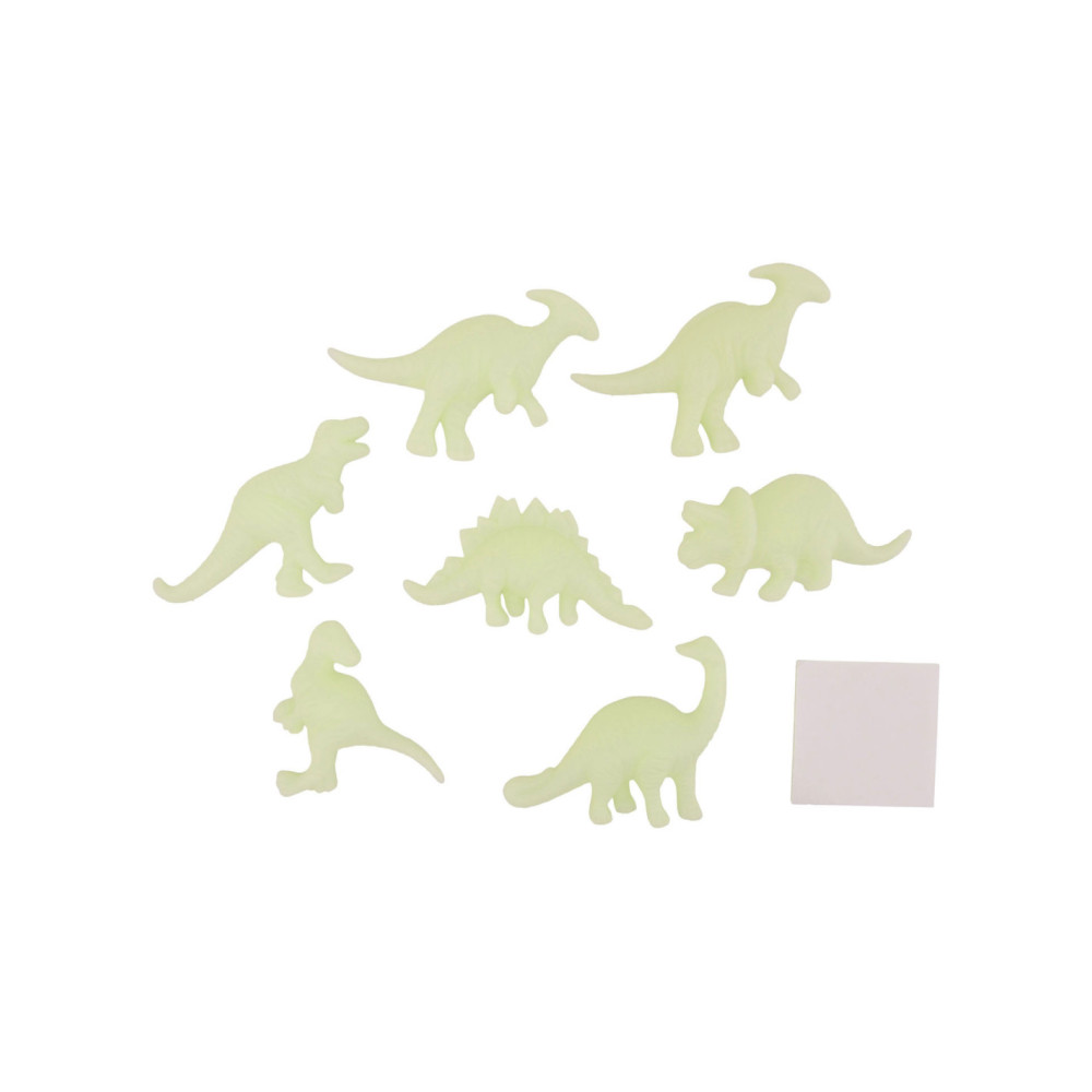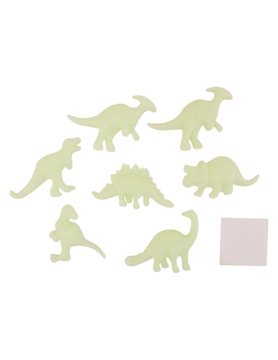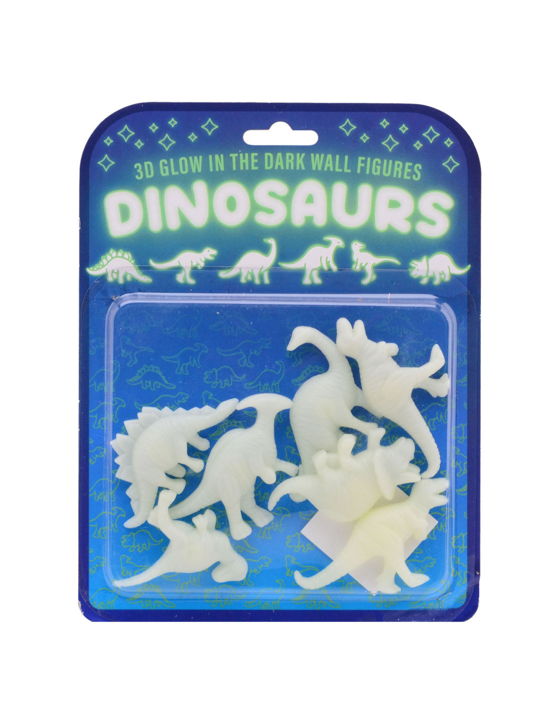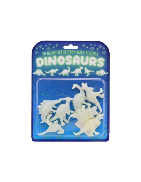 Glow in the dark 3D muur dinosaurussen. In de verpakking zitten 7 dinosaurussen en materiaal om ze gemakkelijk vast te maken.