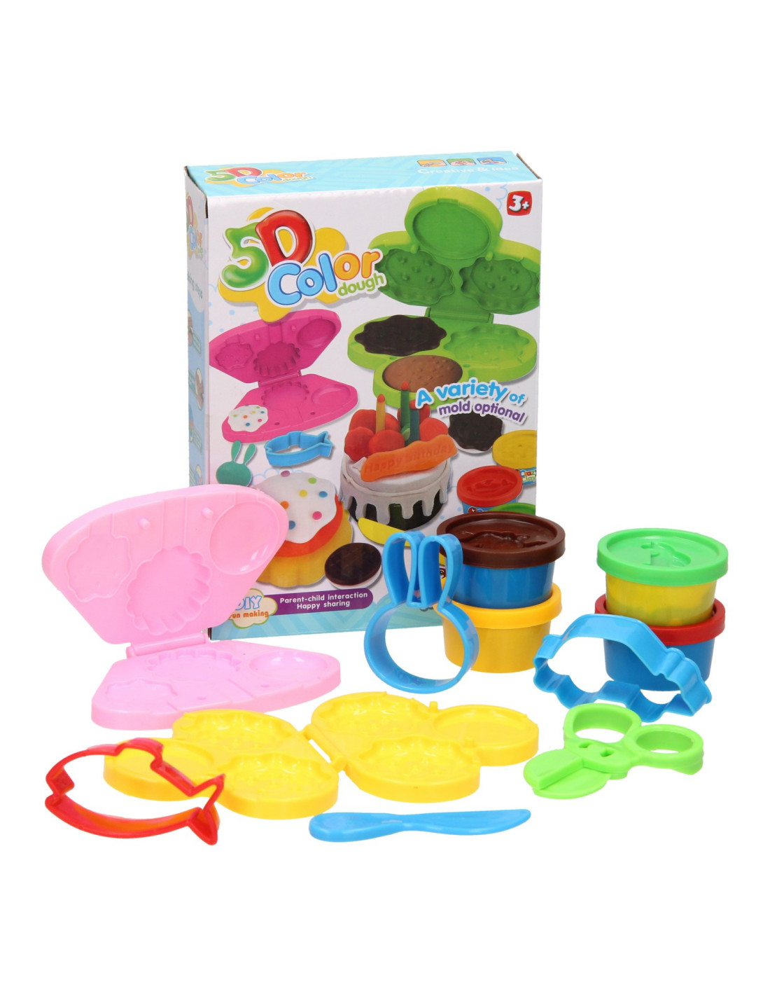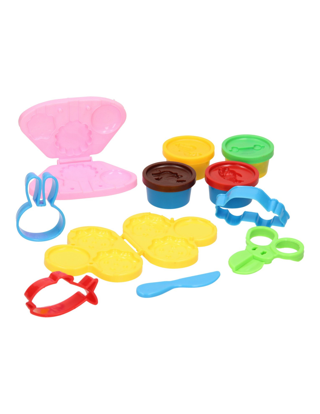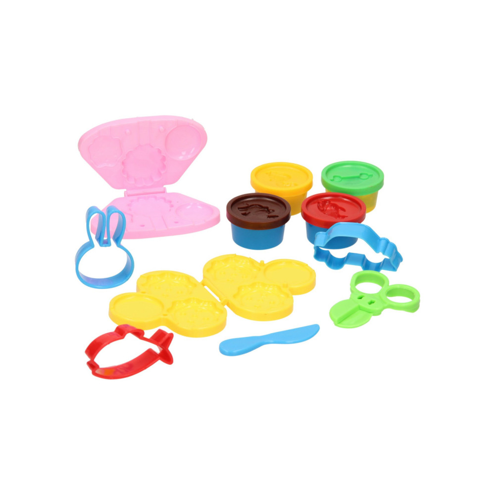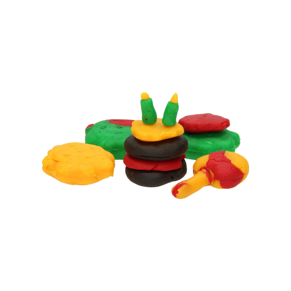 Met deze kleiset maak je als kleine bakker je eigen cakejes en koekjes. De kleiset bevat vier verschillende potjes gekleurde klei waarmee je de lekkernijen kunt maken. De set bevat de volgende accessoires: een vormpje voor de koekjes, een vormpje voor de cakejes, een schaar, een mesje en drie vormpjes met een konijn, een vis en een auto. De accessoires zijn gemaakt van kunststof. De kleuren kunnen afwijken van het plaatje op de doos. Geschikt vanaf drie jaar.