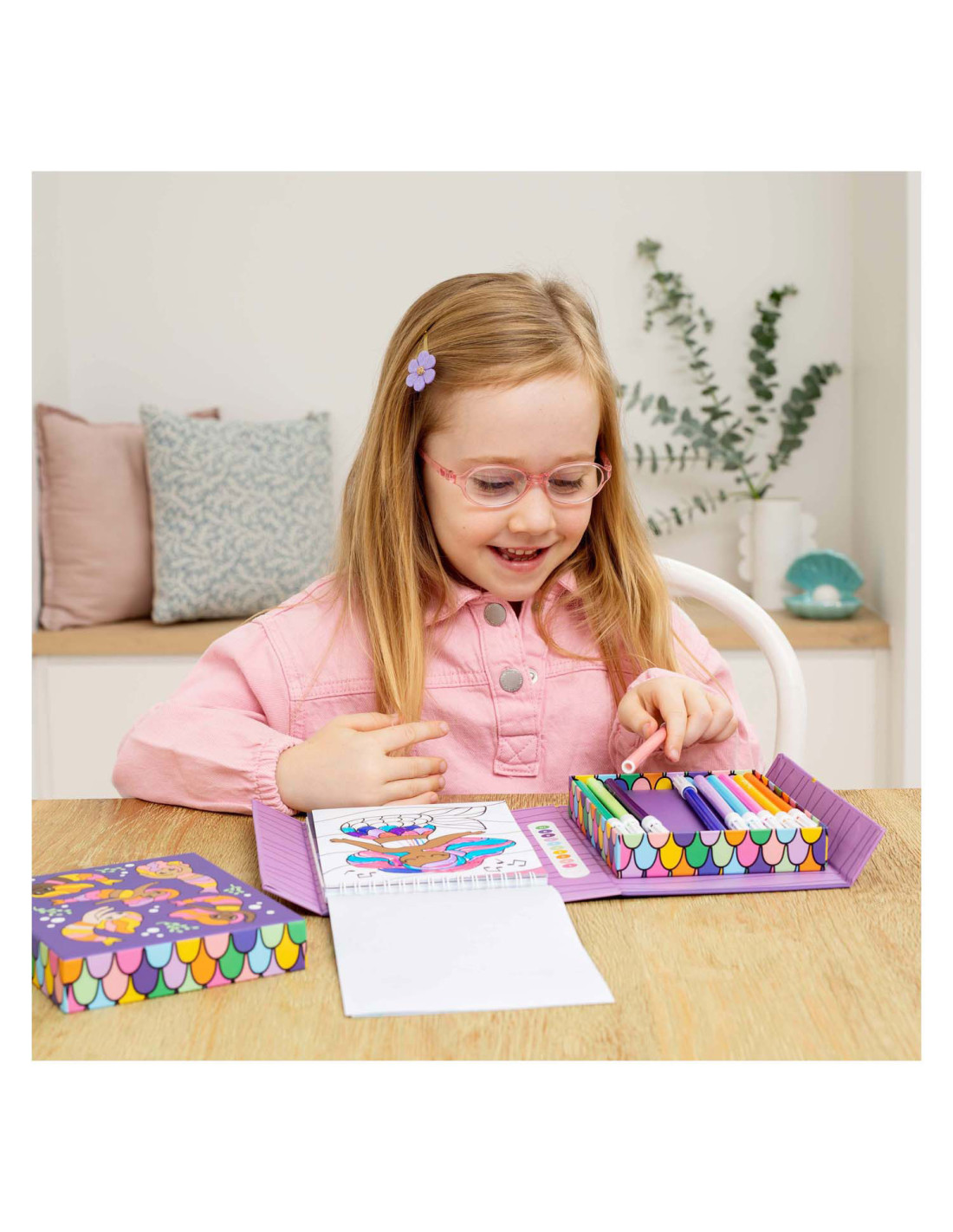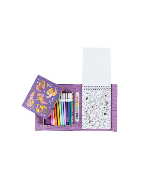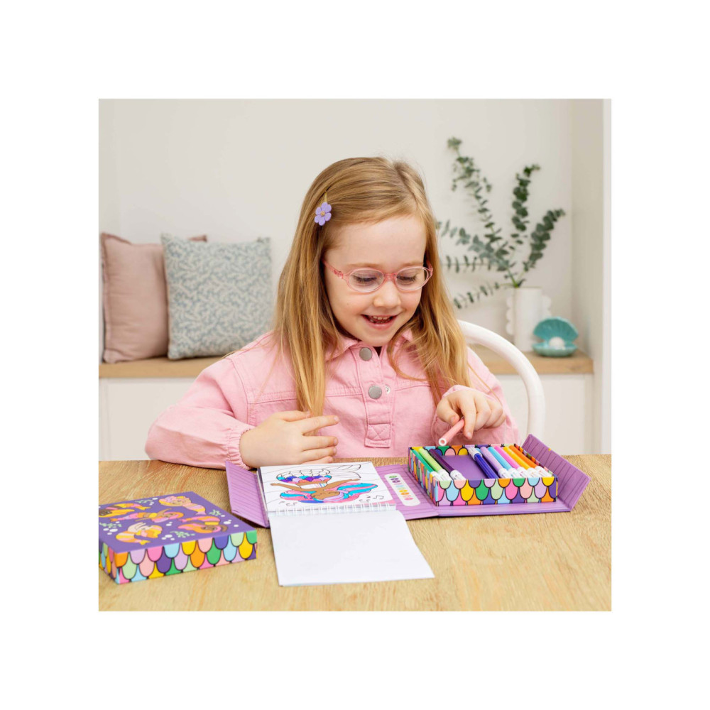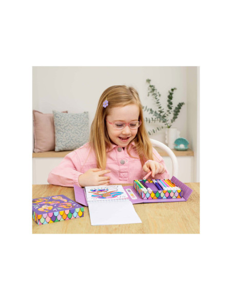 • Compact en draagbaar: Ontworpen om gemakkelijk mee te nemen, zodat kinderen altijd en overal kunnen kleuren, of het nu thuis, in de auto of op vakantie is.