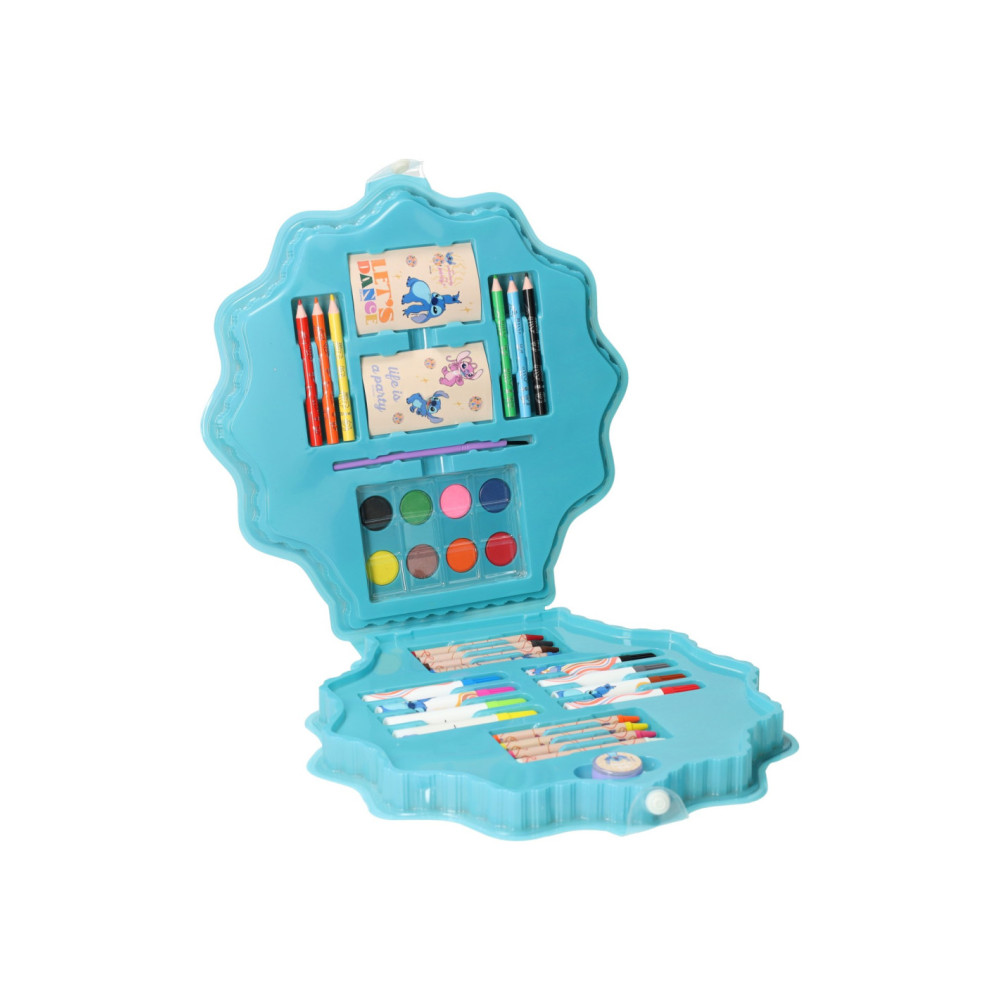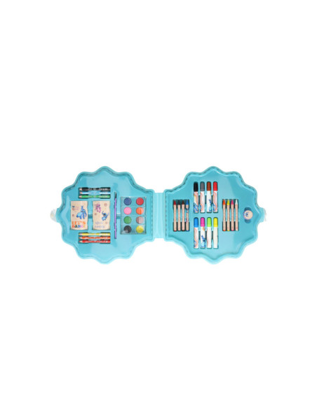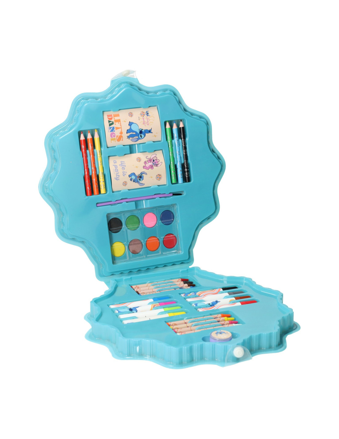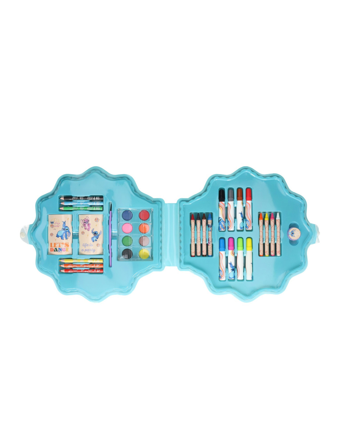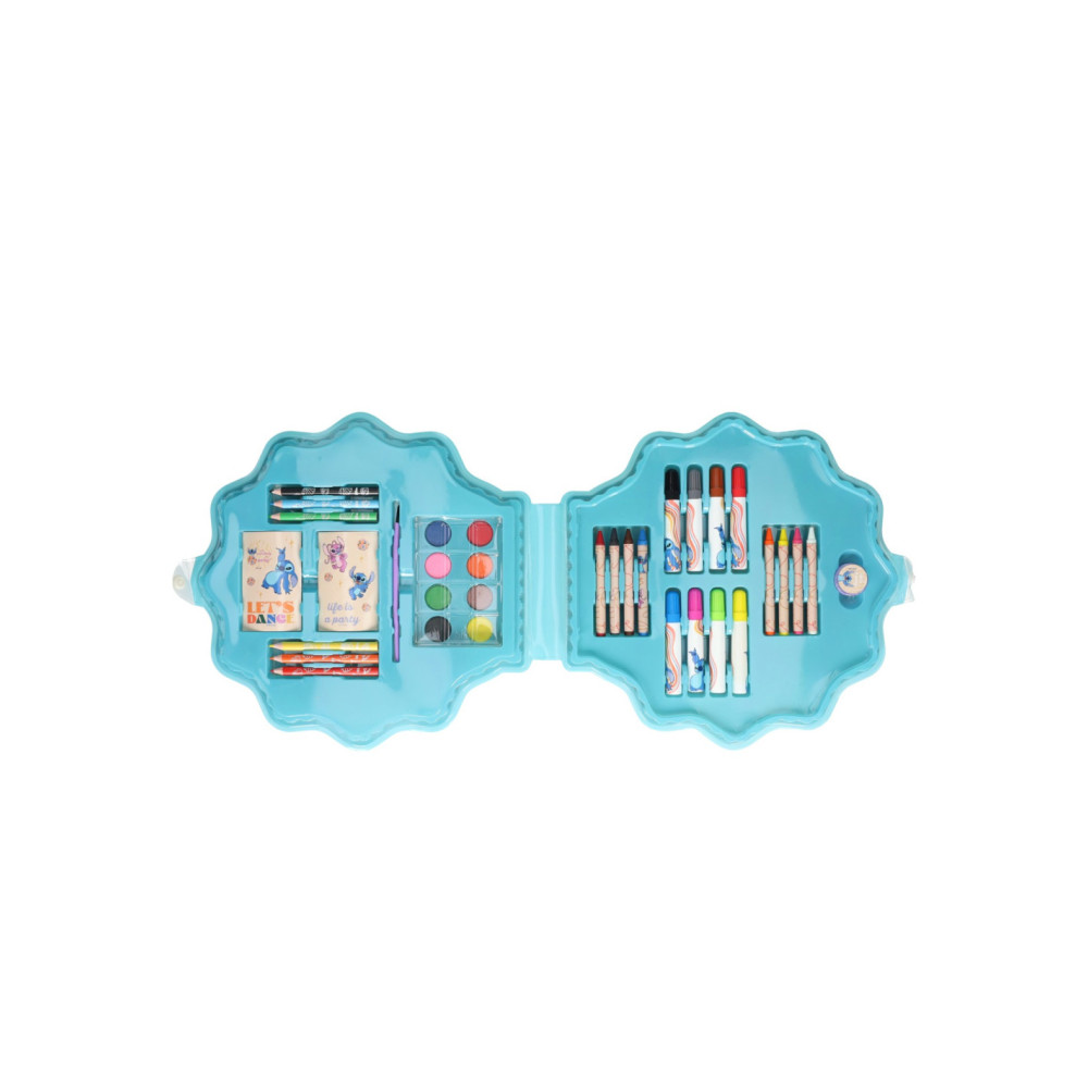 Kleurkoffer Stitch, 35dlg. Met o.a. stiften, waskrijtjes, kleurpotloden en waterverf. Afmetingen: 27,5 cm x 27,5 cm x 3,5 cm.