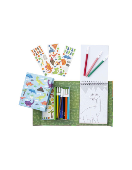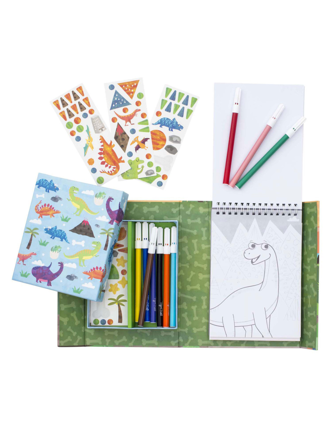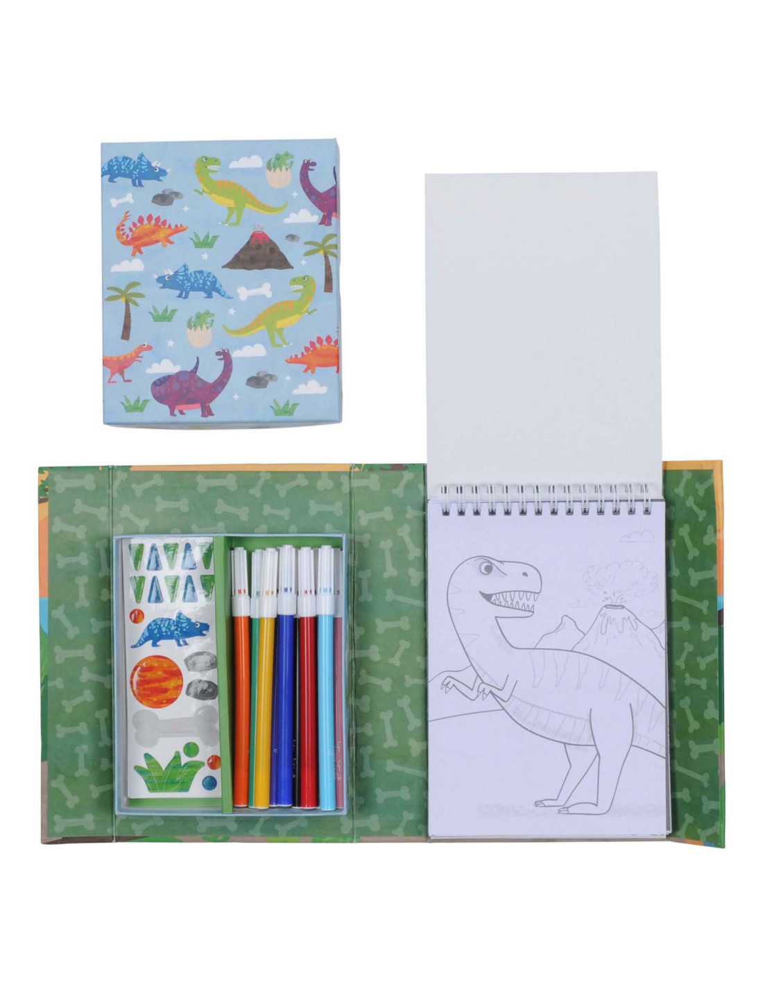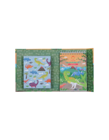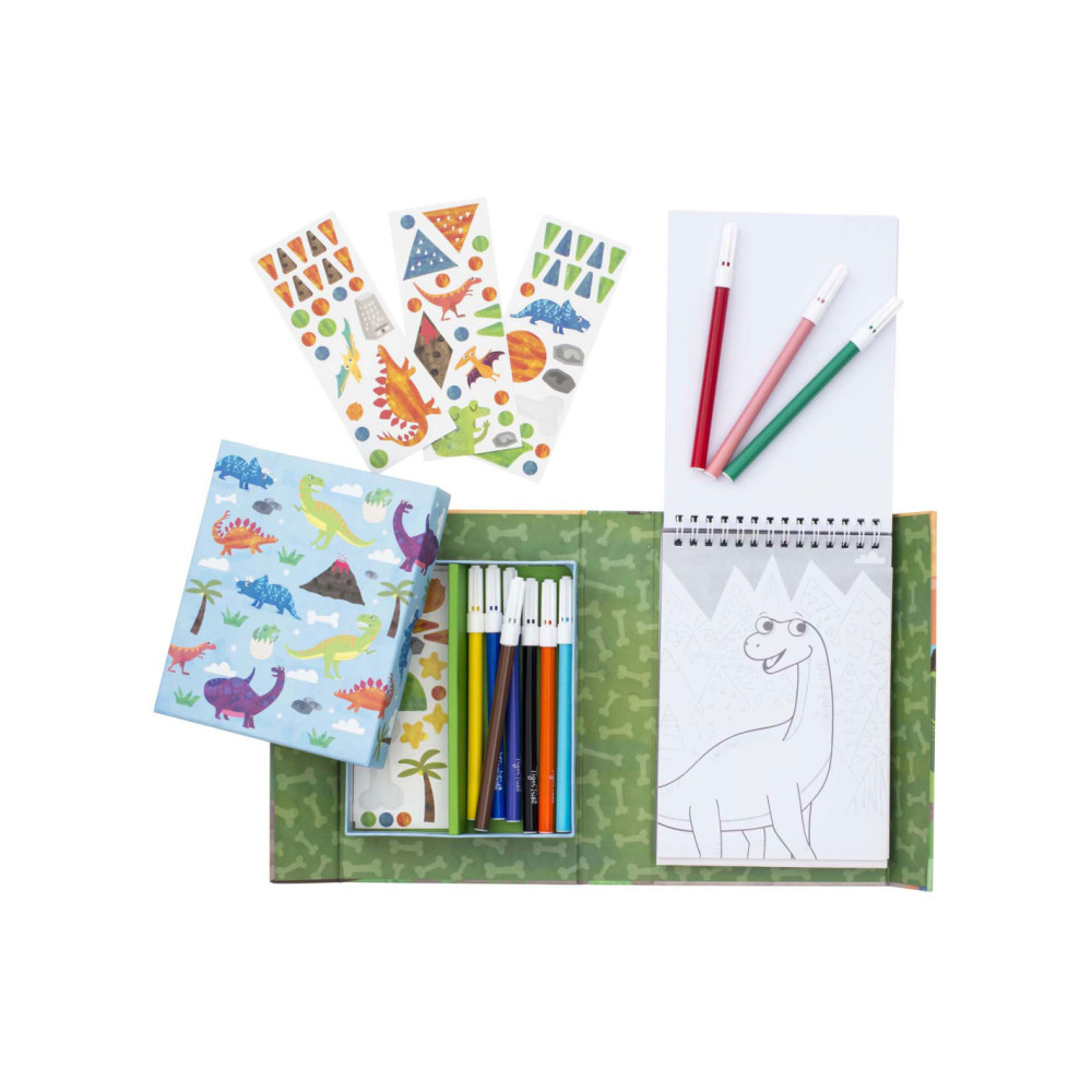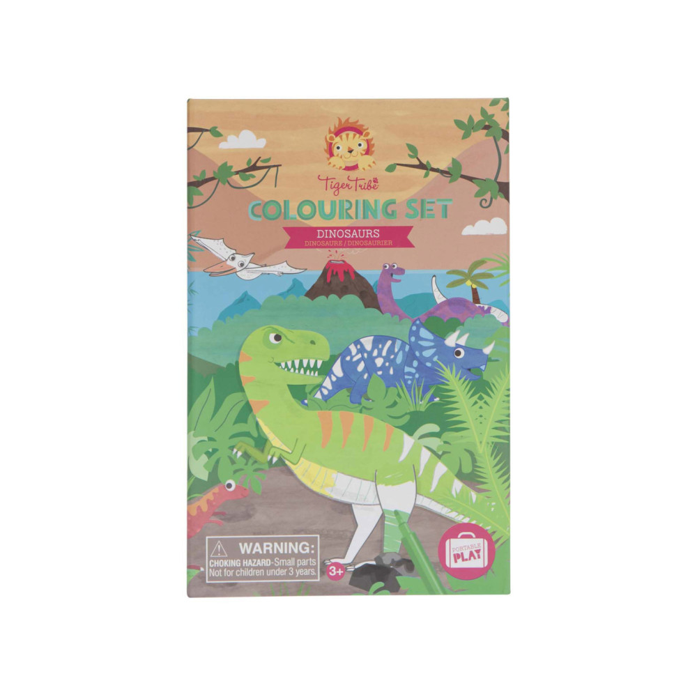 Deze spannende kleurenset neemt jonge ontdekkingsreizigers mee op een reis terug in de tijd, naar een wereld vol machtige dinosaurussen en prehistorische avonturen.