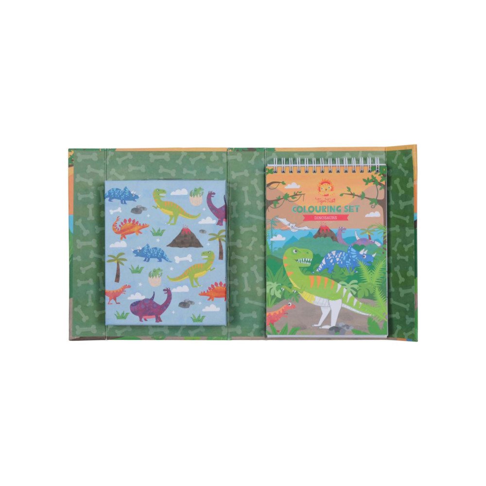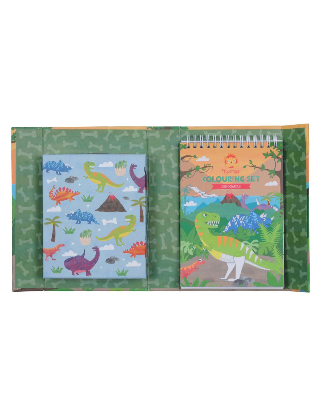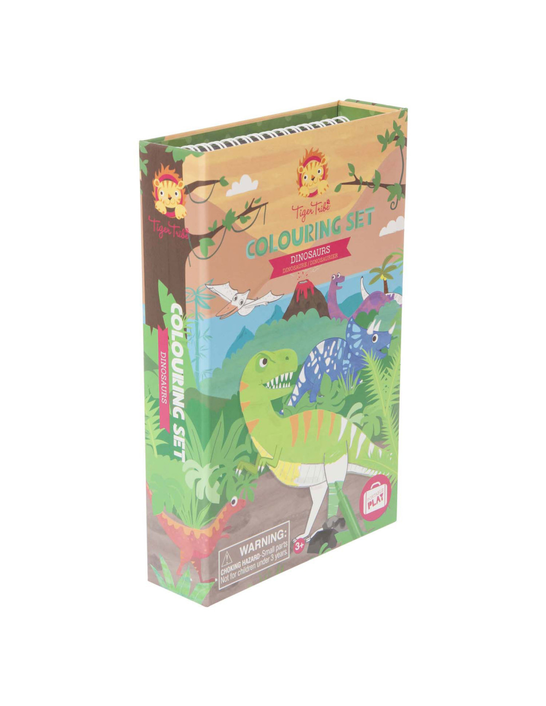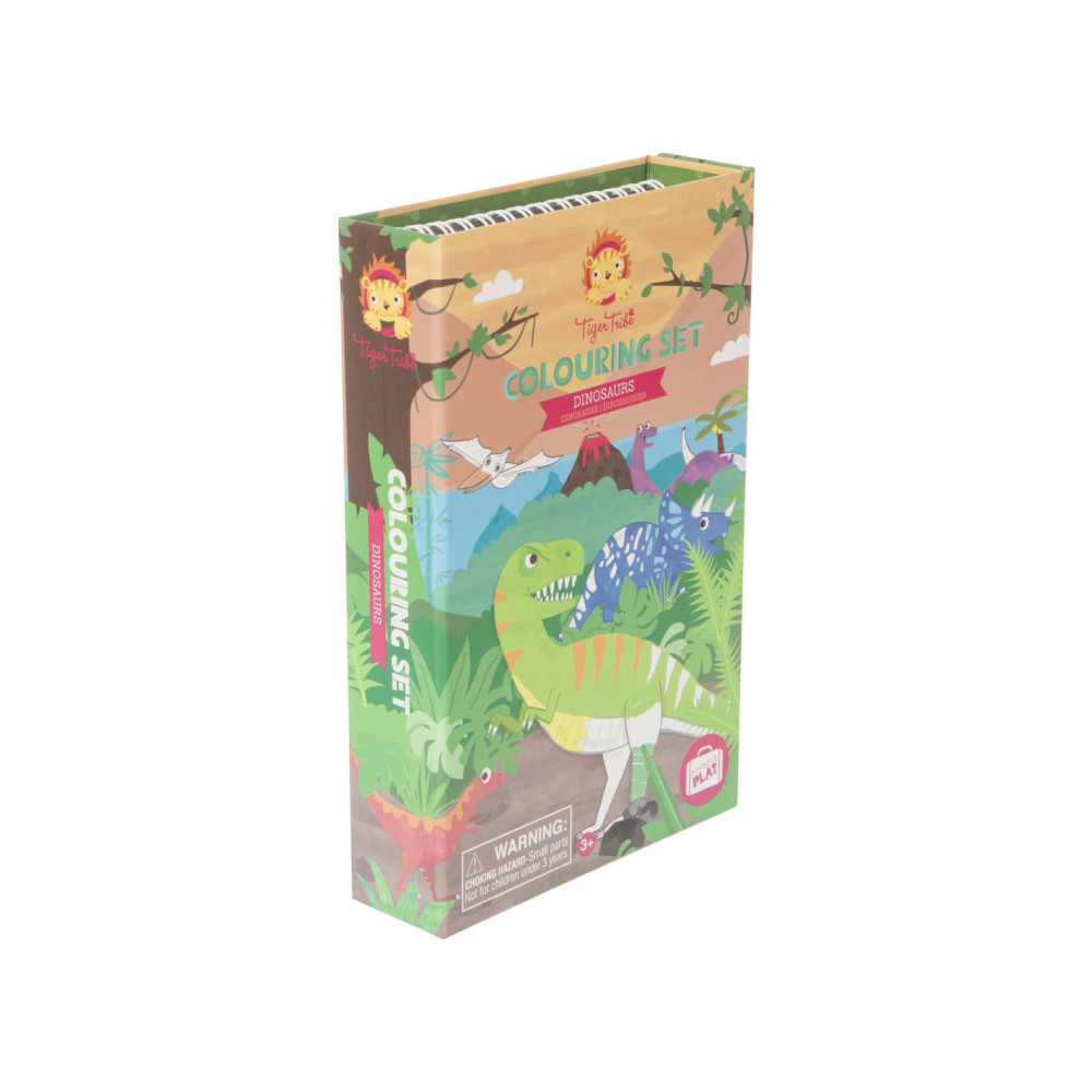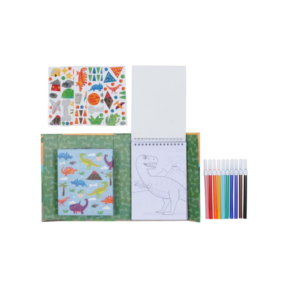 Deze spannende kleurenset neemt jonge ontdekkingsreizigers mee op een reis terug in de tijd, naar een wereld vol machtige dinosaurussen en prehistorische avonturen.