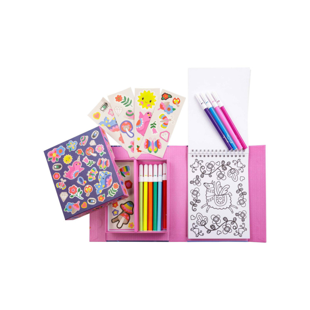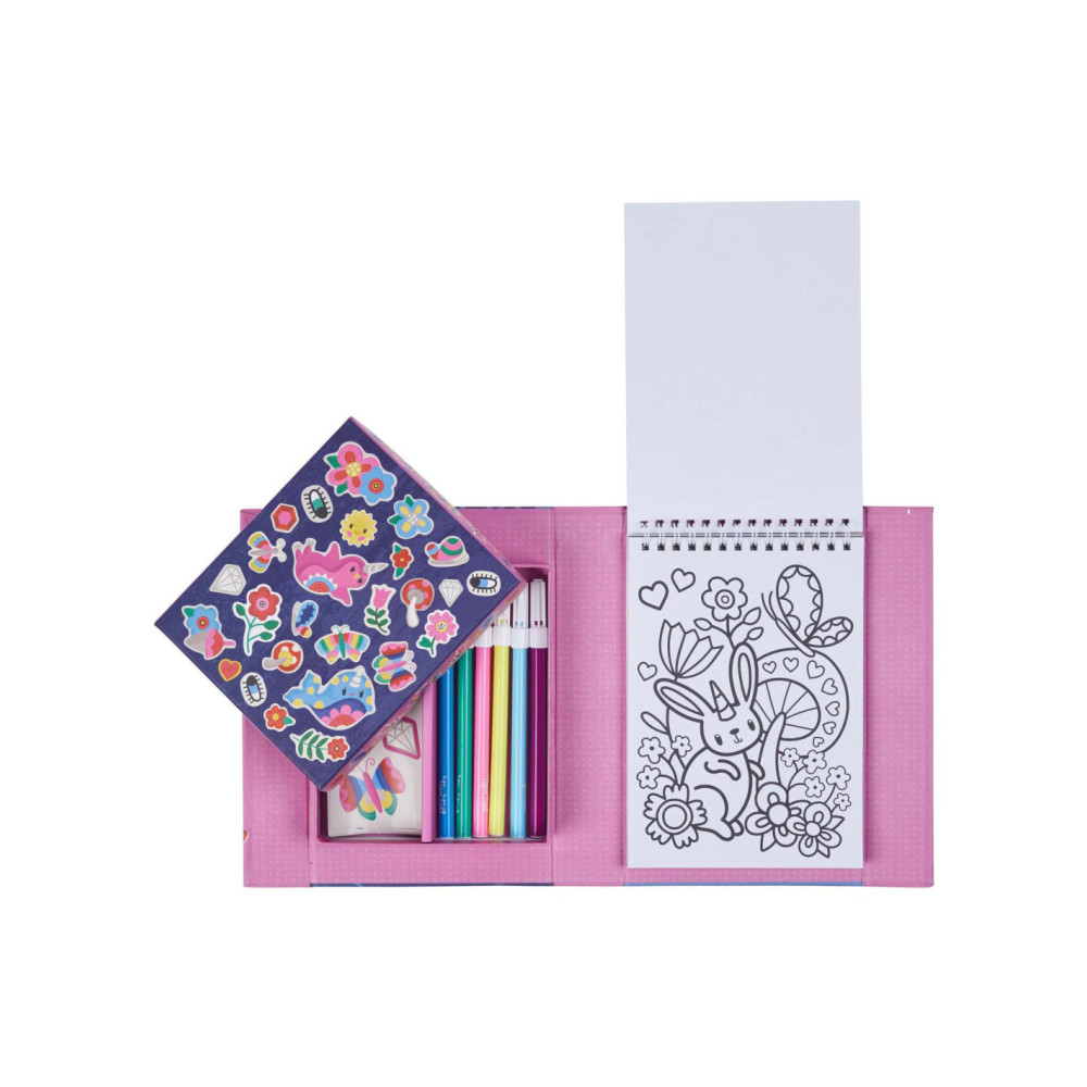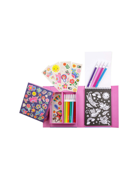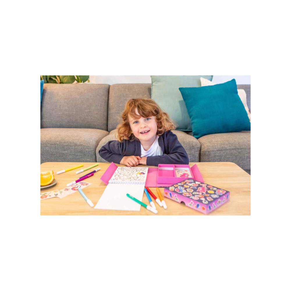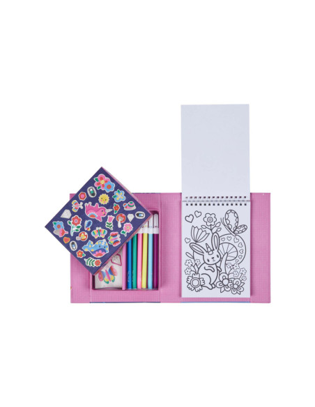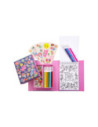 • Complete set: Bevat alles wat nodig is voor urenlang kleurplezier: stiften, stickers en kleurboekjes, allemaal handig verpakt voor creatieve uitspattingen thuis of onderweg.