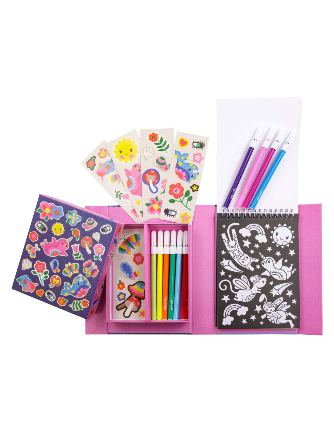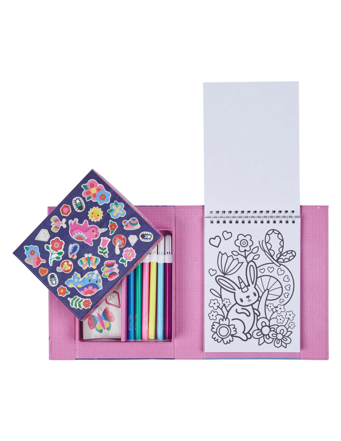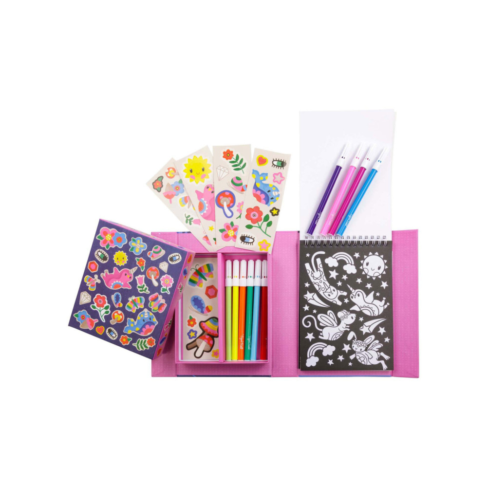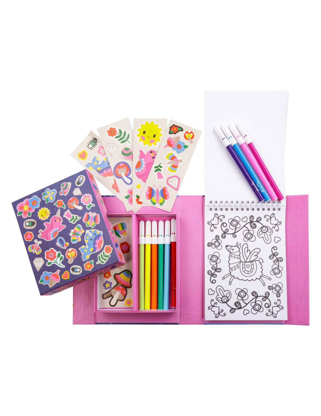 • Complete set: Bevat alles wat nodig is voor urenlang kleurplezier: stiften, stickers en kleurboekjes, allemaal handig verpakt voor creatieve uitspattingen thuis of onderweg.