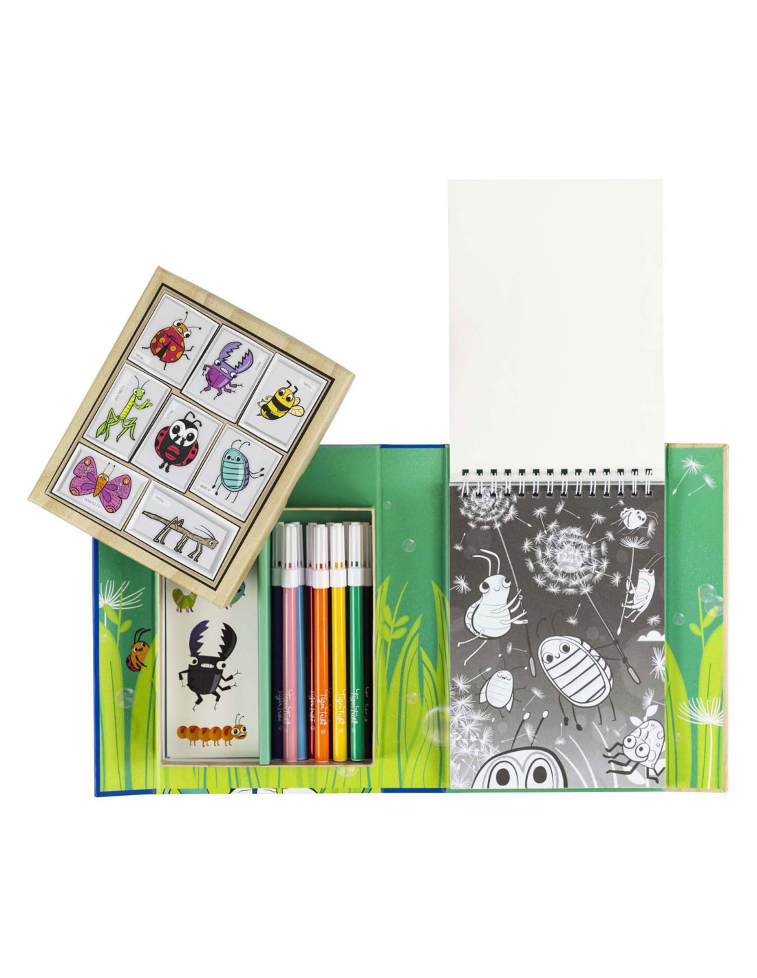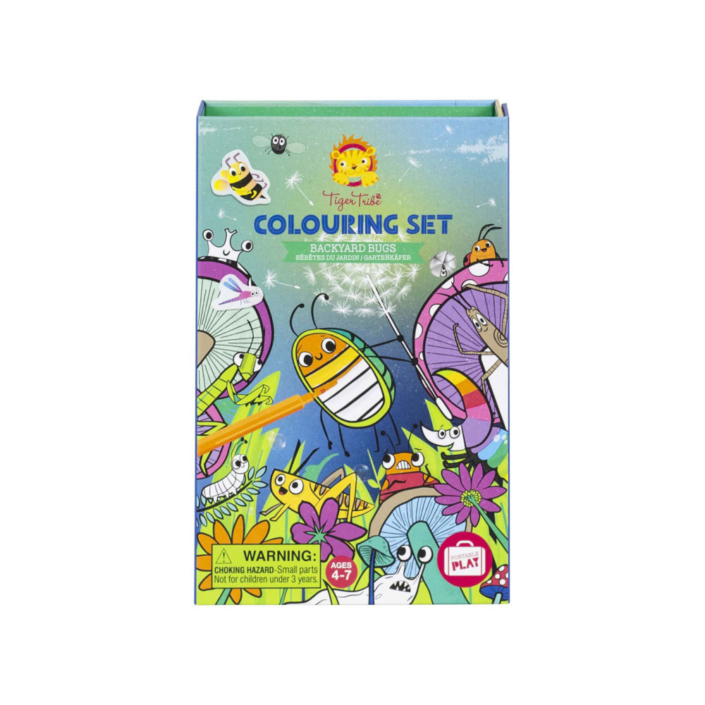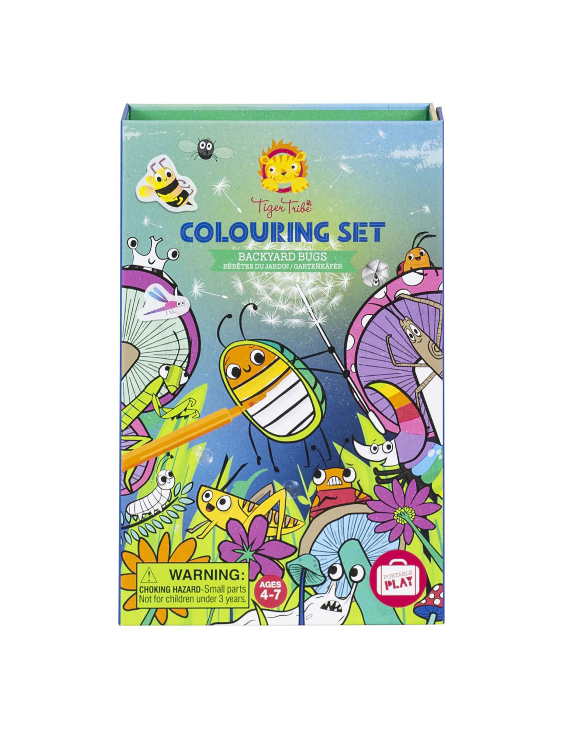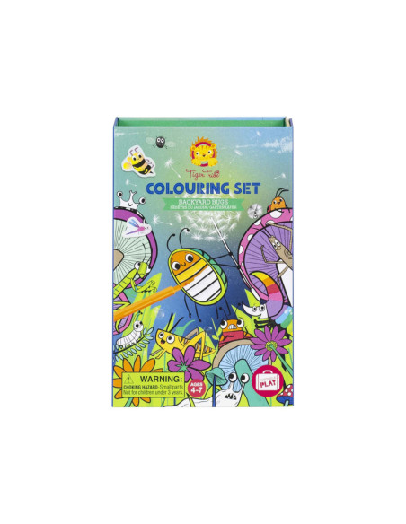 Deze kleurenset neemt jonge ontdekkingsreizigers mee op een avontuur in de achtertuin, vol kleurrijke insecten en kruipende wezens.