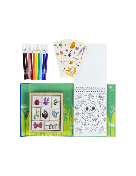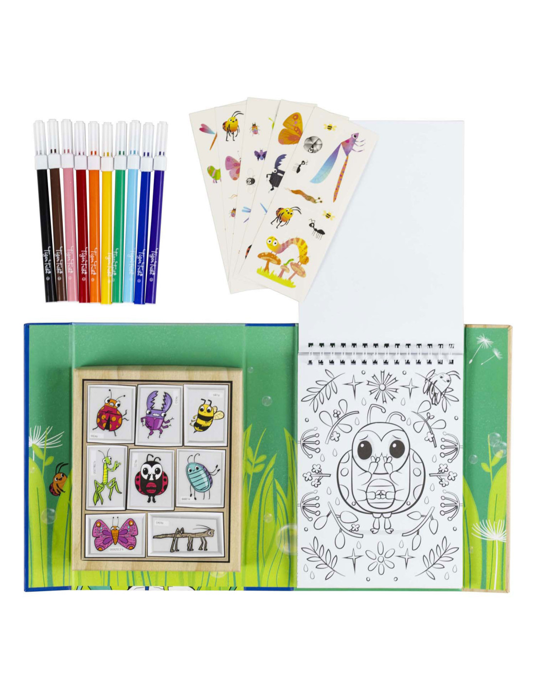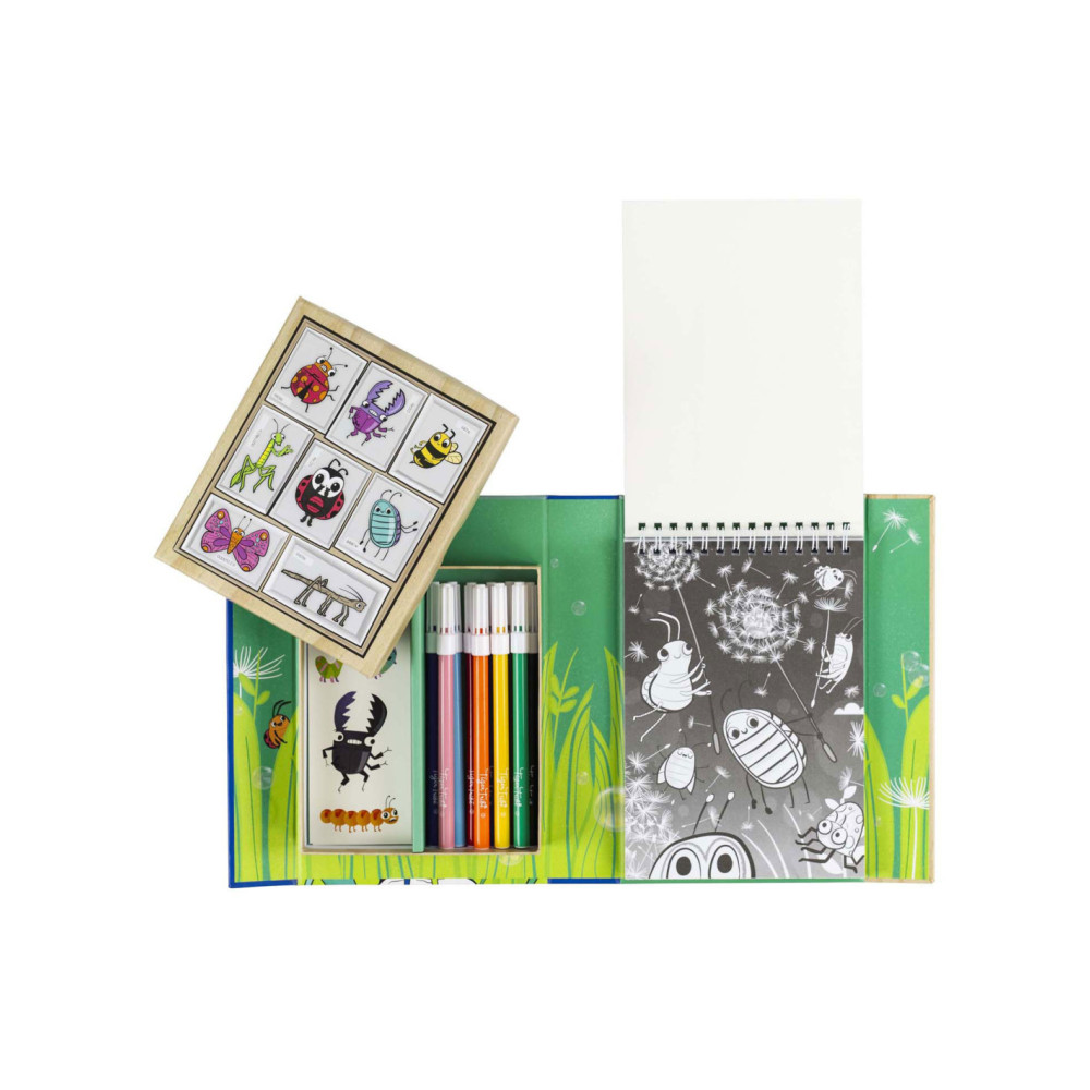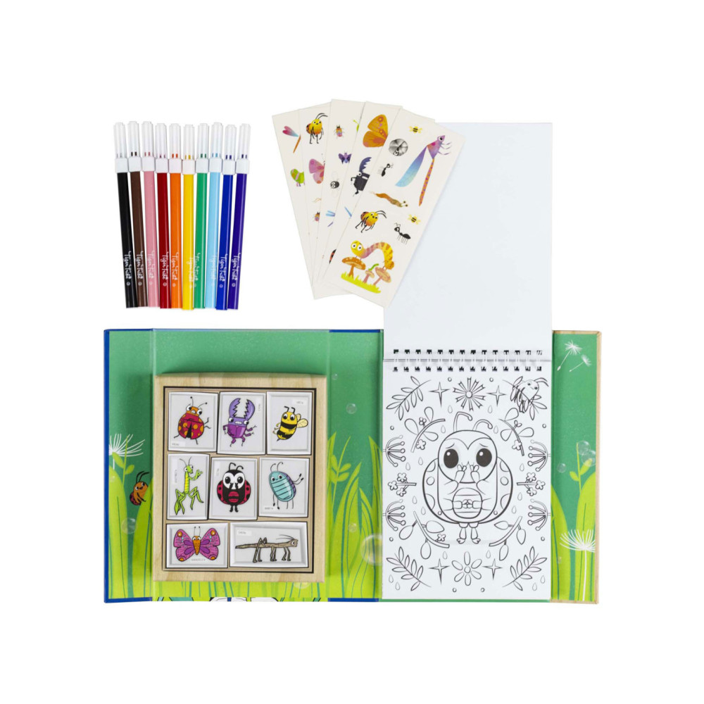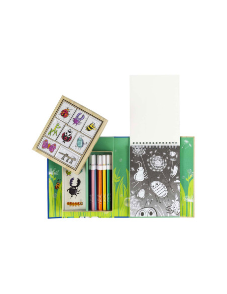 Deze kleurenset neemt jonge ontdekkingsreizigers mee op een avontuur in de achtertuin, vol kleurrijke insecten en kruipende wezens.