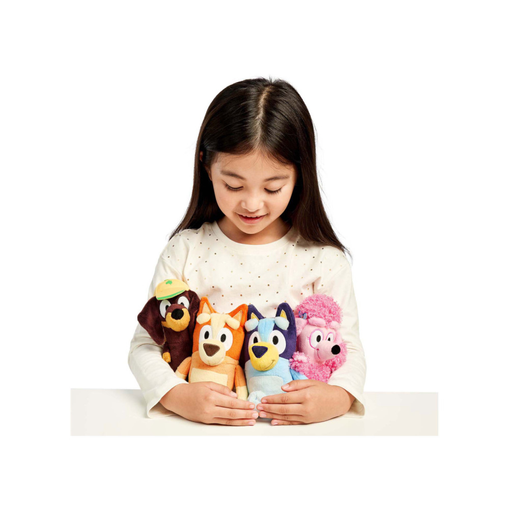 Kijk jij ook altijd naar de avonturen van Bluey? Bluey is een 6 jaar oude Heeler-hond die samen met haar familie de leukste avonturen beleeft. Speel nu zelf met deze kleine pluchen Coco knuffel, de goede vriendin van Bluey. Ze is superzacht en wil heel graag met jou knuffelen! Coco is ca. 20 cm hoog. Leeftijdsindicatie: 3 jaar+