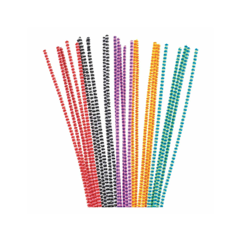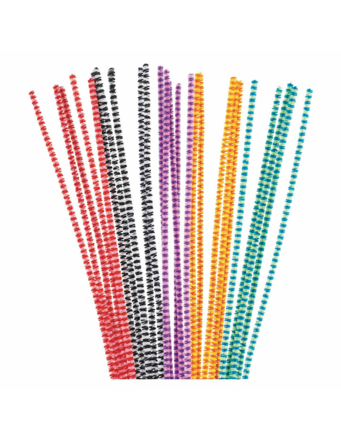 Set van 200 gekleurde pijpenragers met strepen. Deze pijpenragers komen in 5 heldere kleurencombinaties voor het maken van allerlei creatieve kunstwerken. Afmetingen: 30,5 x 0,4 cm groot.