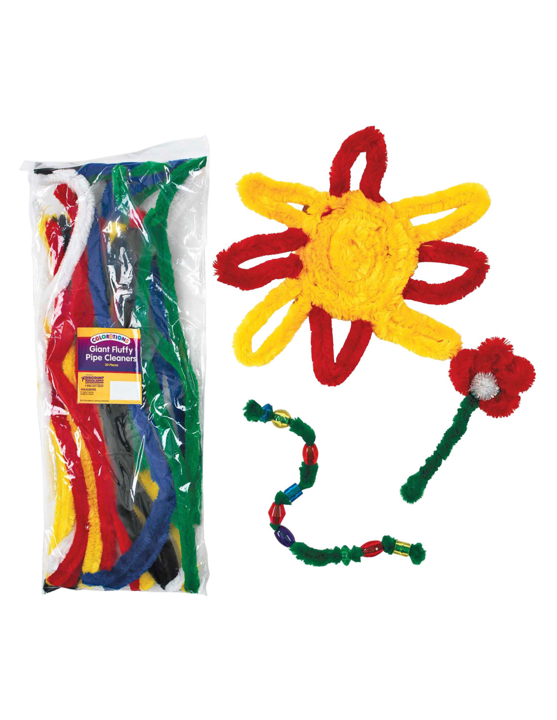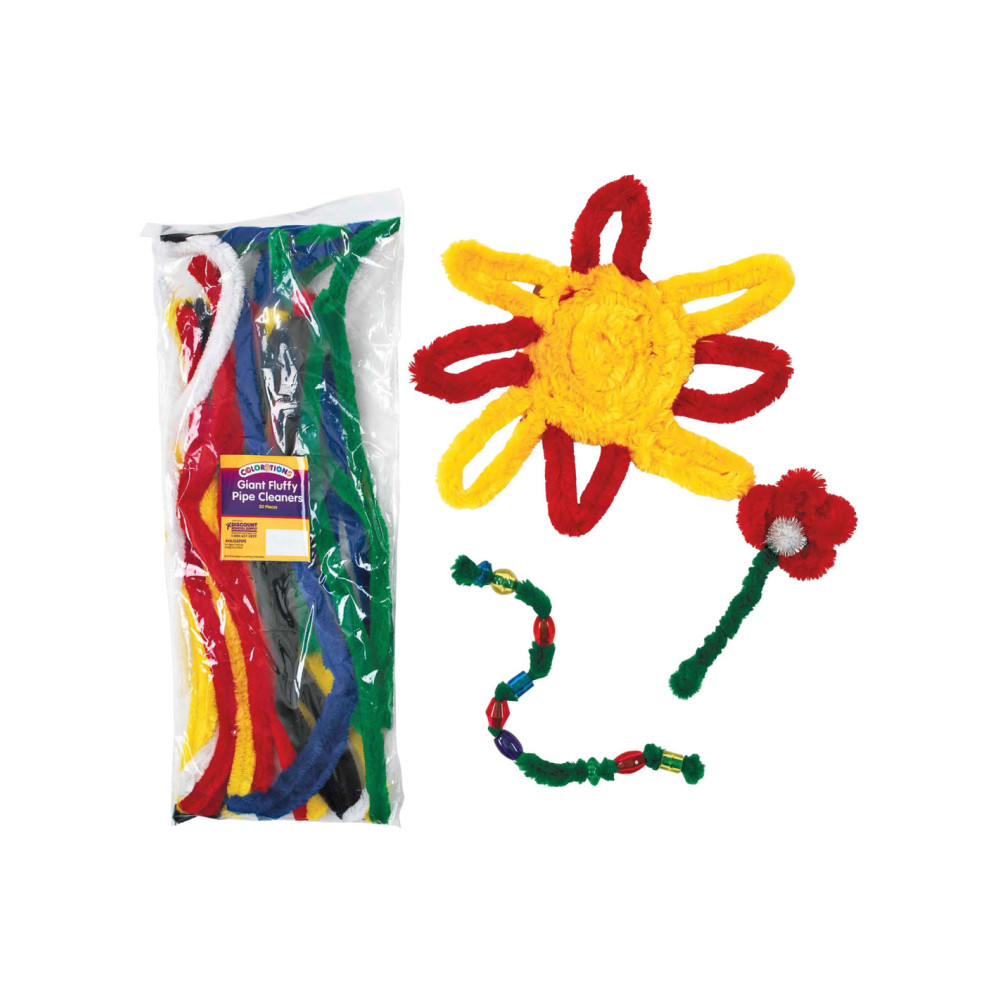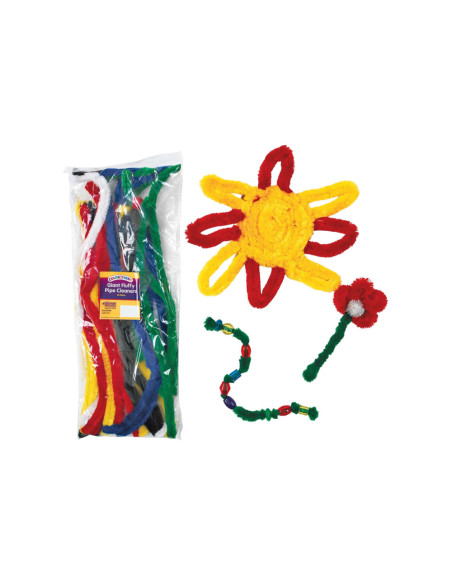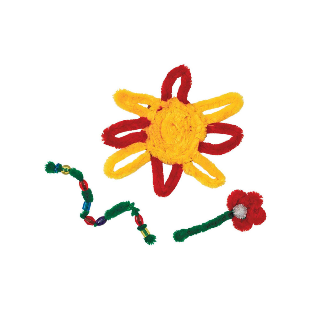 Deze dikke, pluizige chenilledraden zijn perfect voor veel knutselprojecten! Ze zijn een geweldig zintuiglijk product om beestjes, bloemen en nog veel meer mee te maken. De Chenilledraden zijn 2,5 cm breed en maar liefst 45,5 cm lang. Kleuren: rood, groen, zwart, wit, blauw en geel.