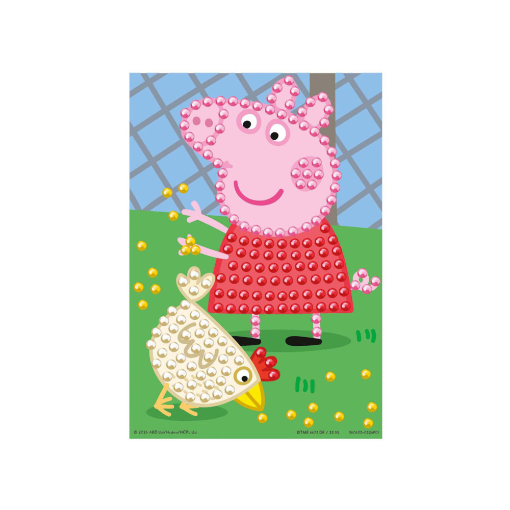 Knutselset waarmee een Peppa Pig afbeelding versiert wordt met steentjes. Geschikt voor kinderen vanaf 3 jaar.